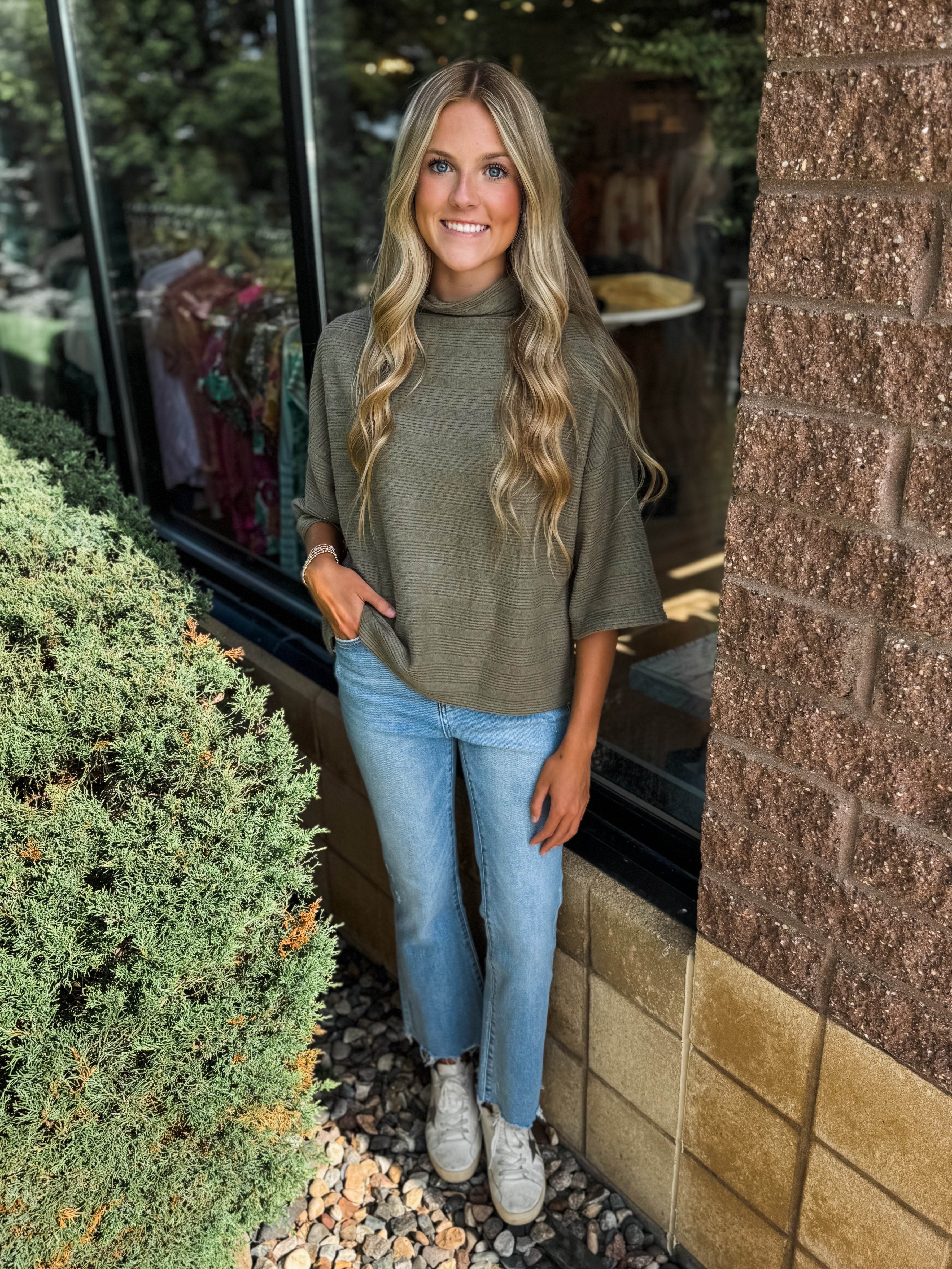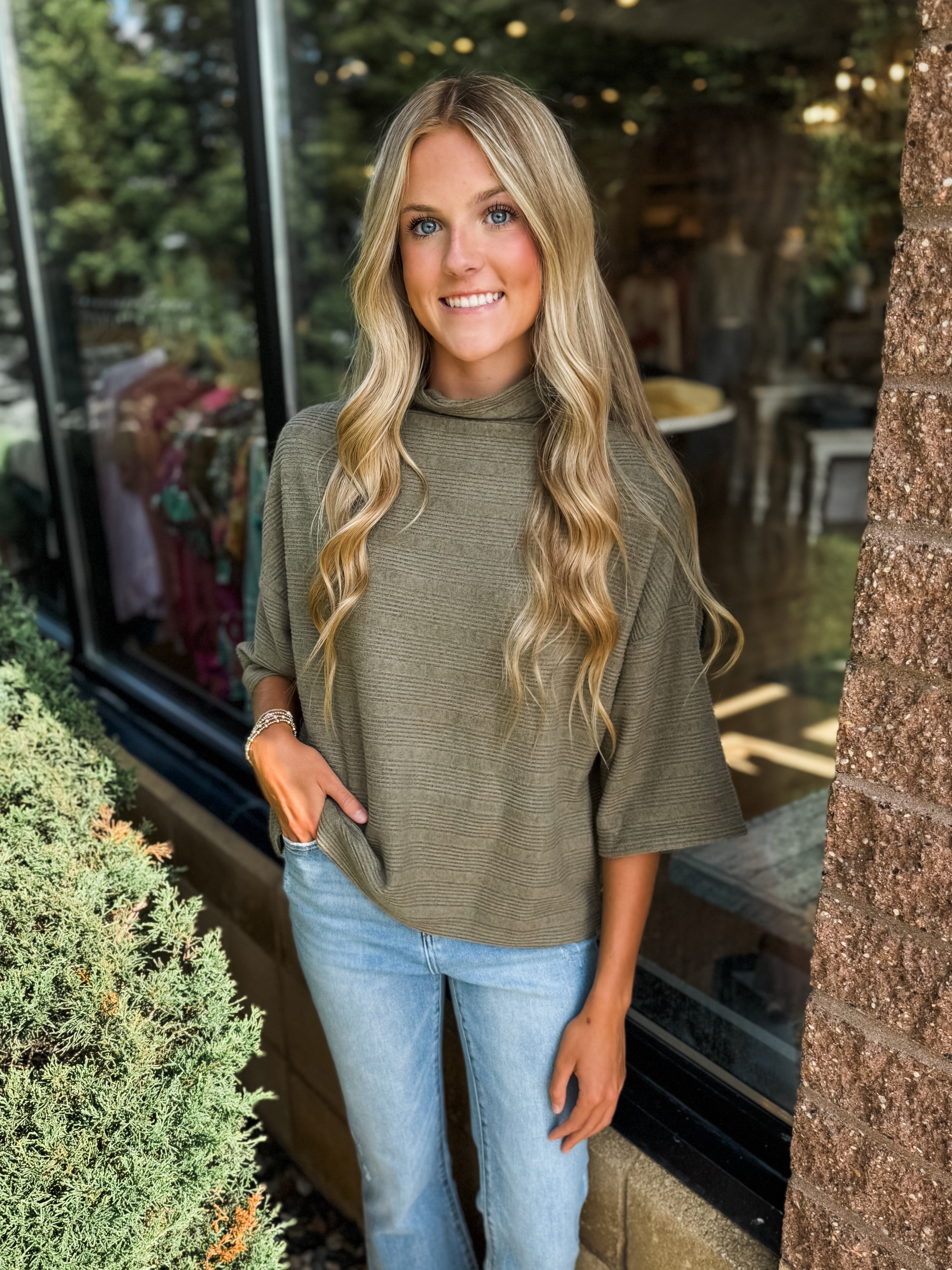 Textured Mock Neck Half Sleeve Top