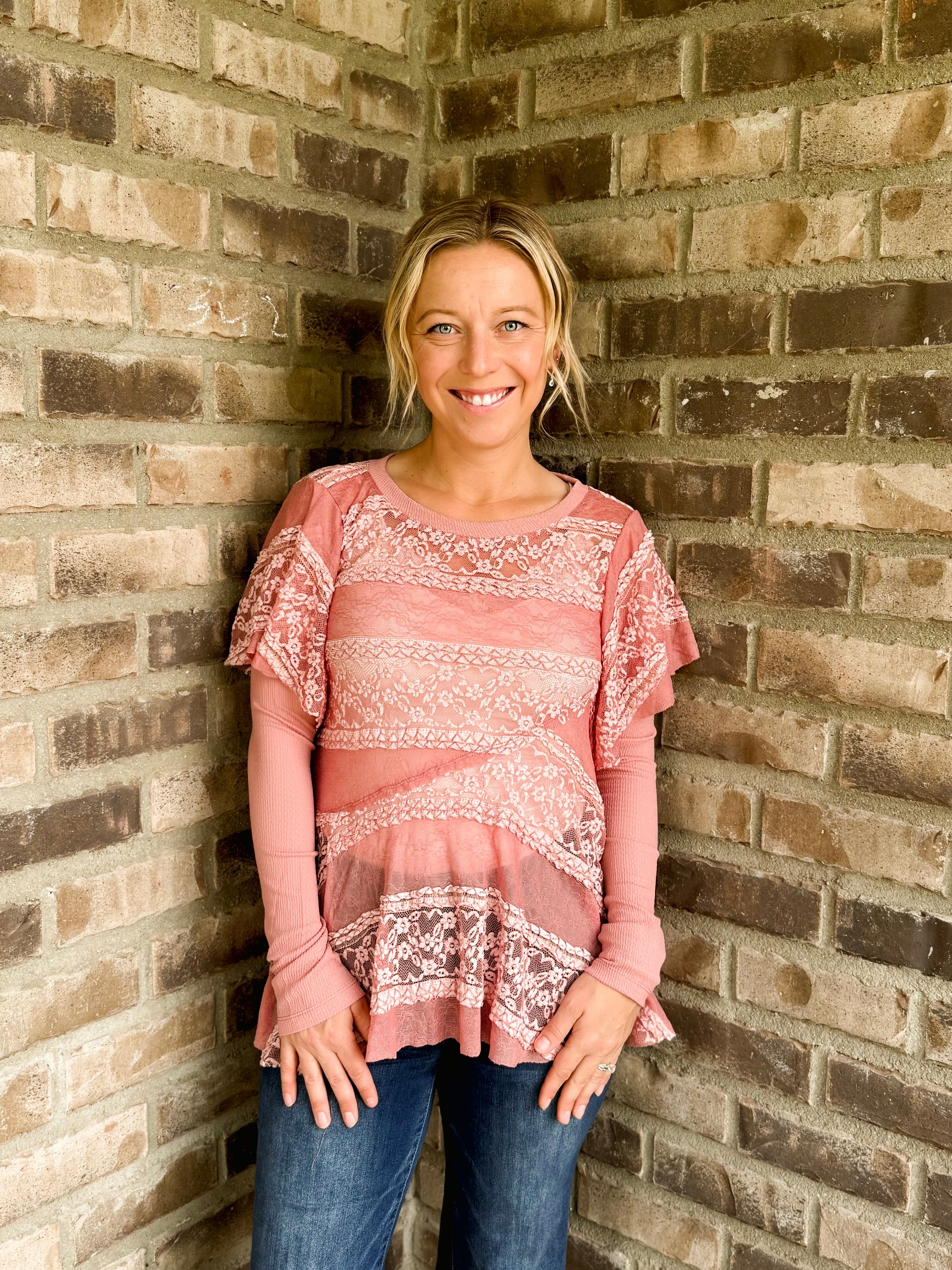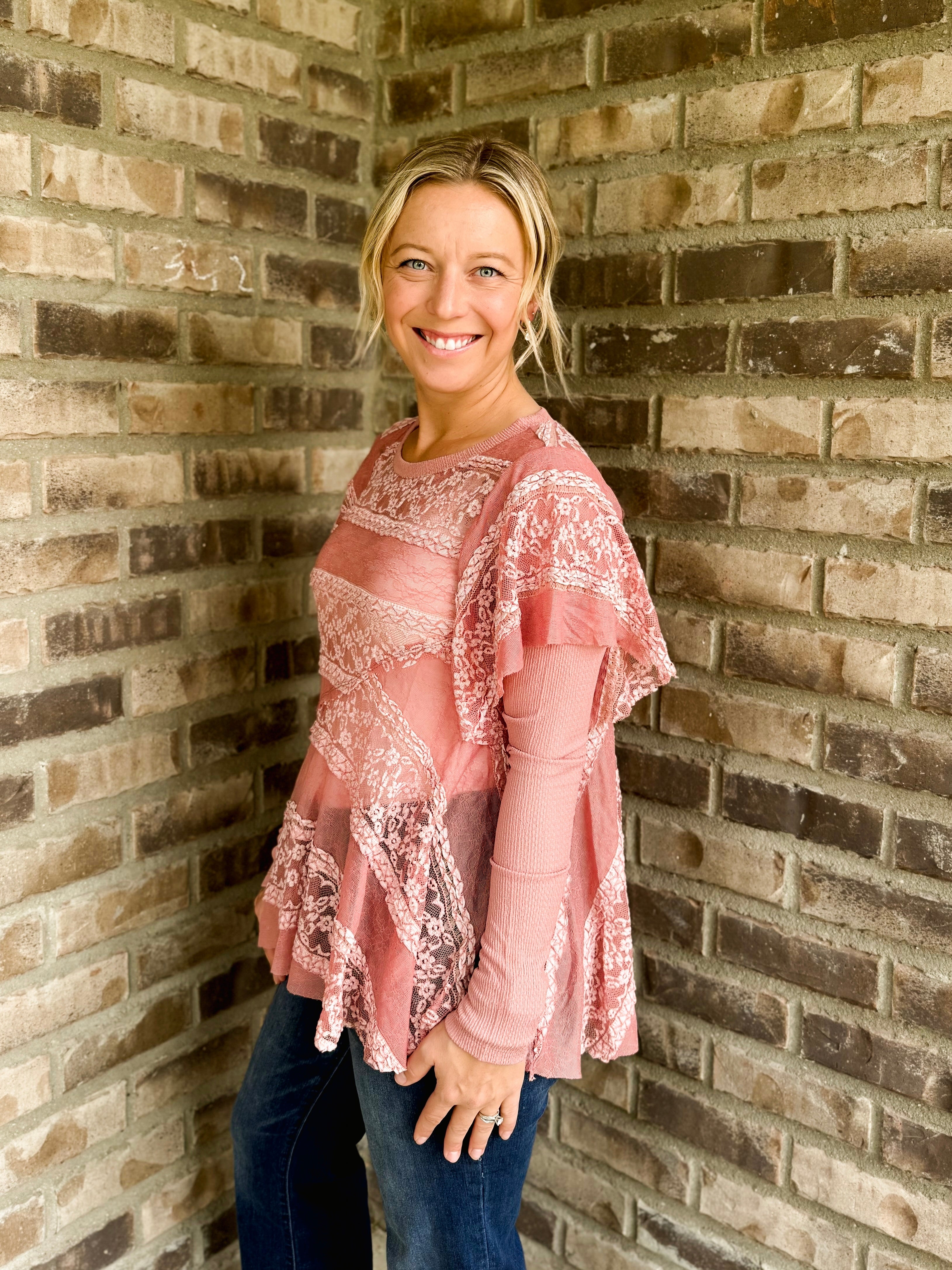 Knit Inset Lace Layered Top