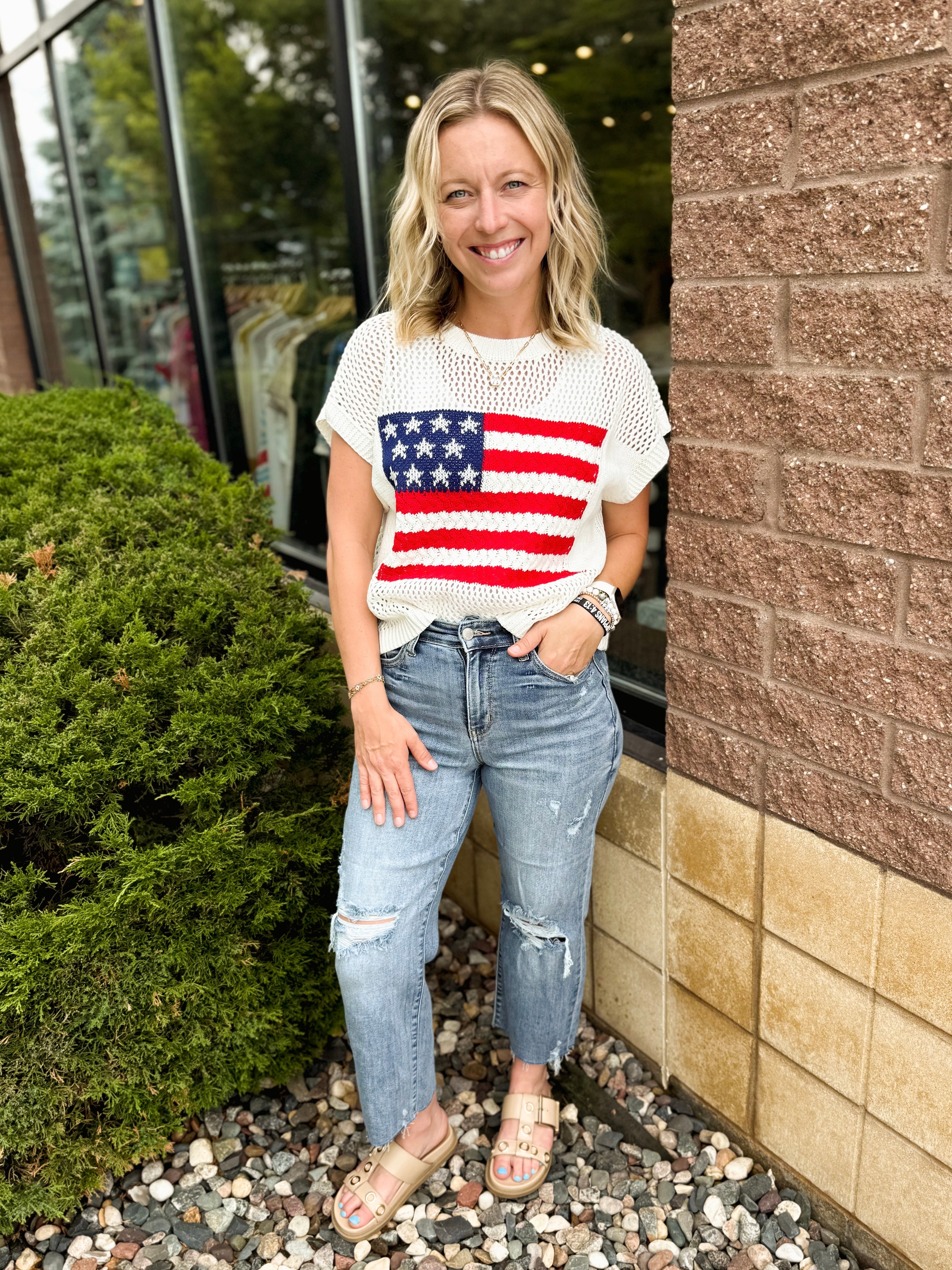 American Flag Open Stitch Sweater Top