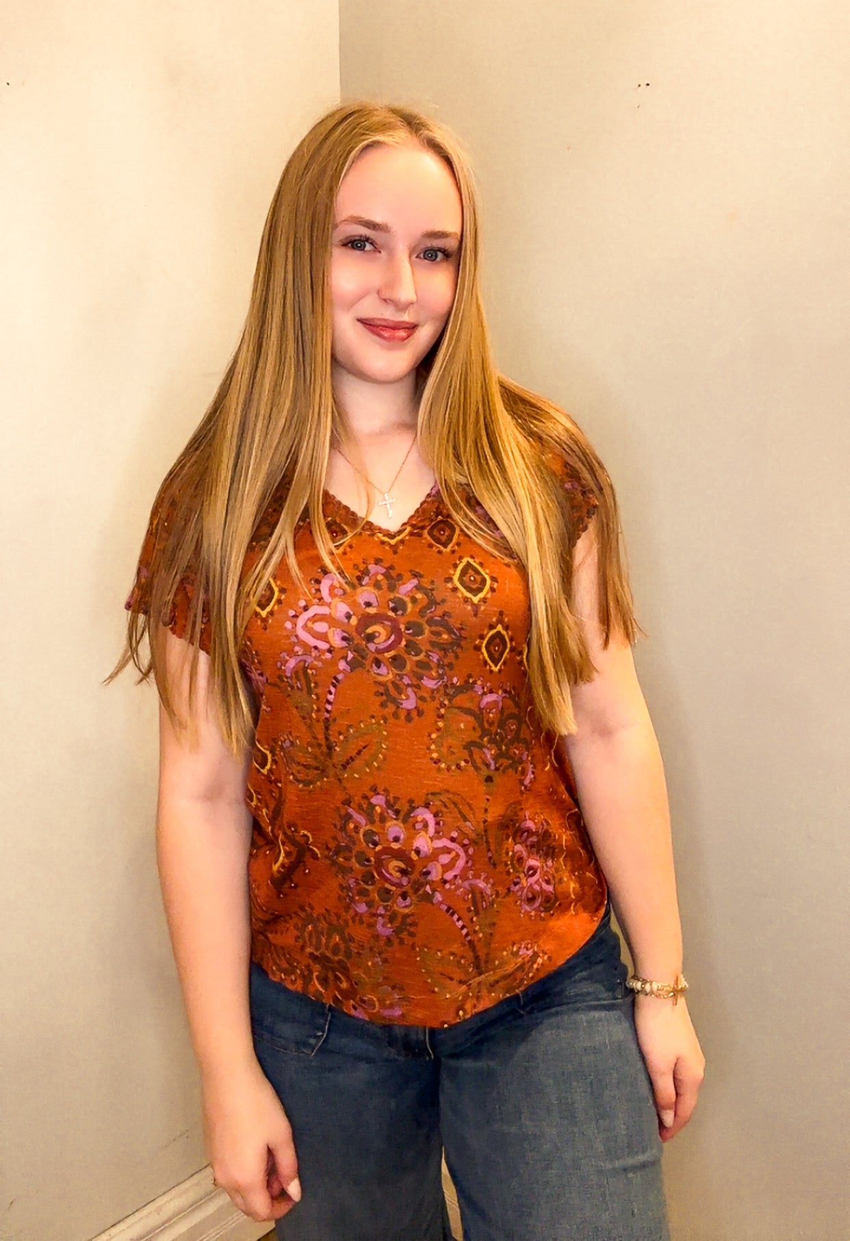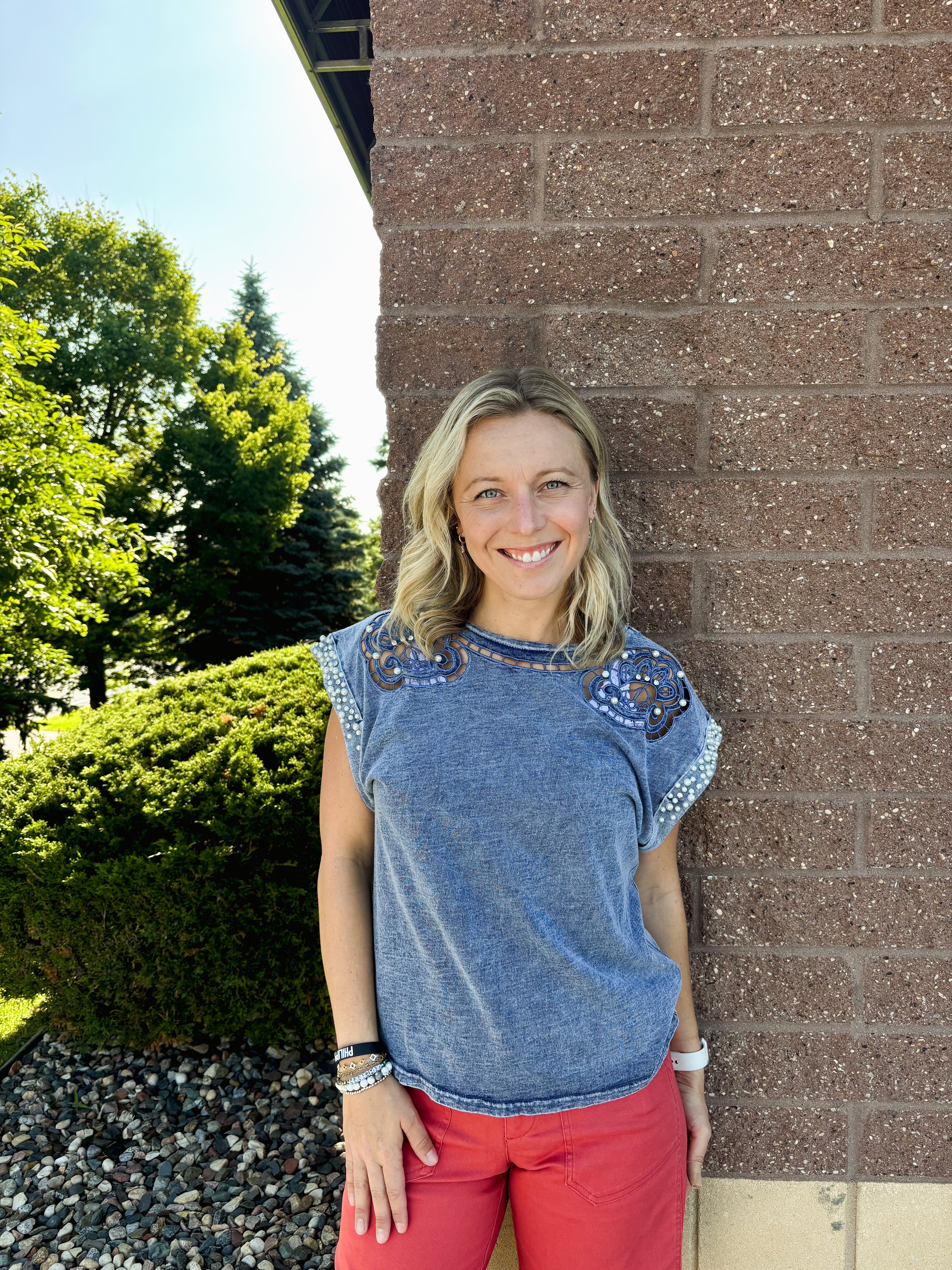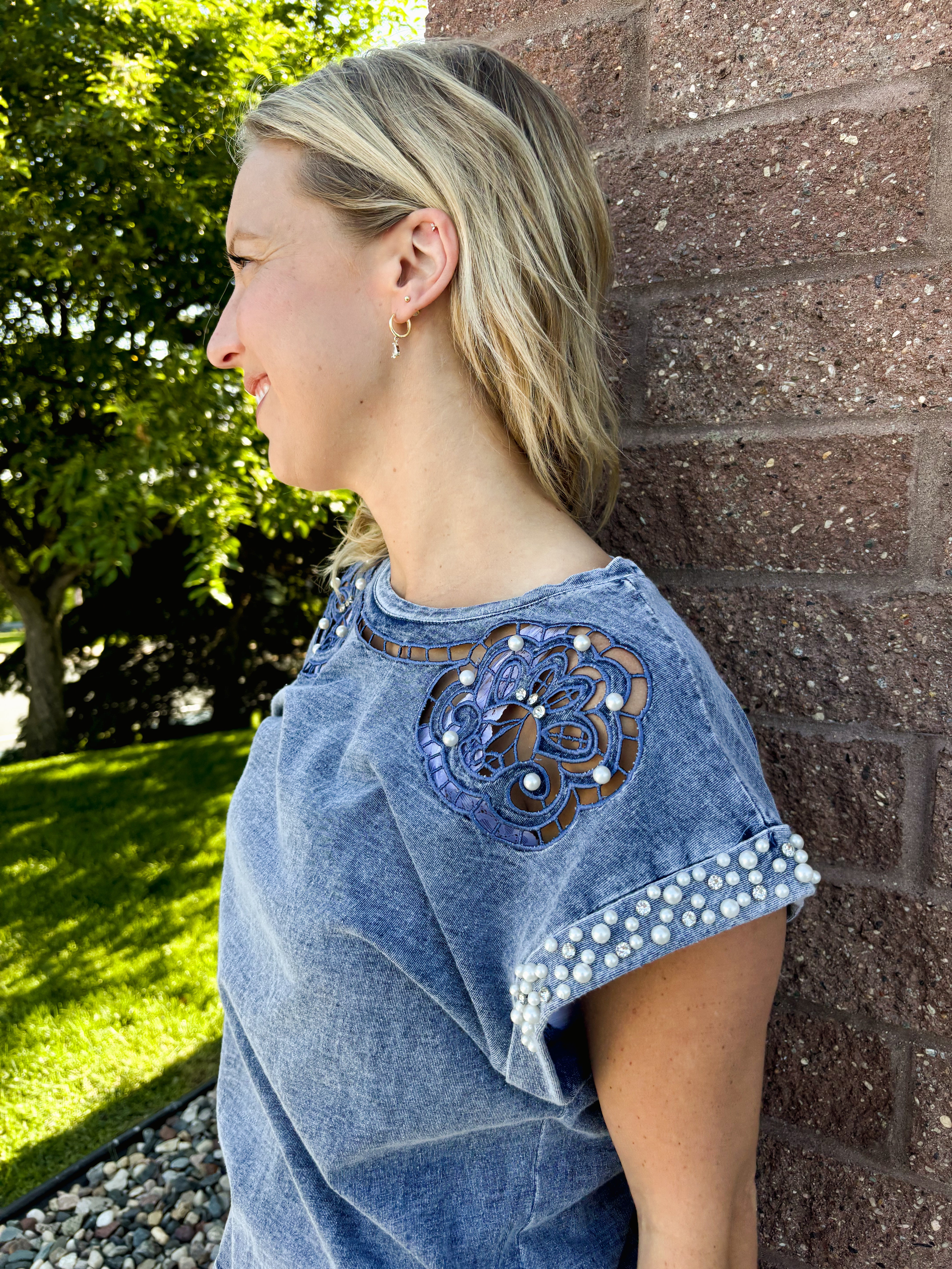Lace N Rhinestone Trim Neck Tee
