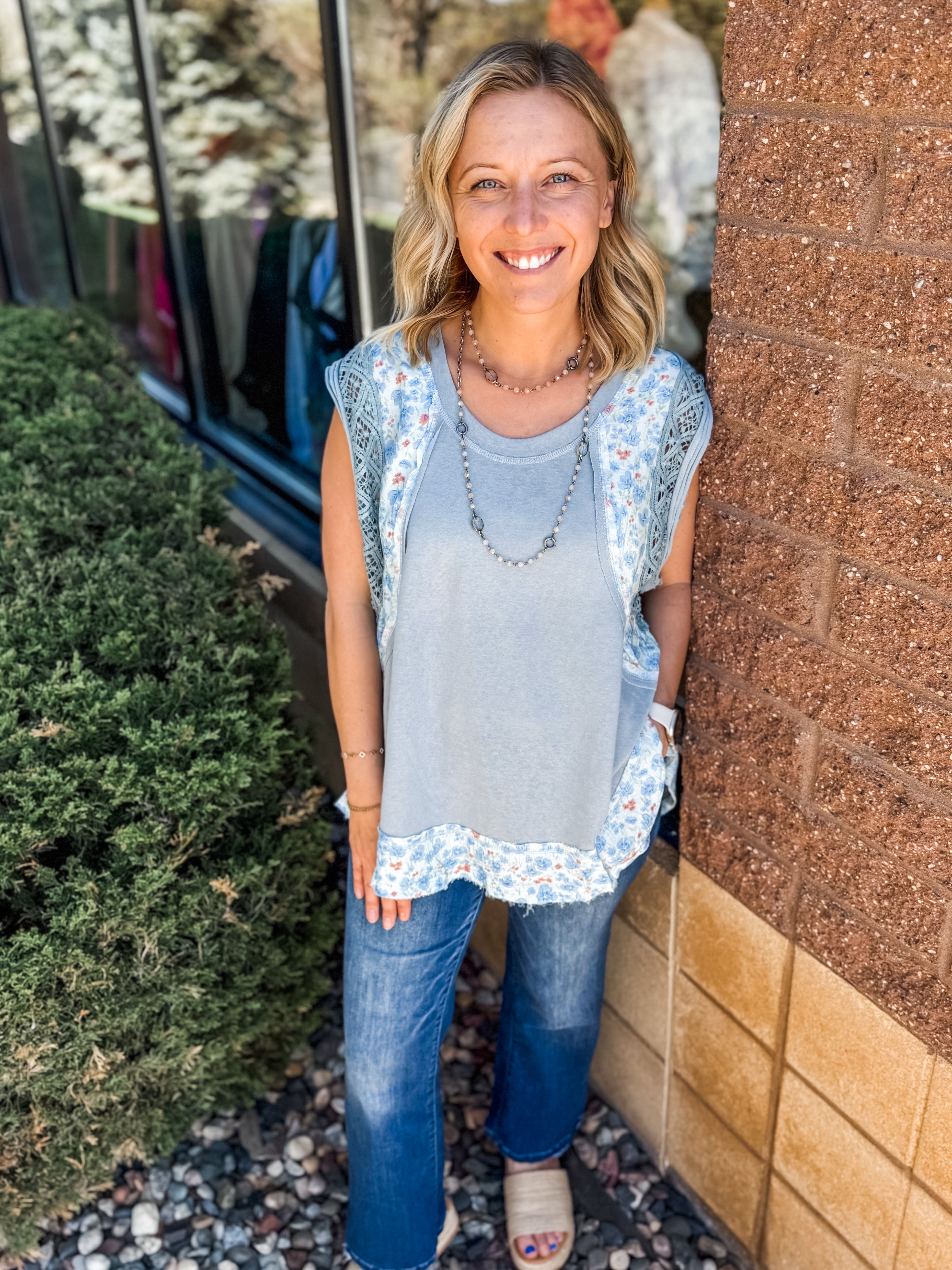 Crochet Trimmed Button Down Sweater Vest