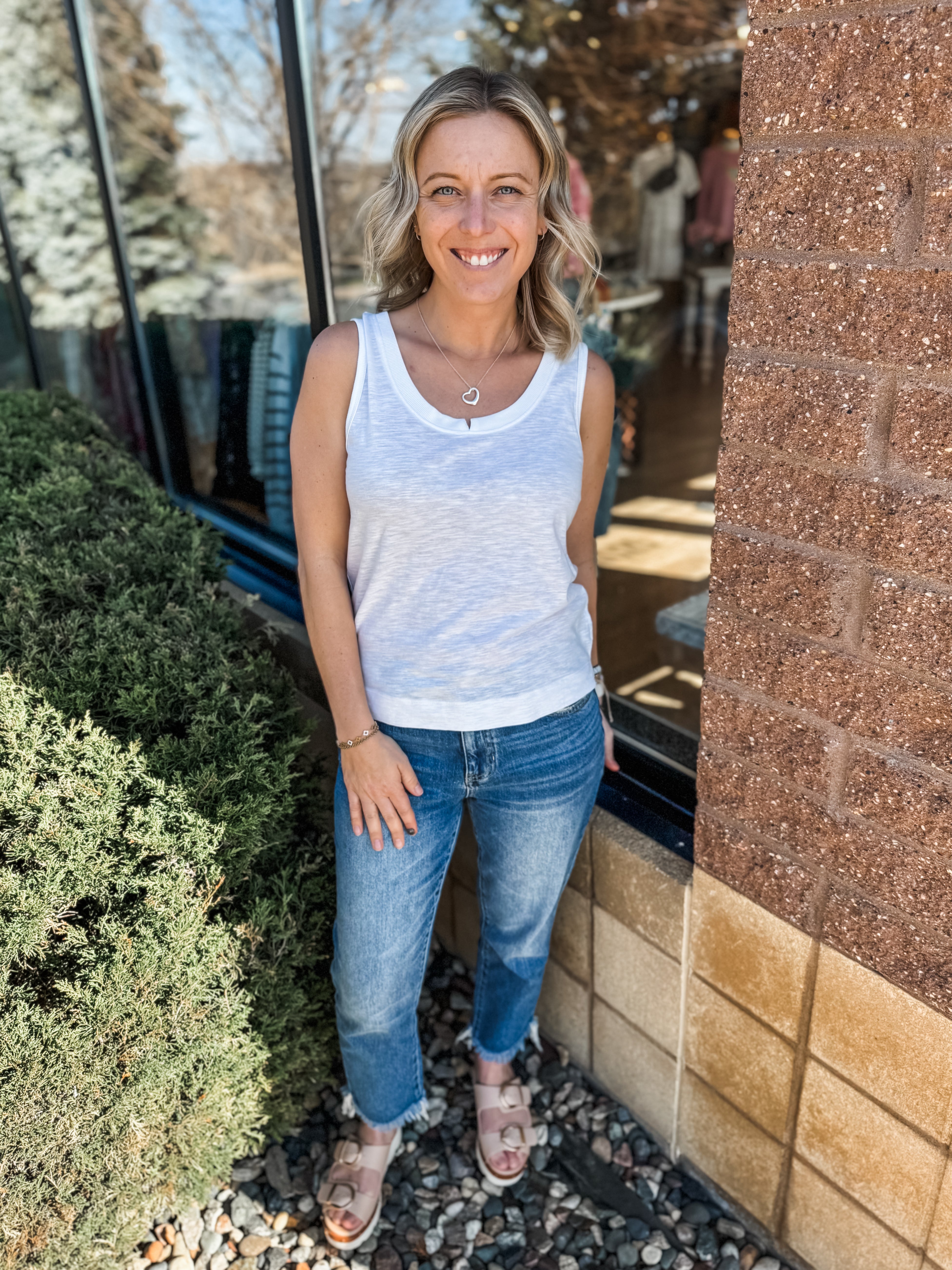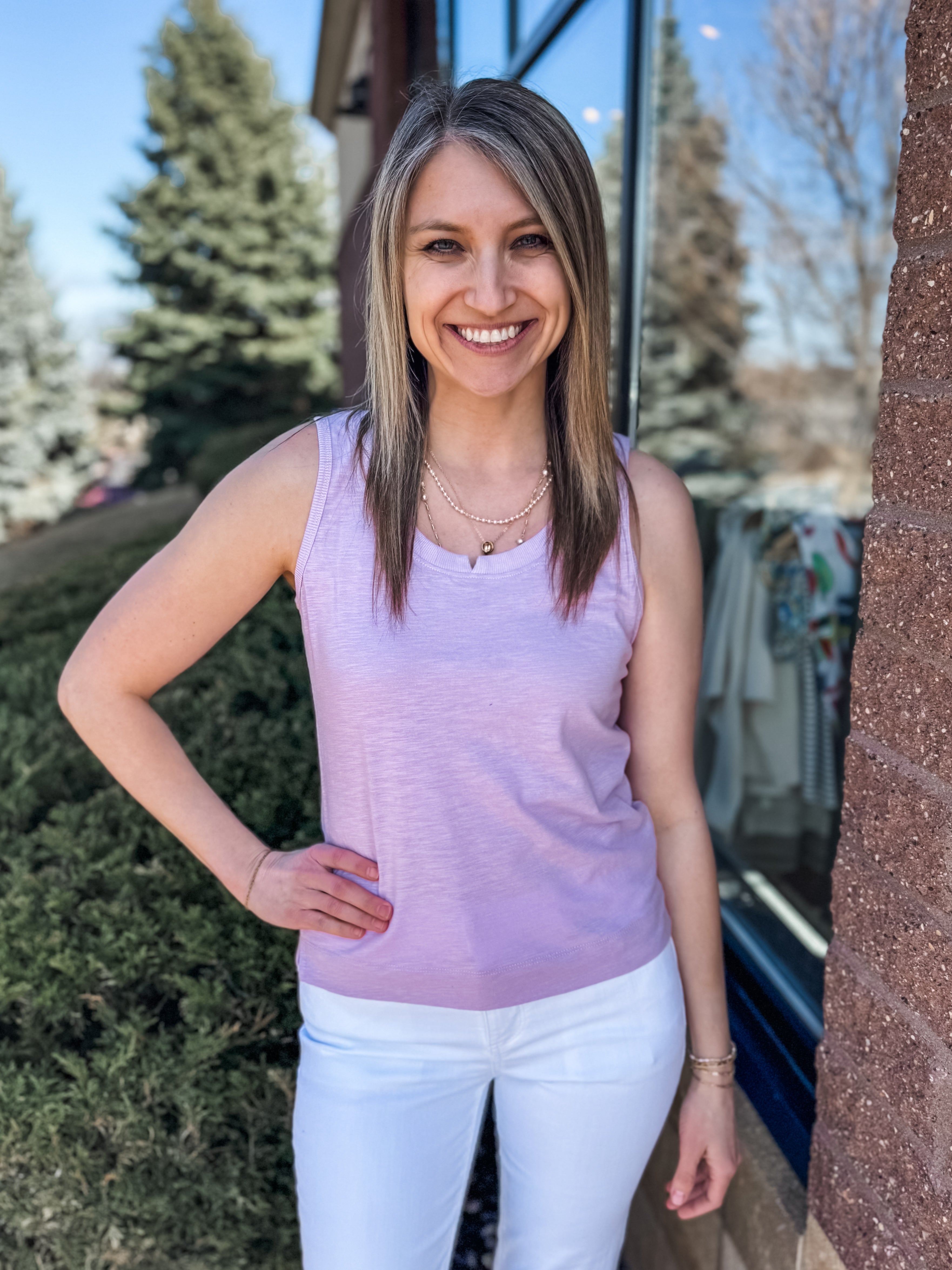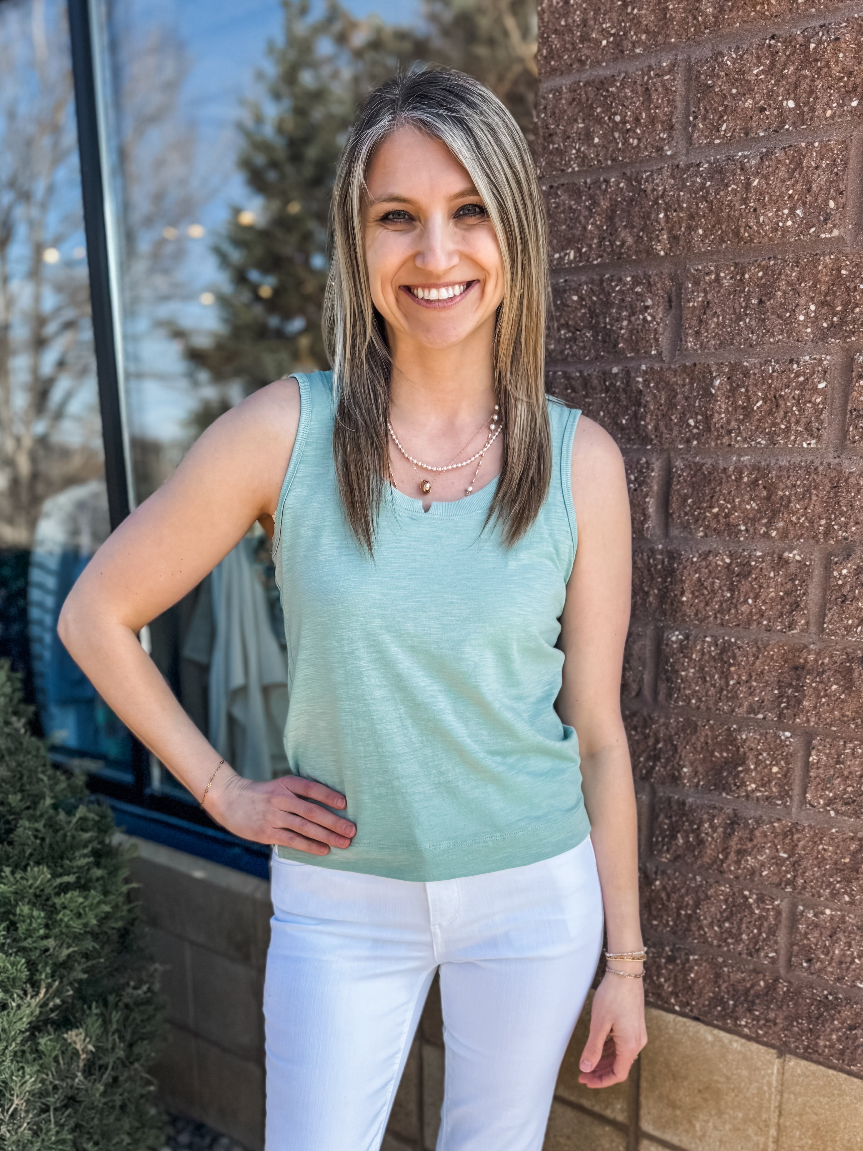 NOTCHED SCOOP NECK SIDE SLIT HEM KNIT TANK