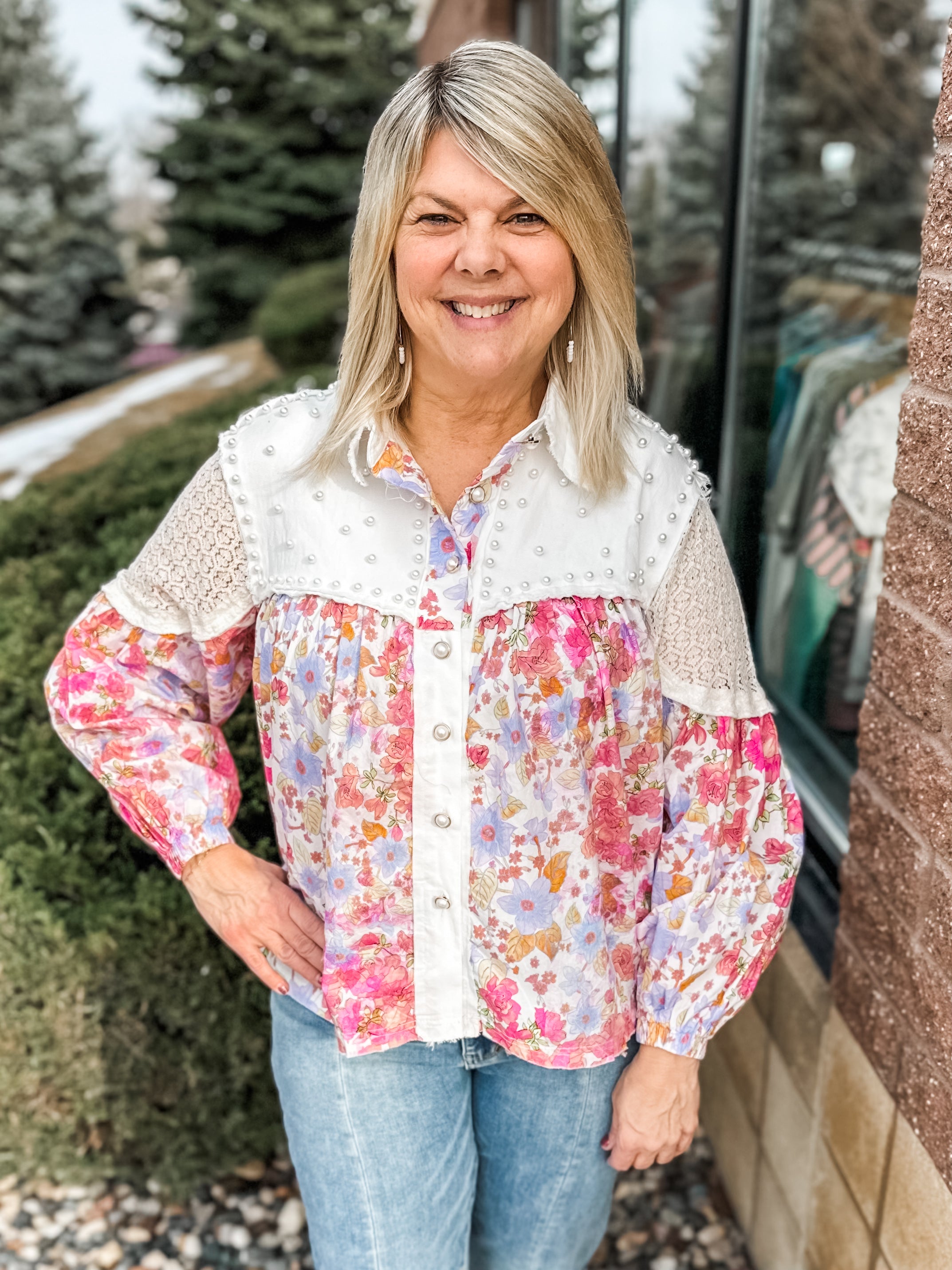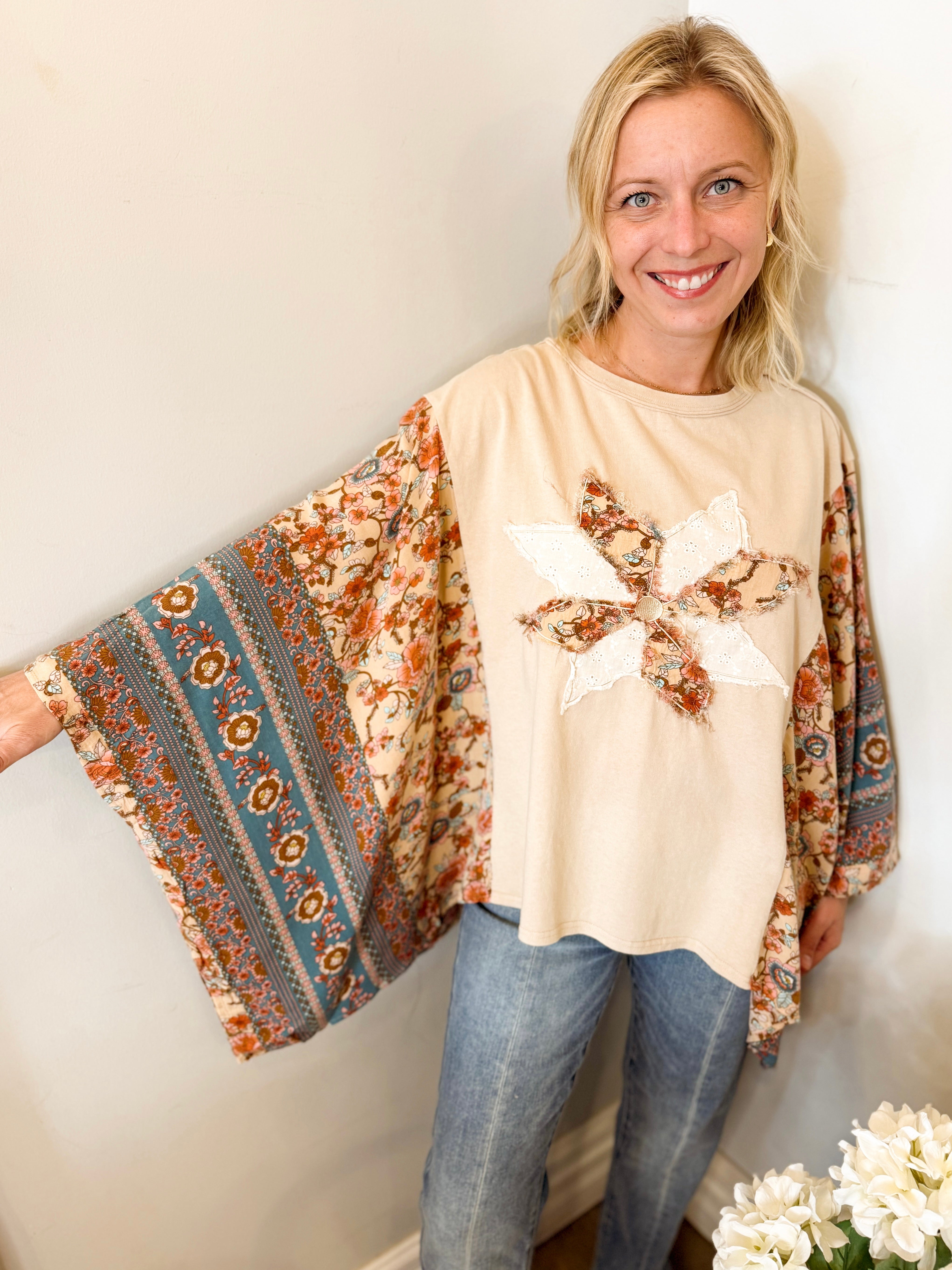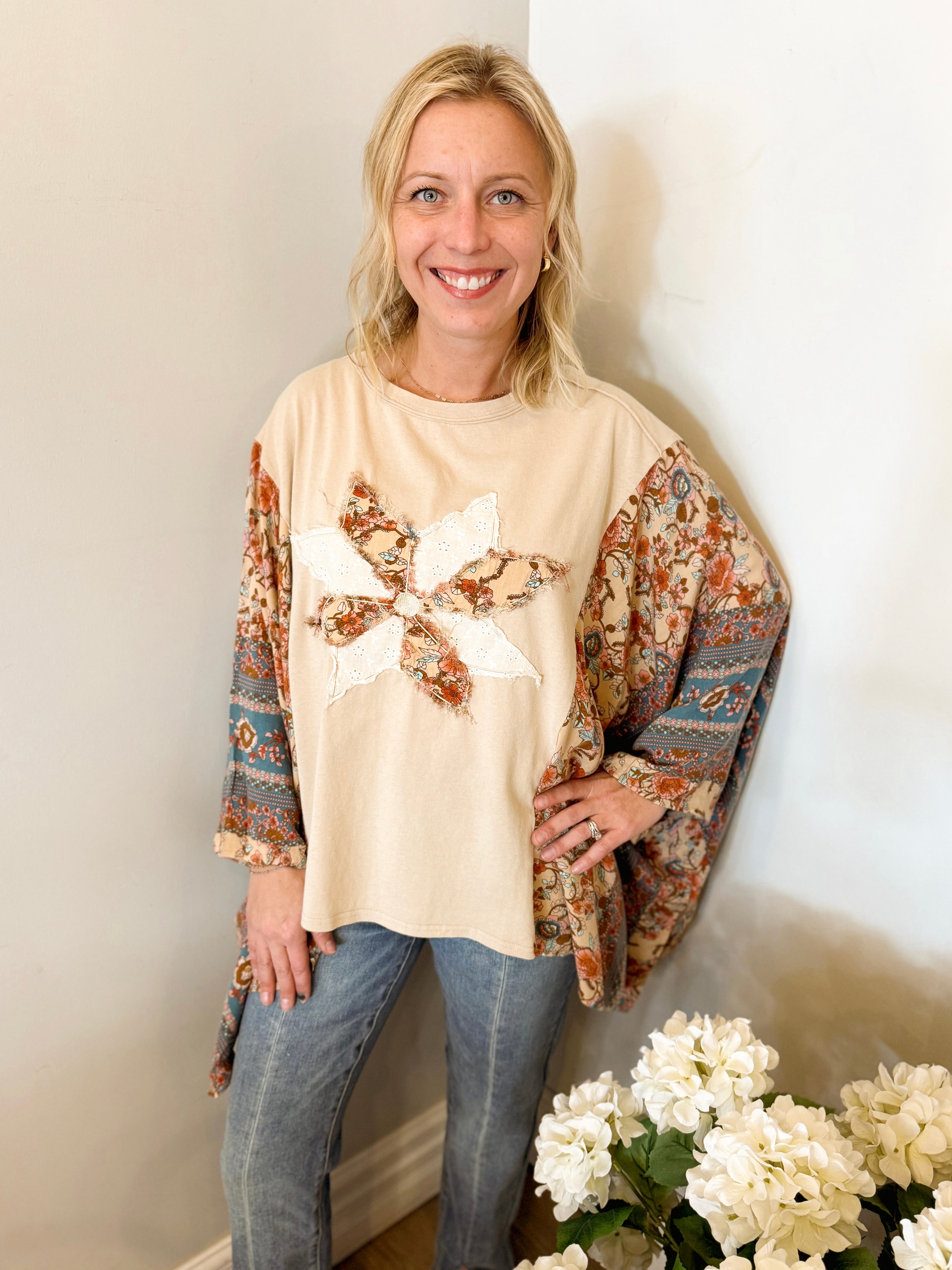 Vintage Washed Floral Crochet Contrast Top