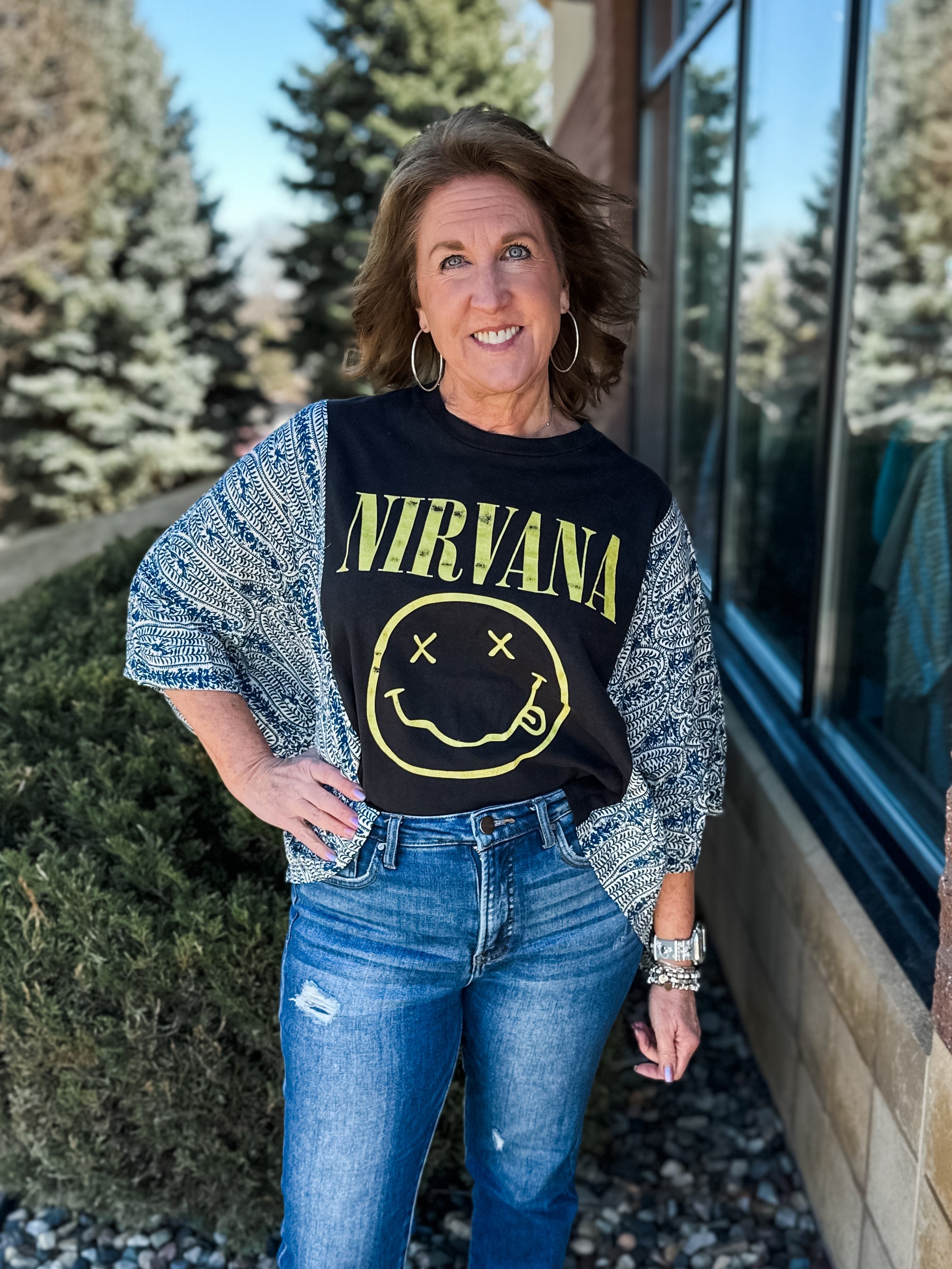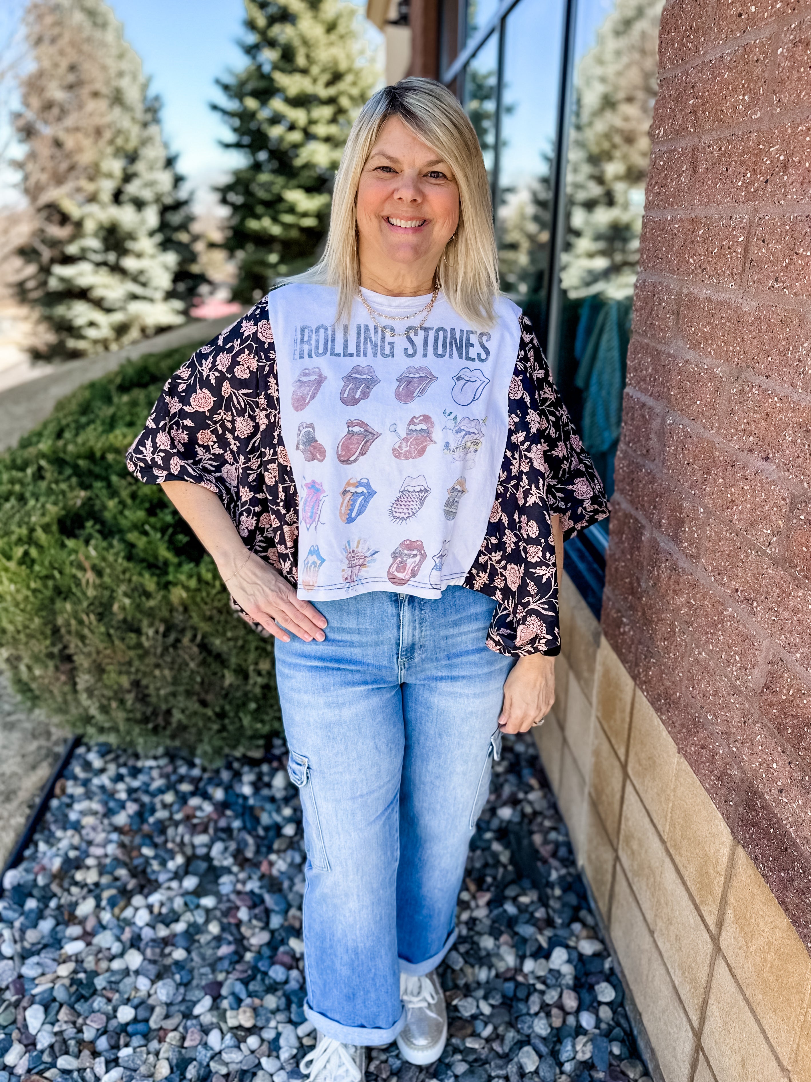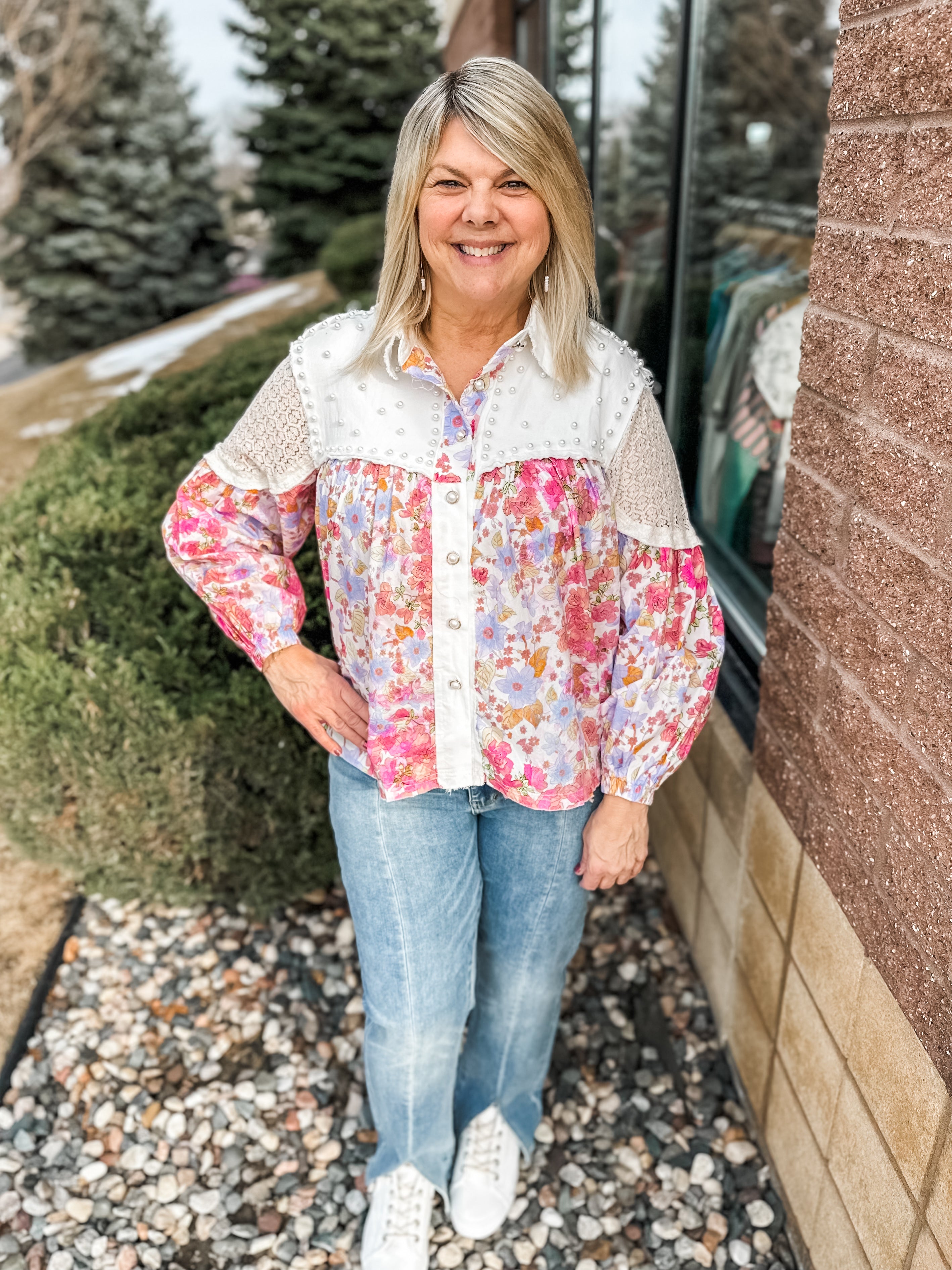 Vintage Washed Floral Crochet Contrast Top