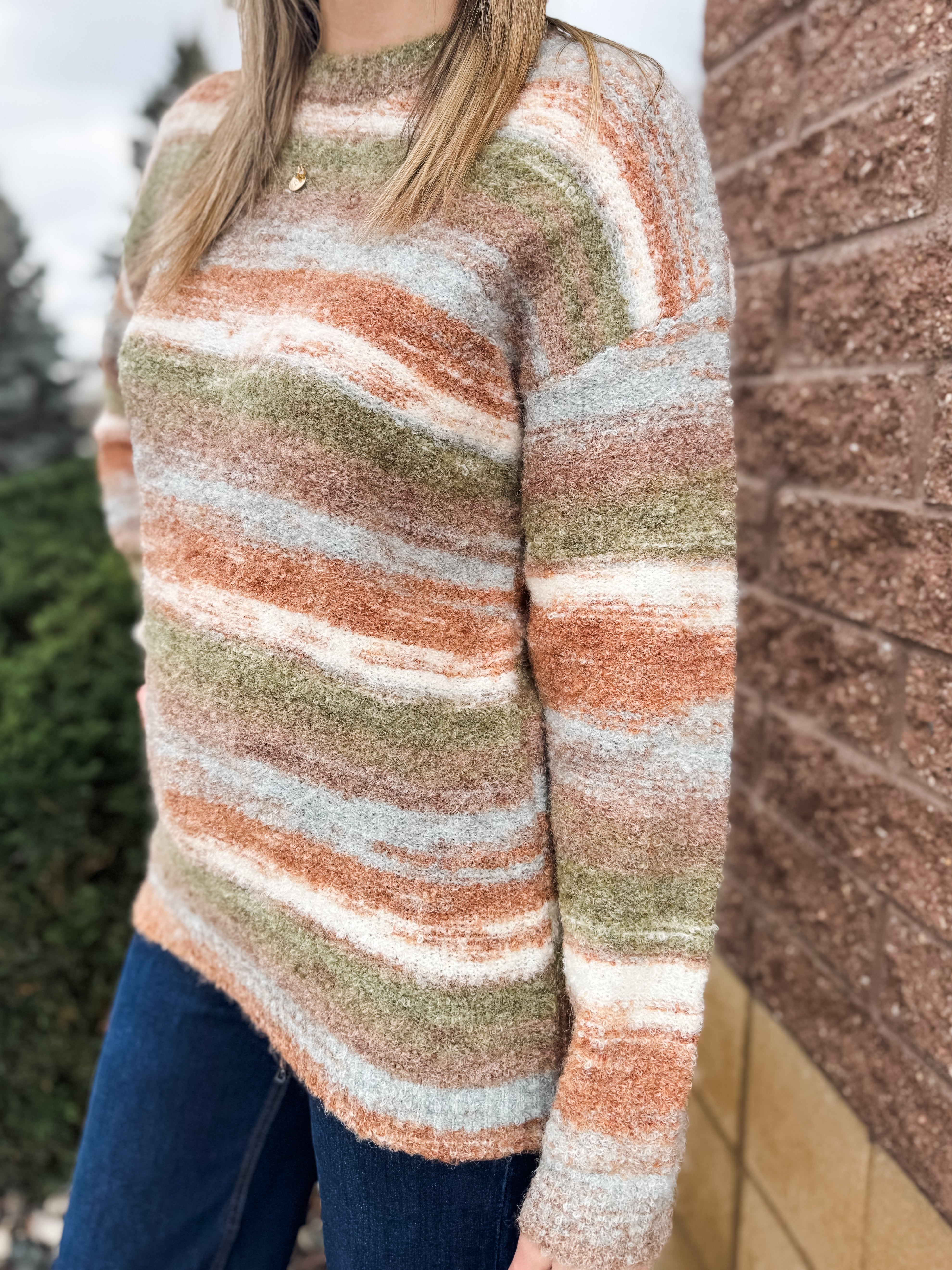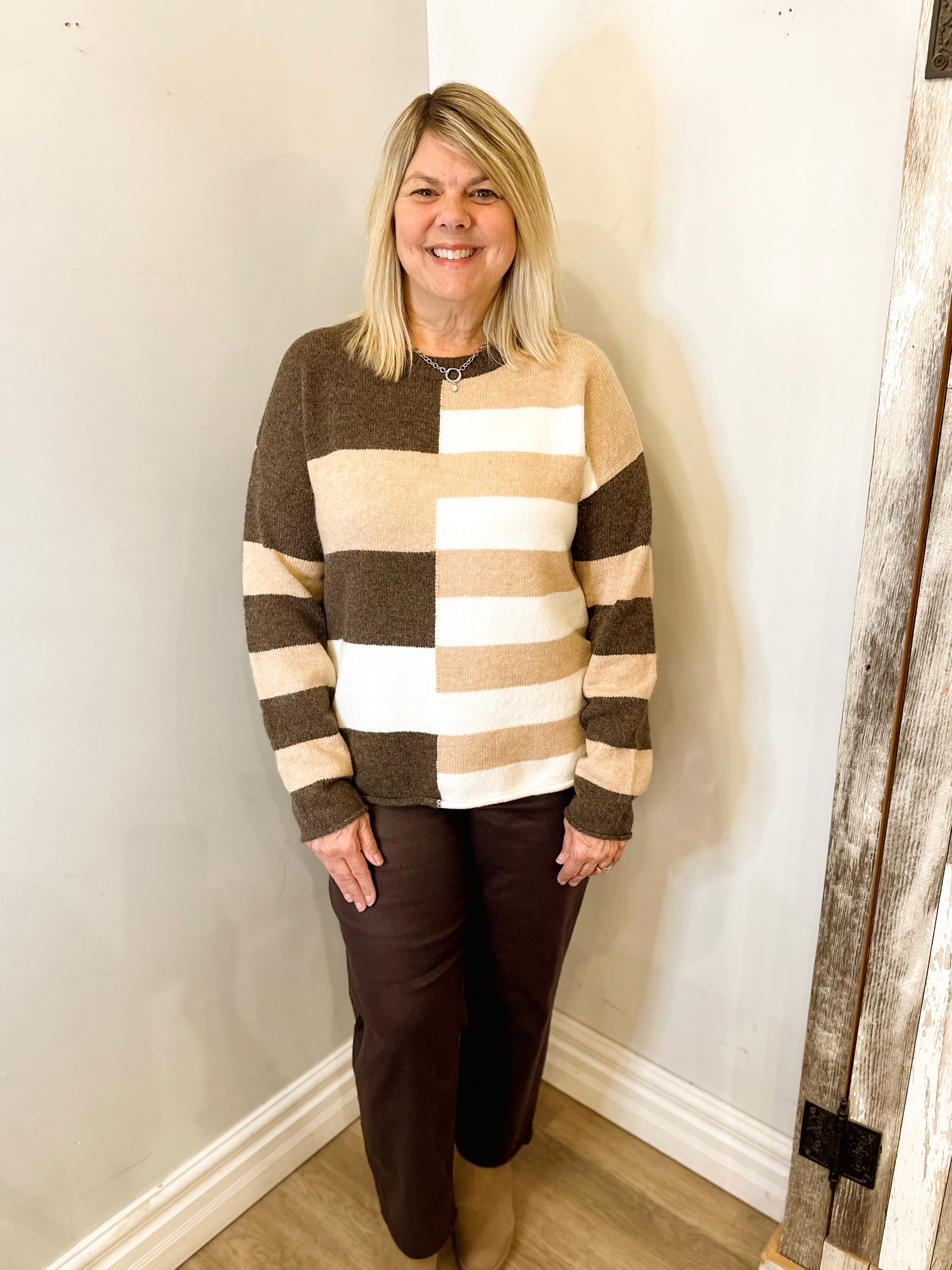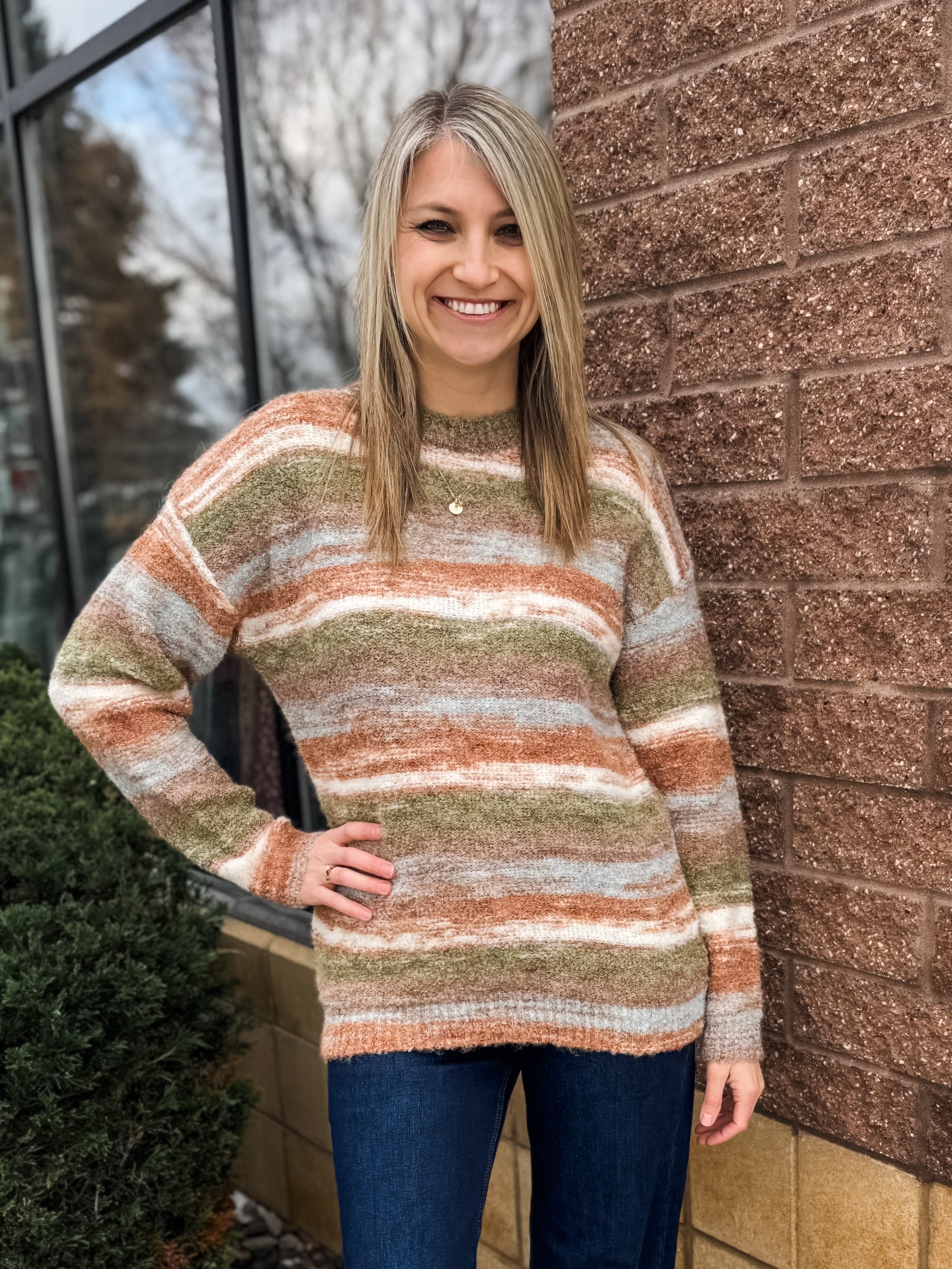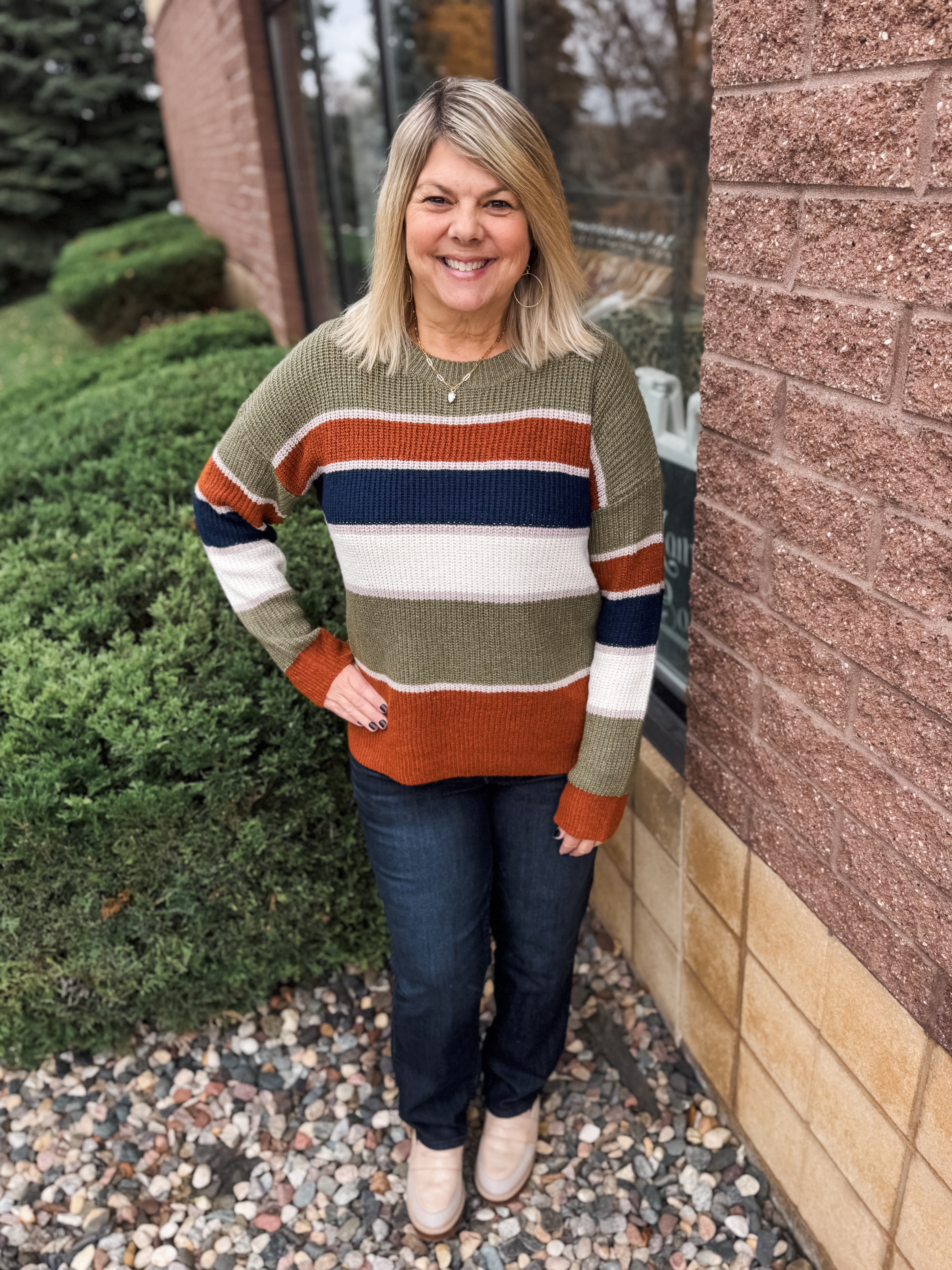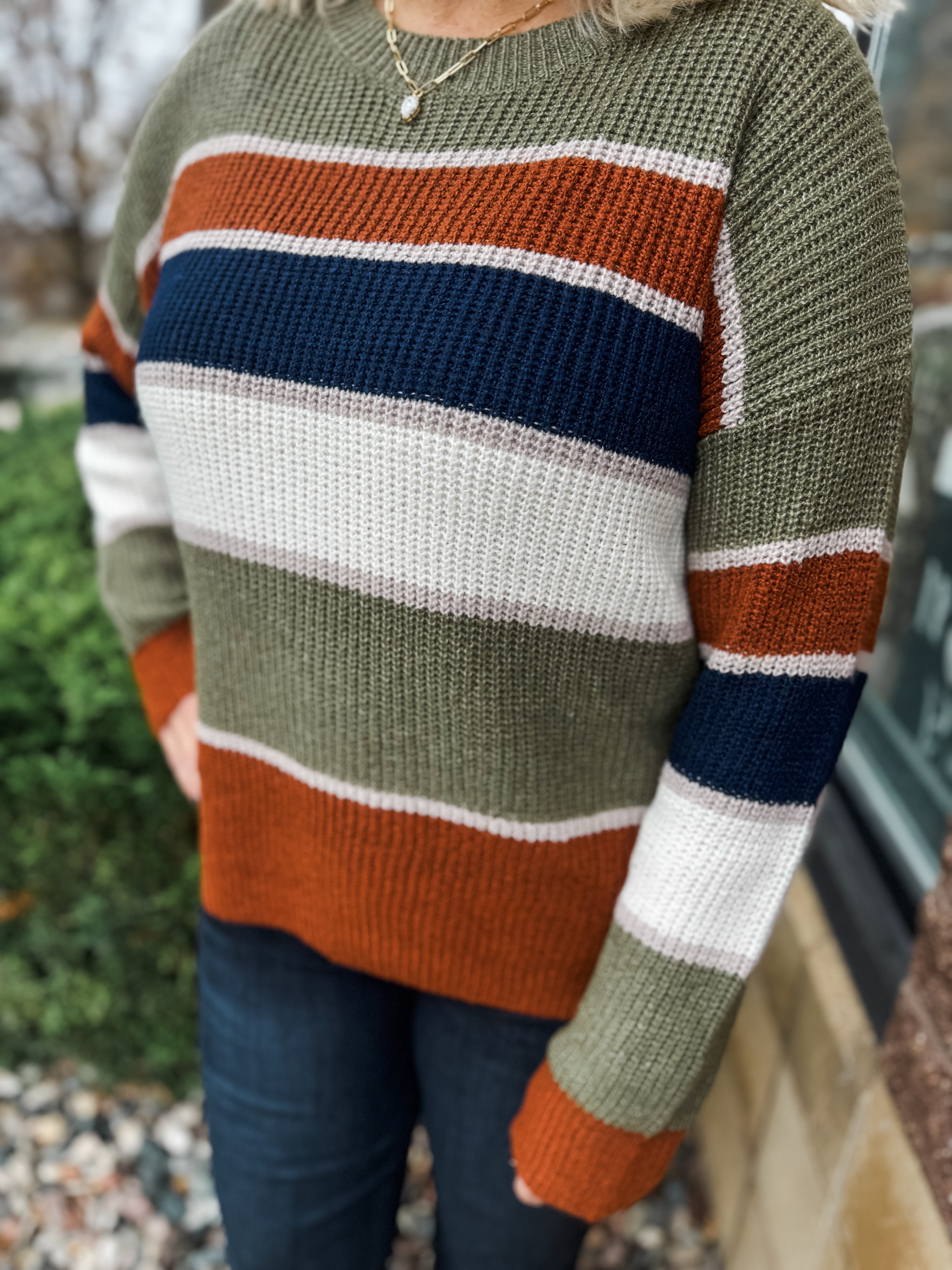 Multi Color Block Striped Long Sleeve Crew Neck Pullover