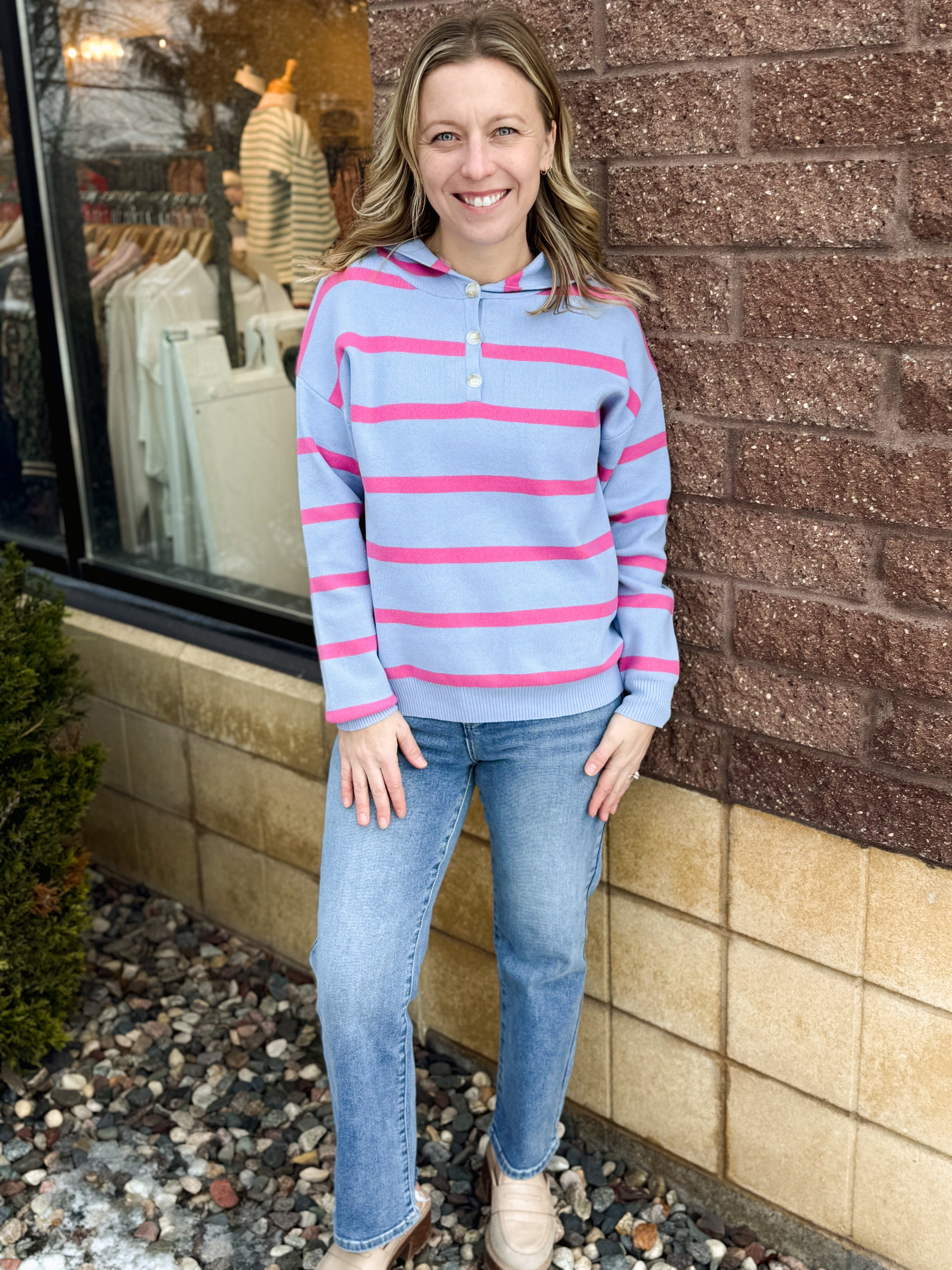 Gold Button Stripe Pattern Raglan Slv Cardigan