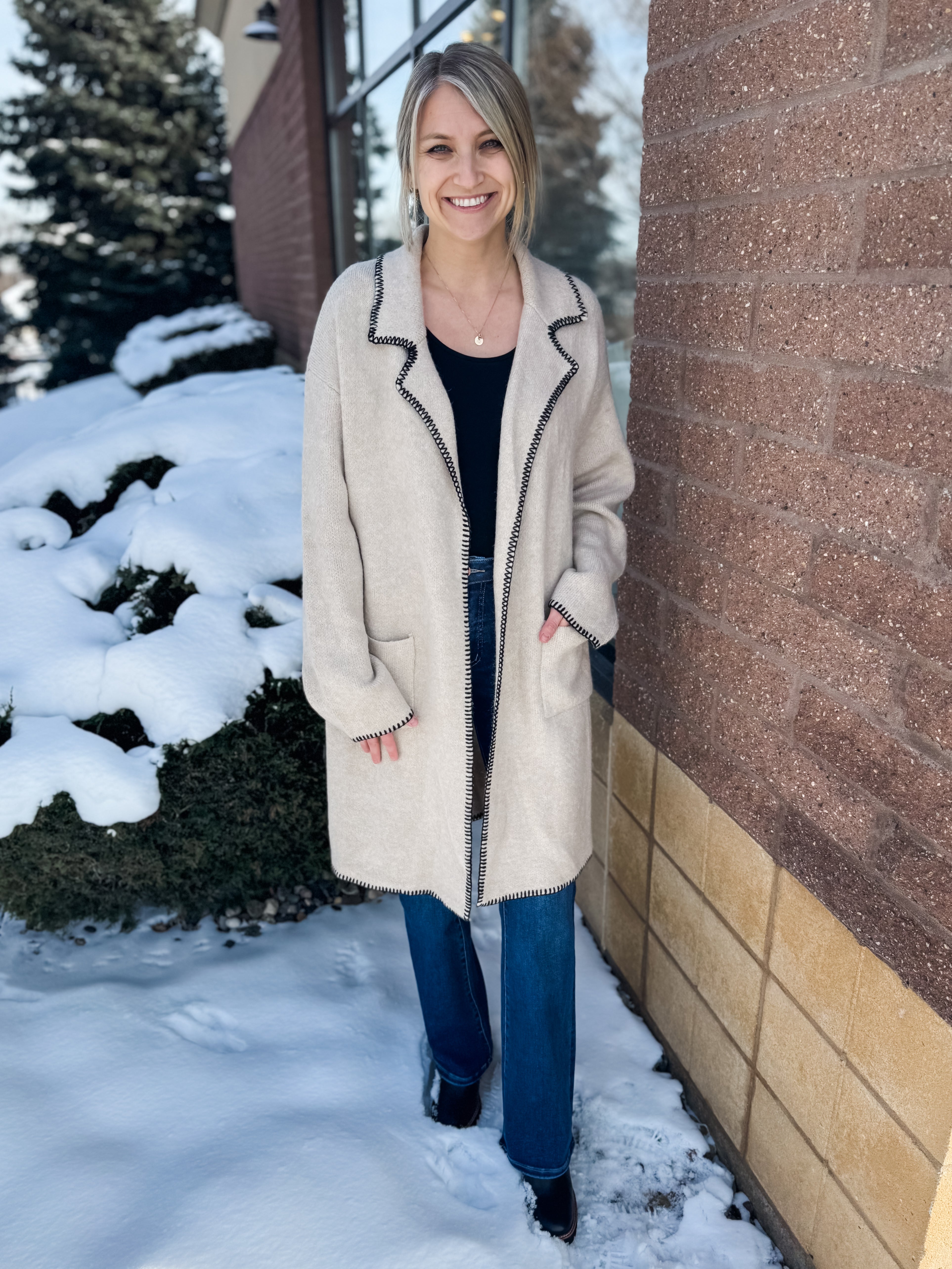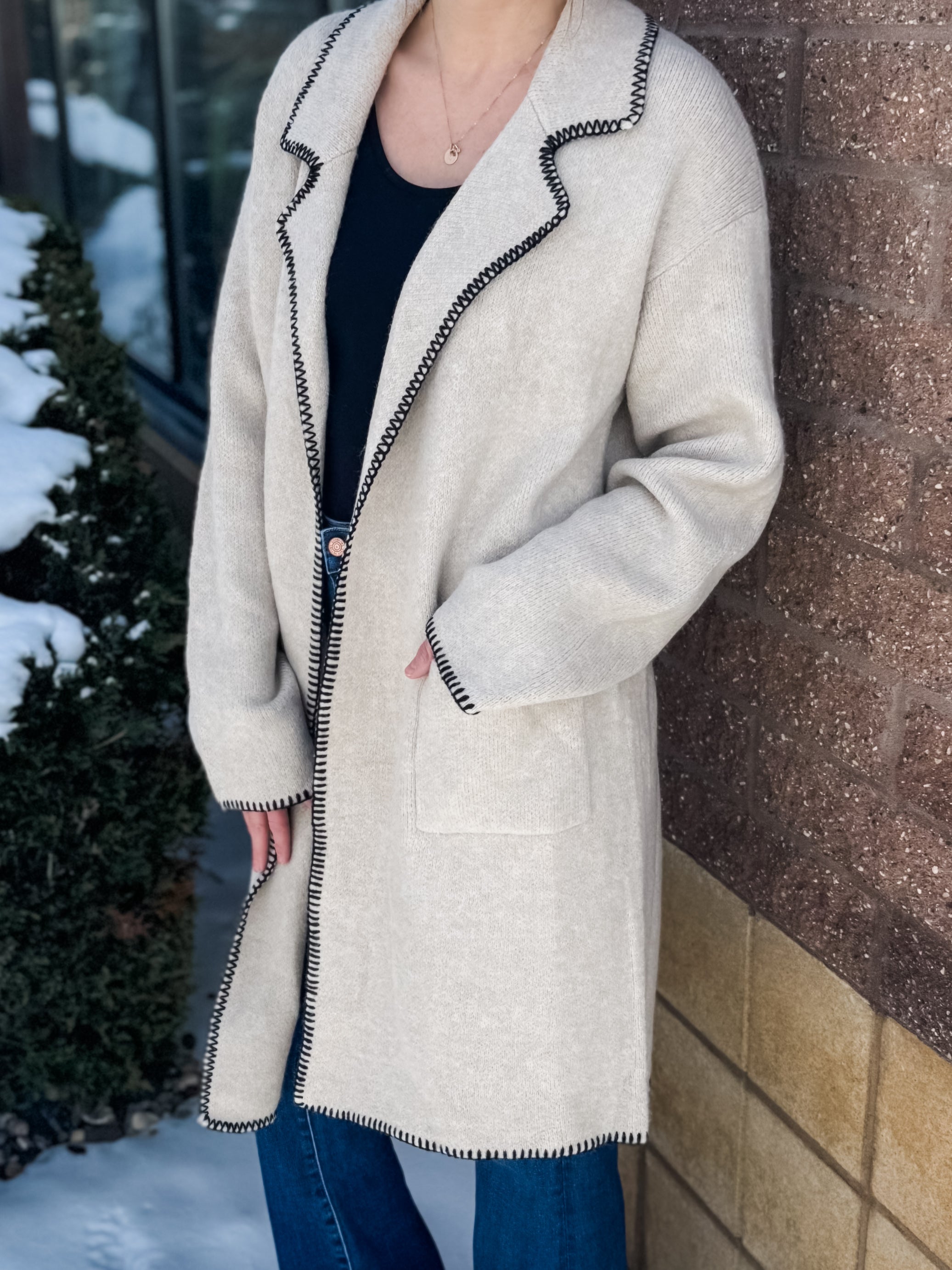 Speckled Yarn Edge Stitched Button Down Cardigan