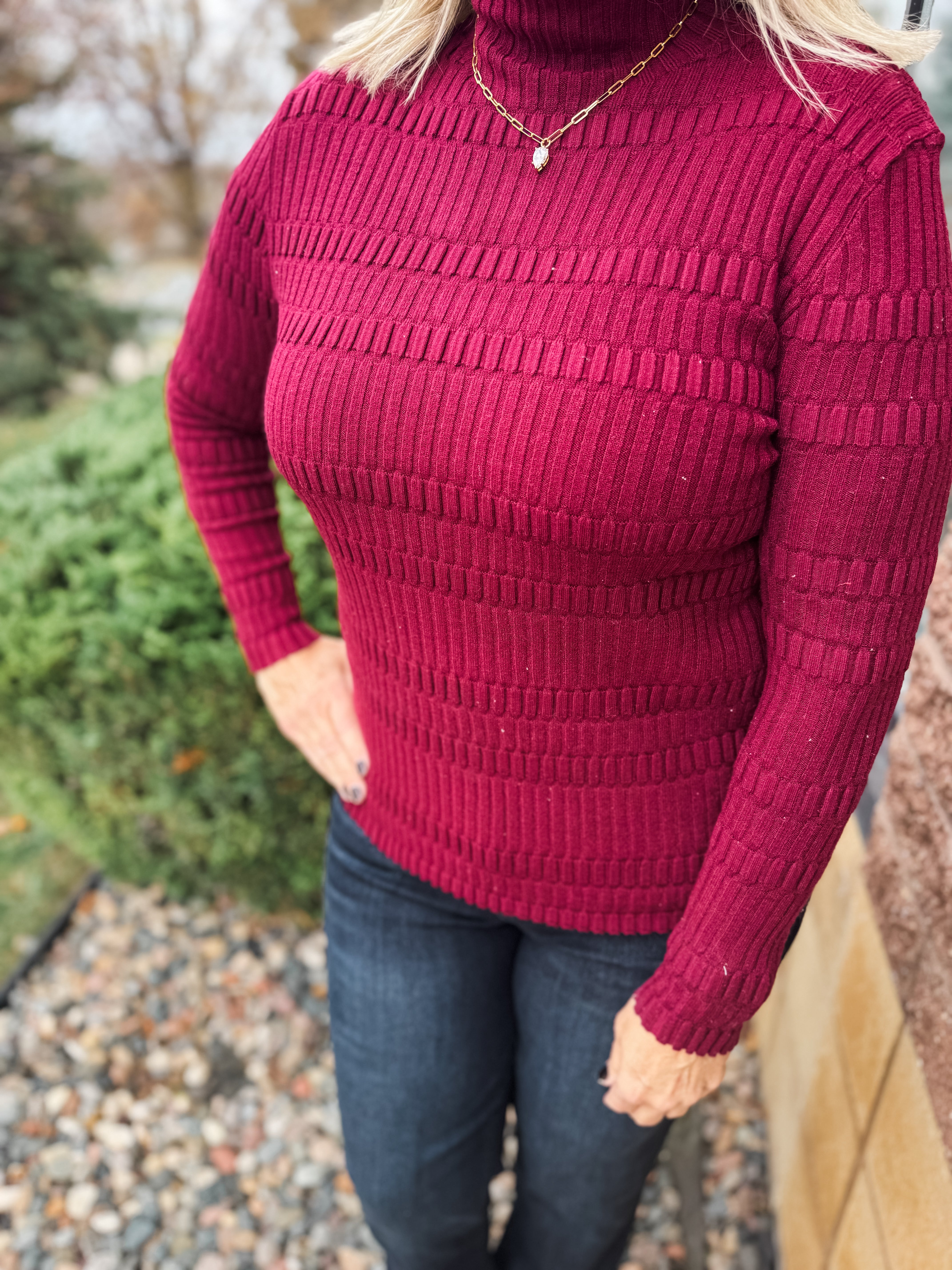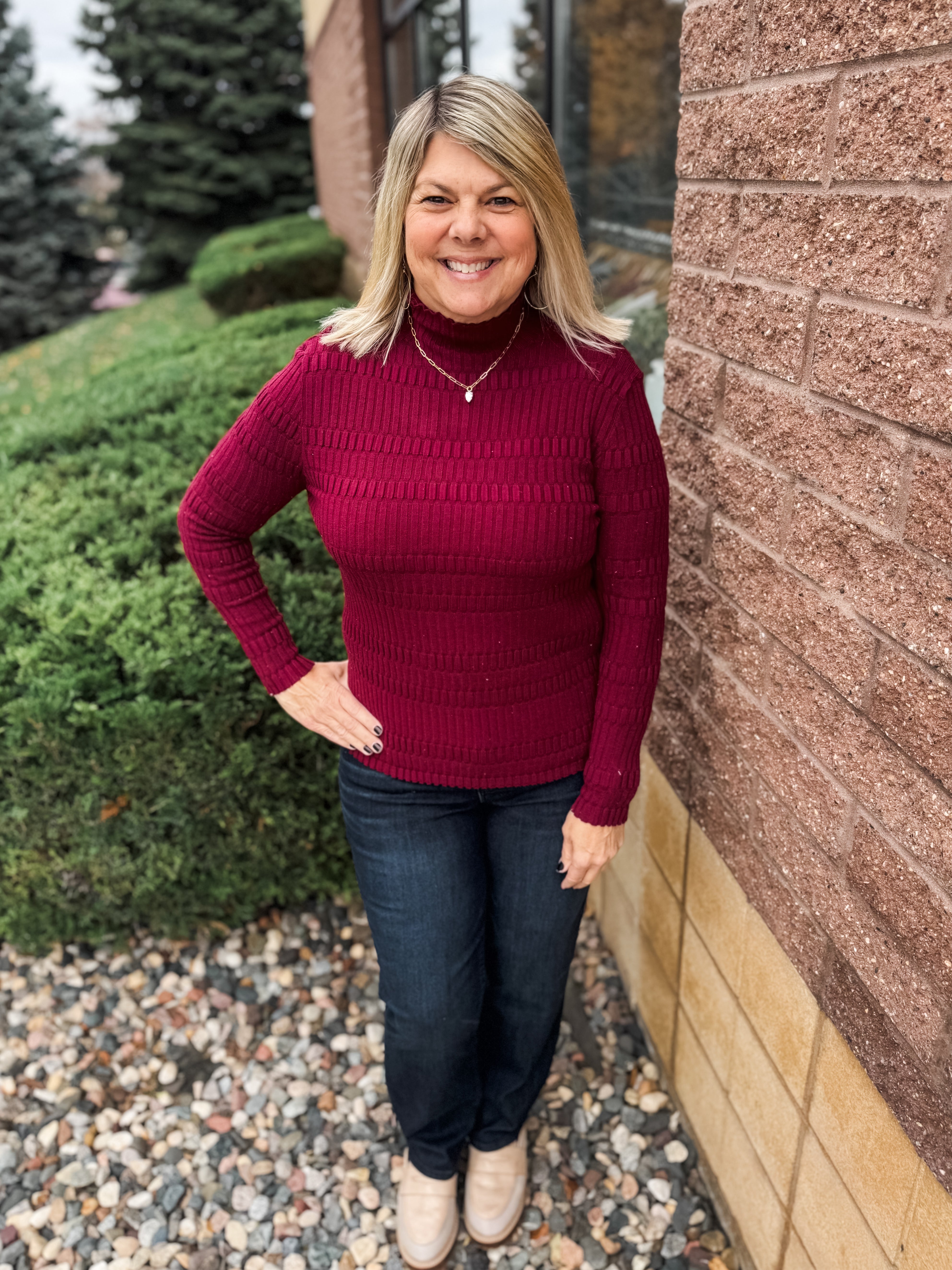 Mock Neck Long Sleeve Rib Textured Stretchy Top