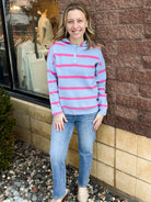 Half Button Striped Hoodie Sweater