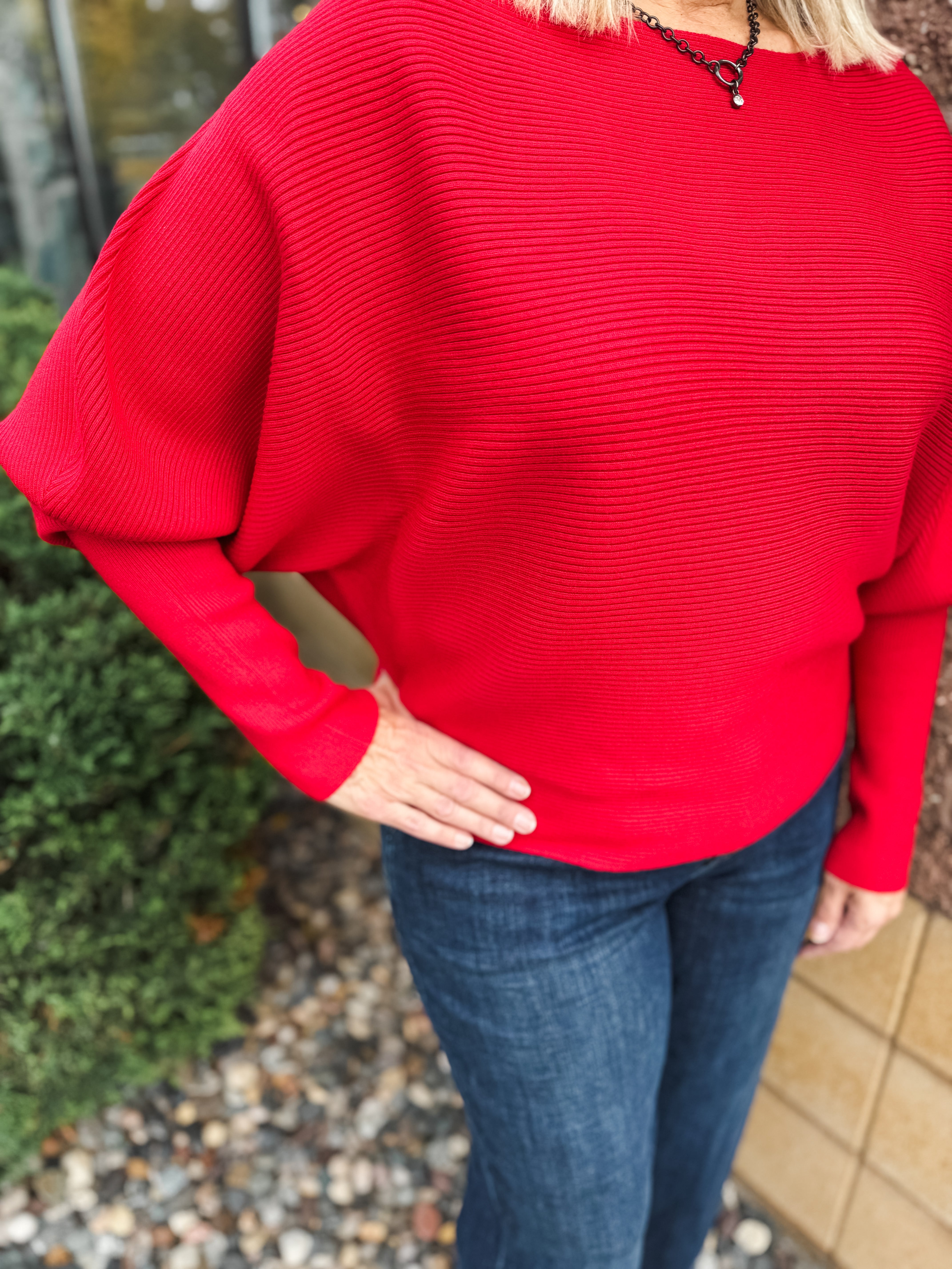 Long Sleeve Boat Neck Dolman Sweater