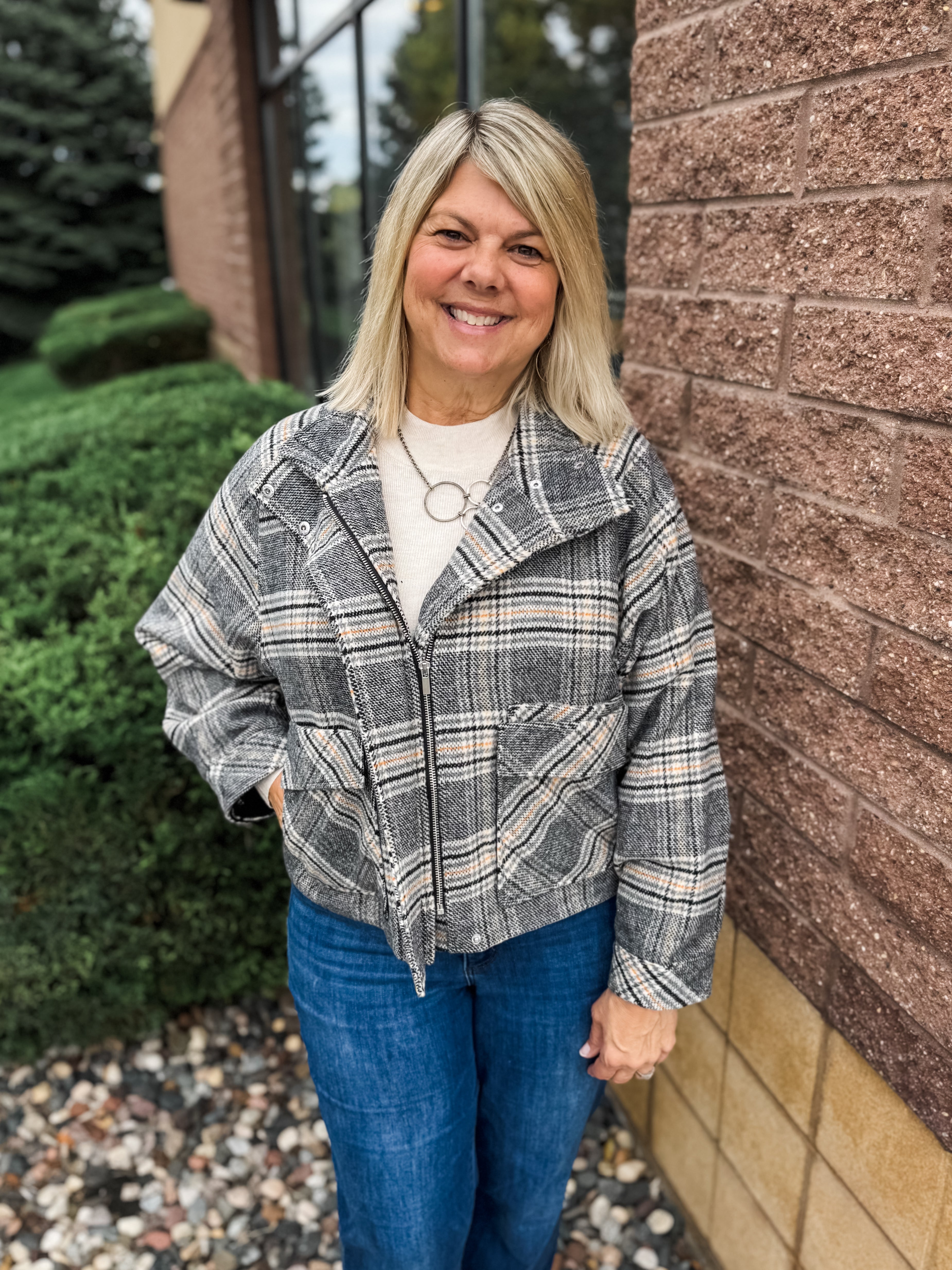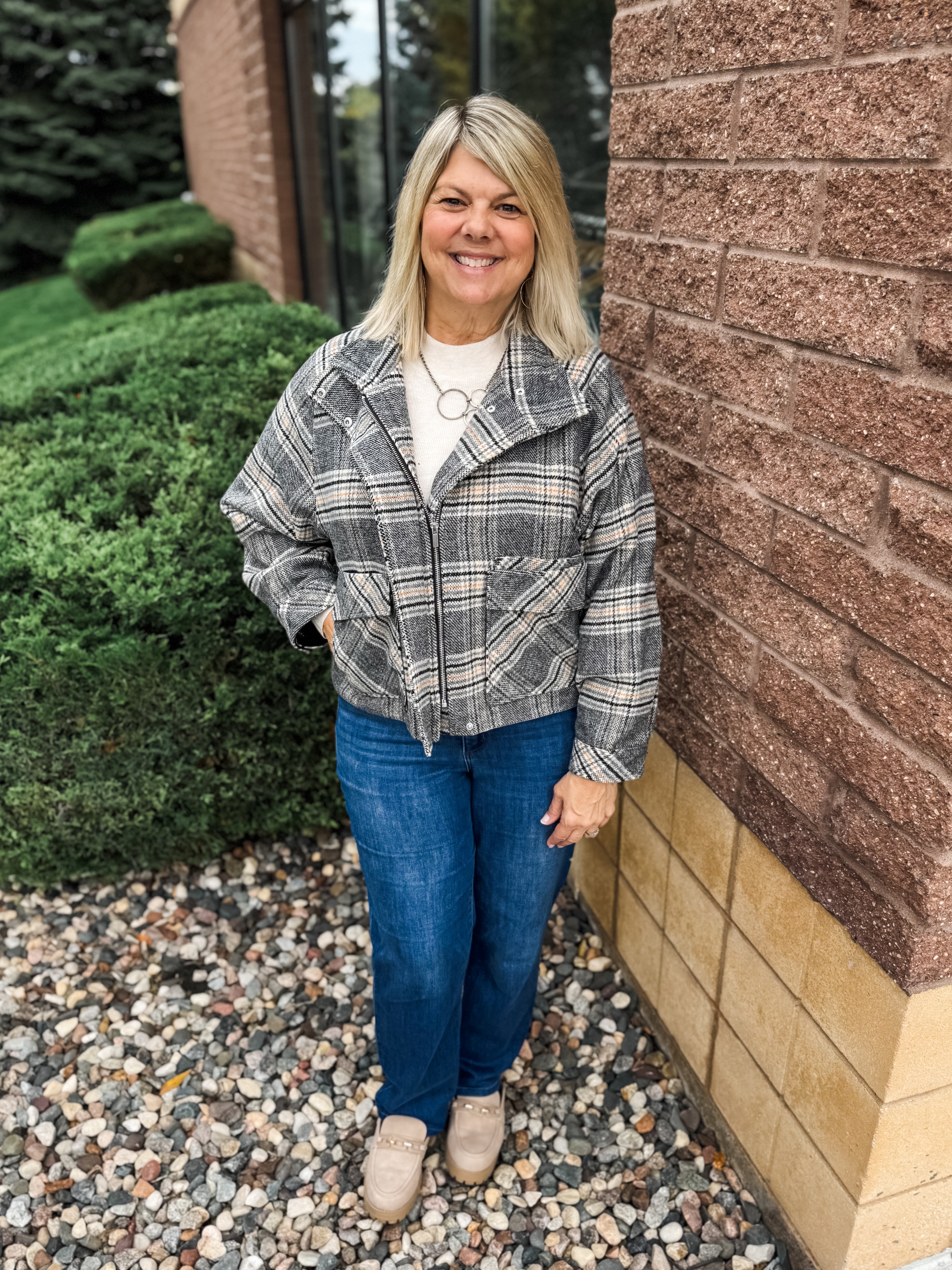 LONG SLEEVE MOCK NECK ZIP UP JACKET W/ SIDE ENTRY PATCH POCKETS