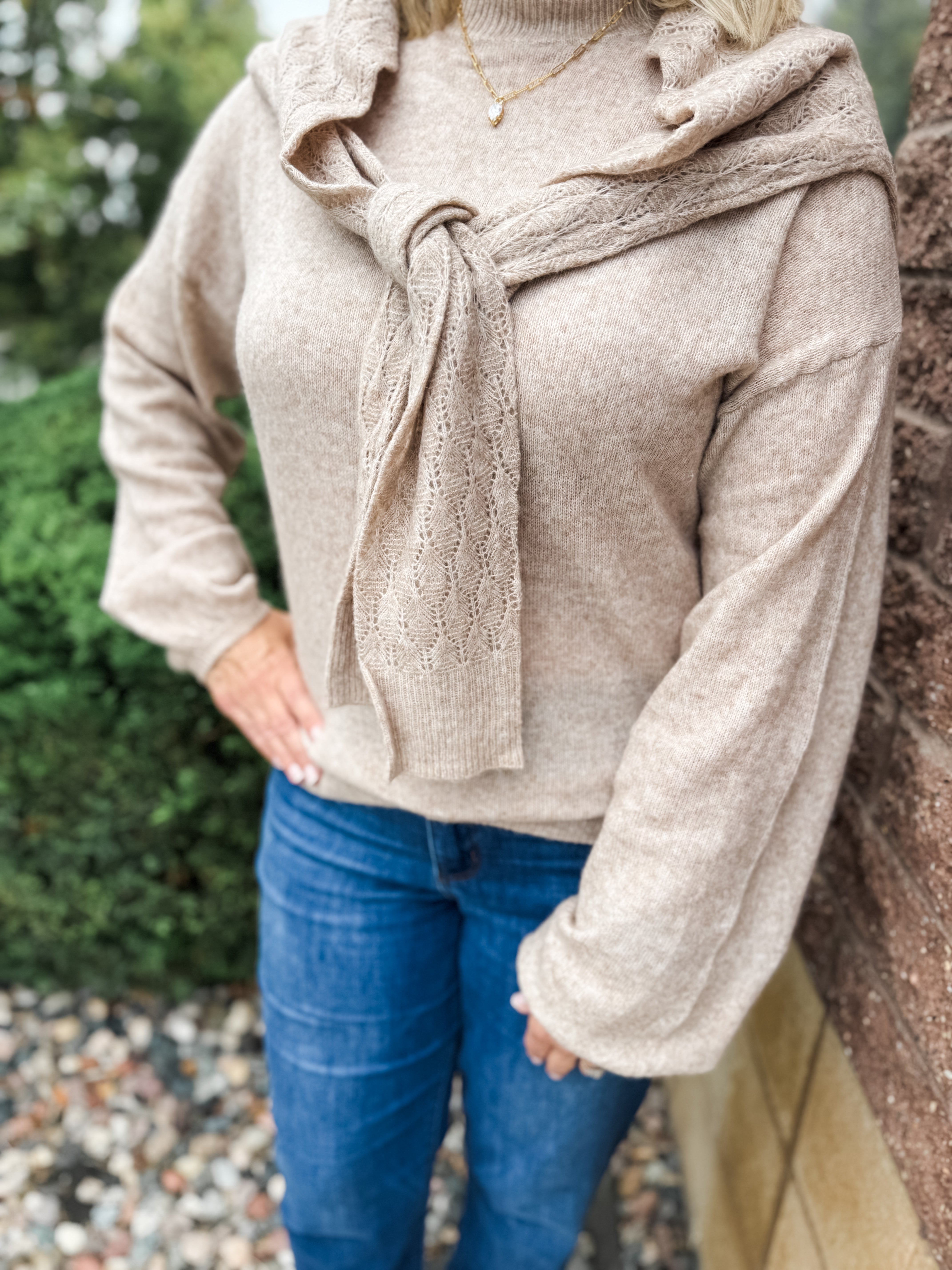 LONG SLEEVE ROUND NECK 2FER POINTELLE SWEATER