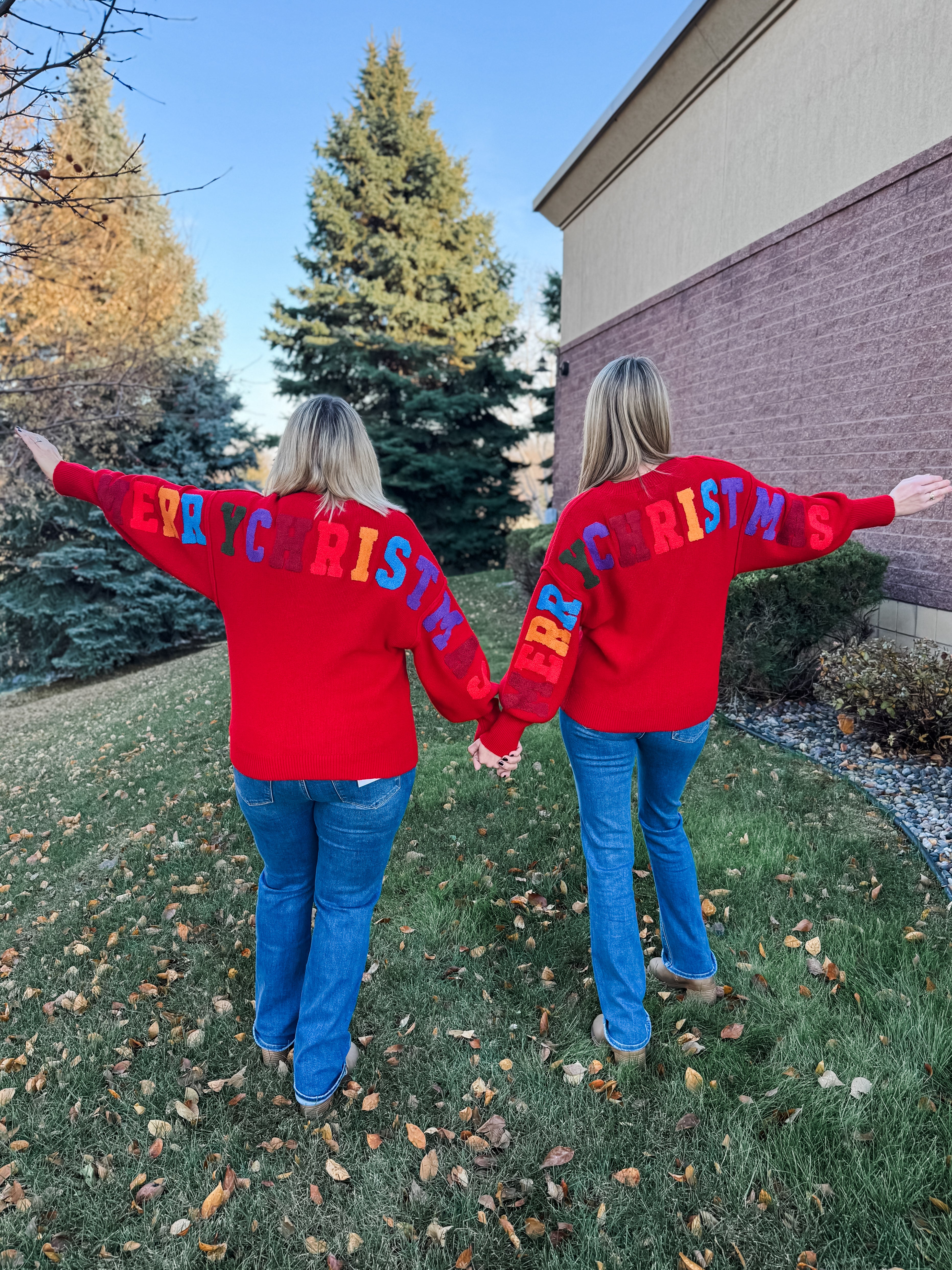 Merry Christmas Multicolor Crewneck Knit Sweater