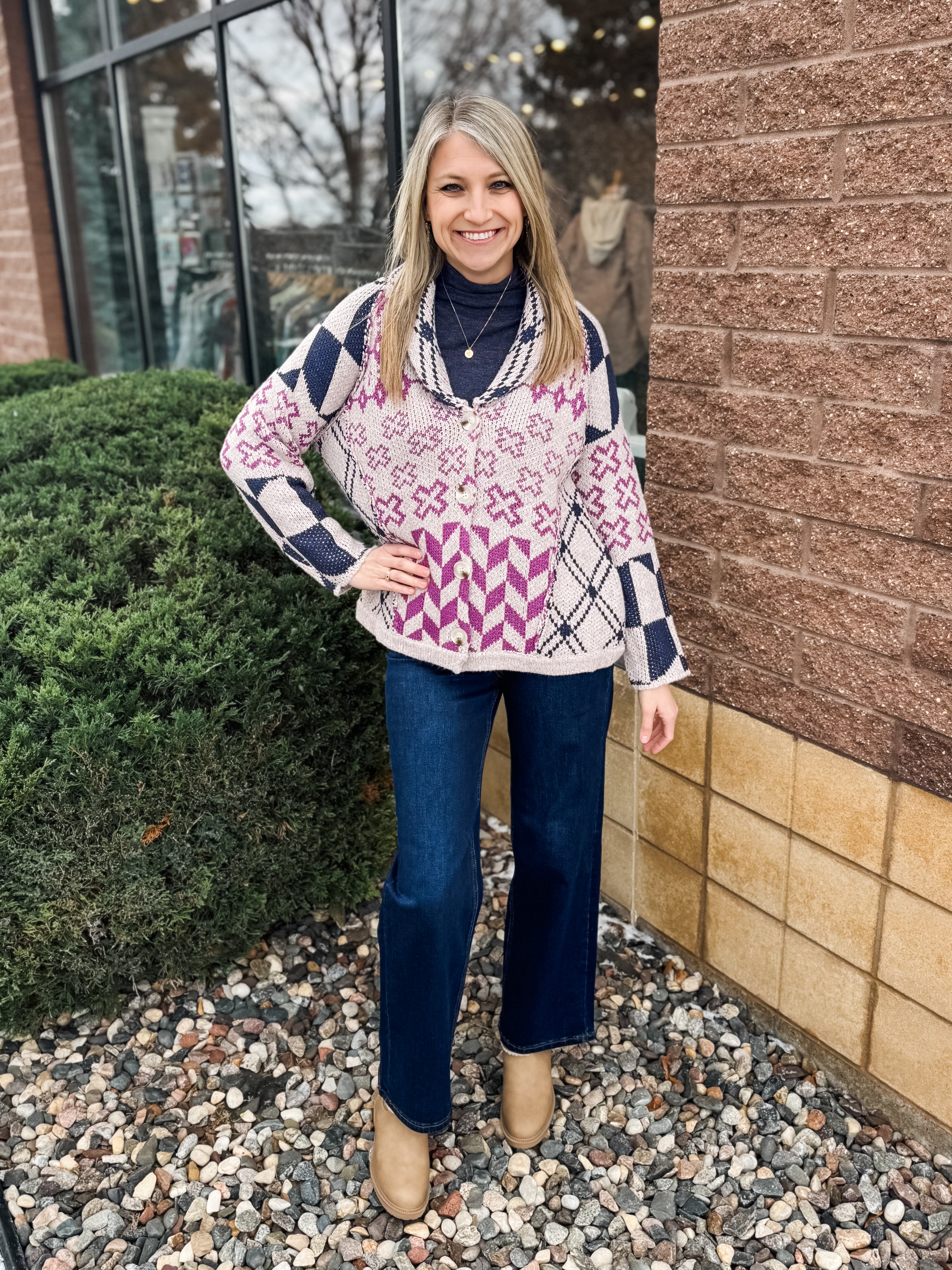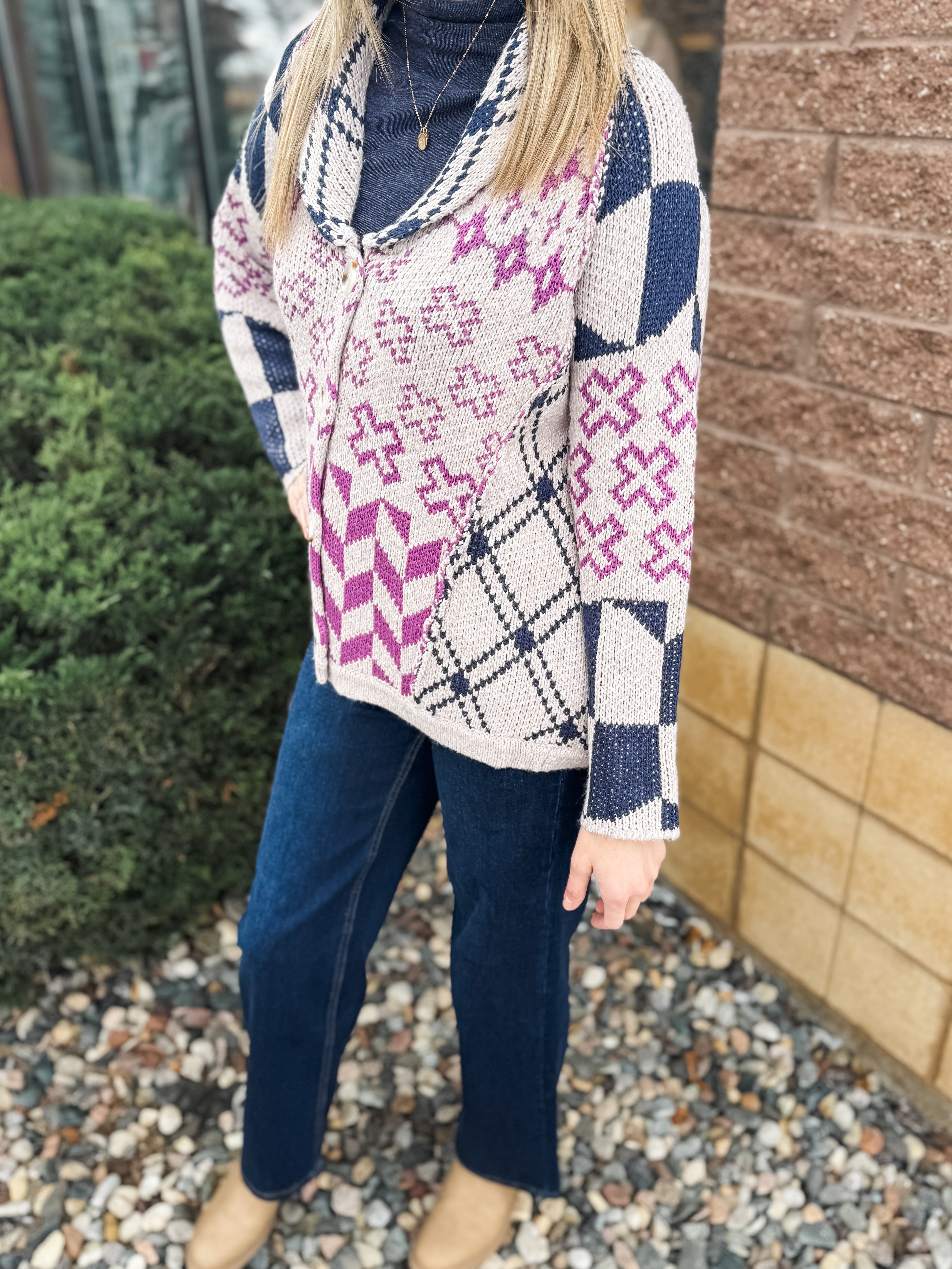 Speckled Yarn Contrast Edge Stitched Button Down Cardigan