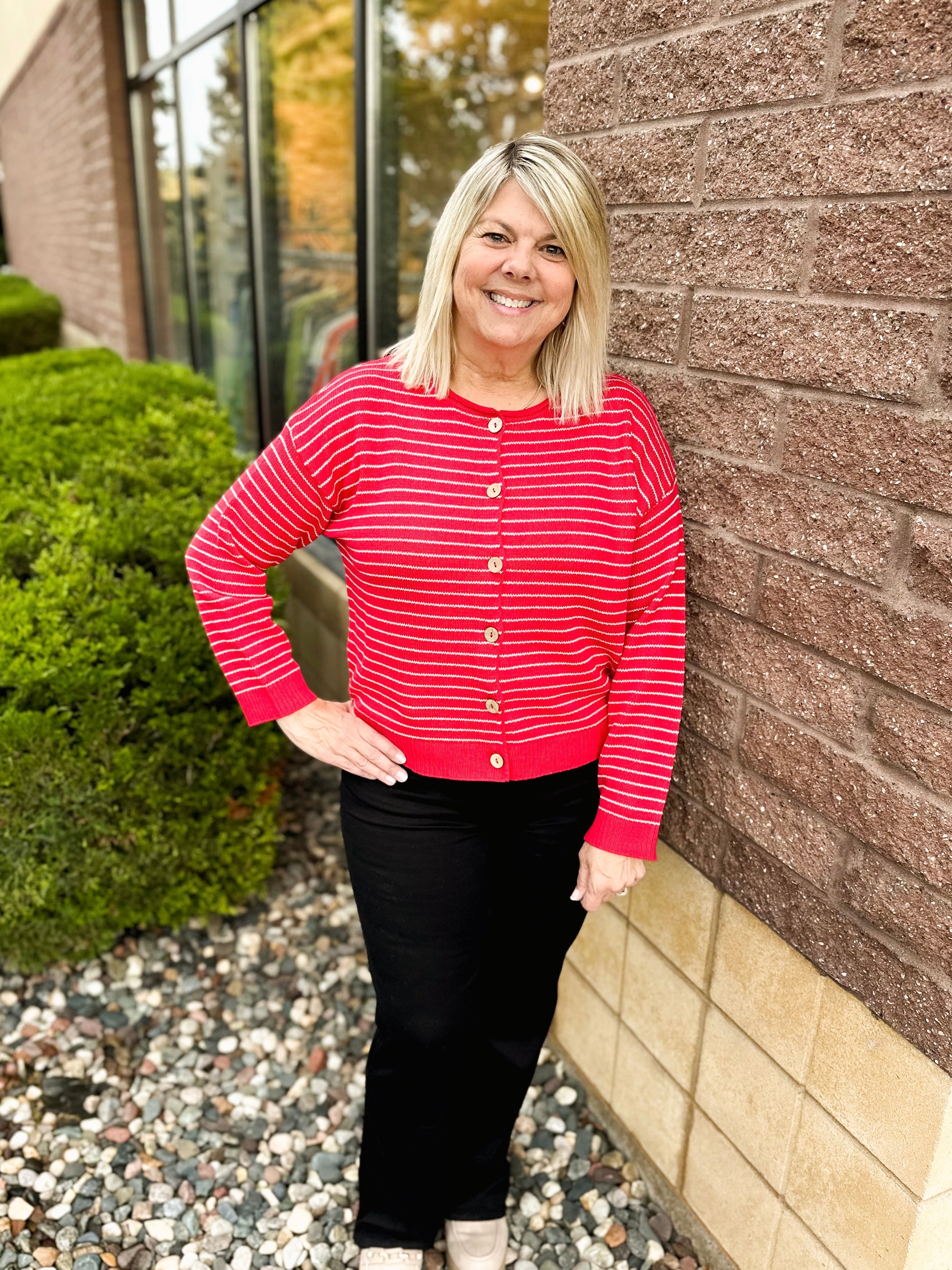 Stripe Button Down Raw Edge Knit Cardigan