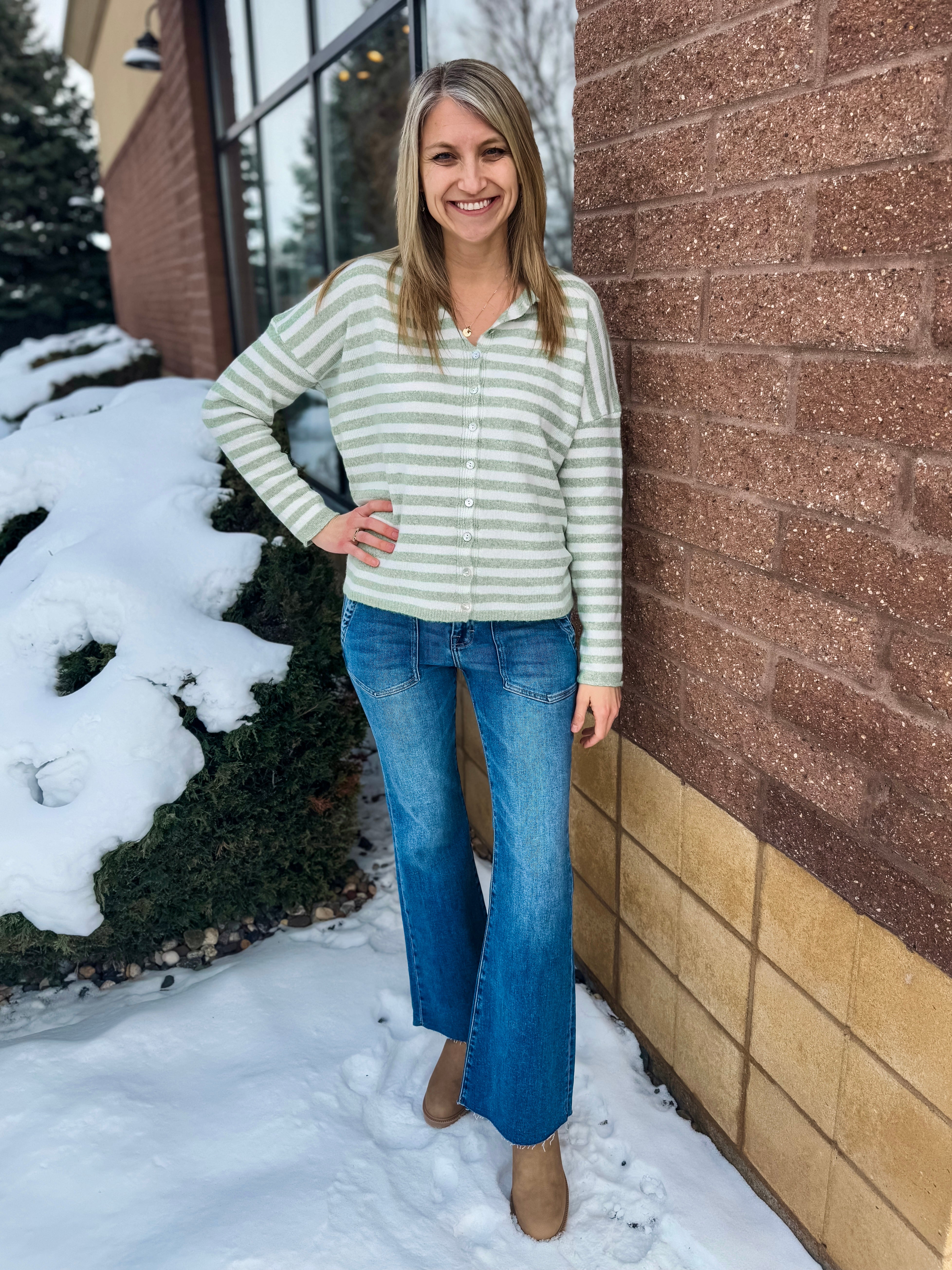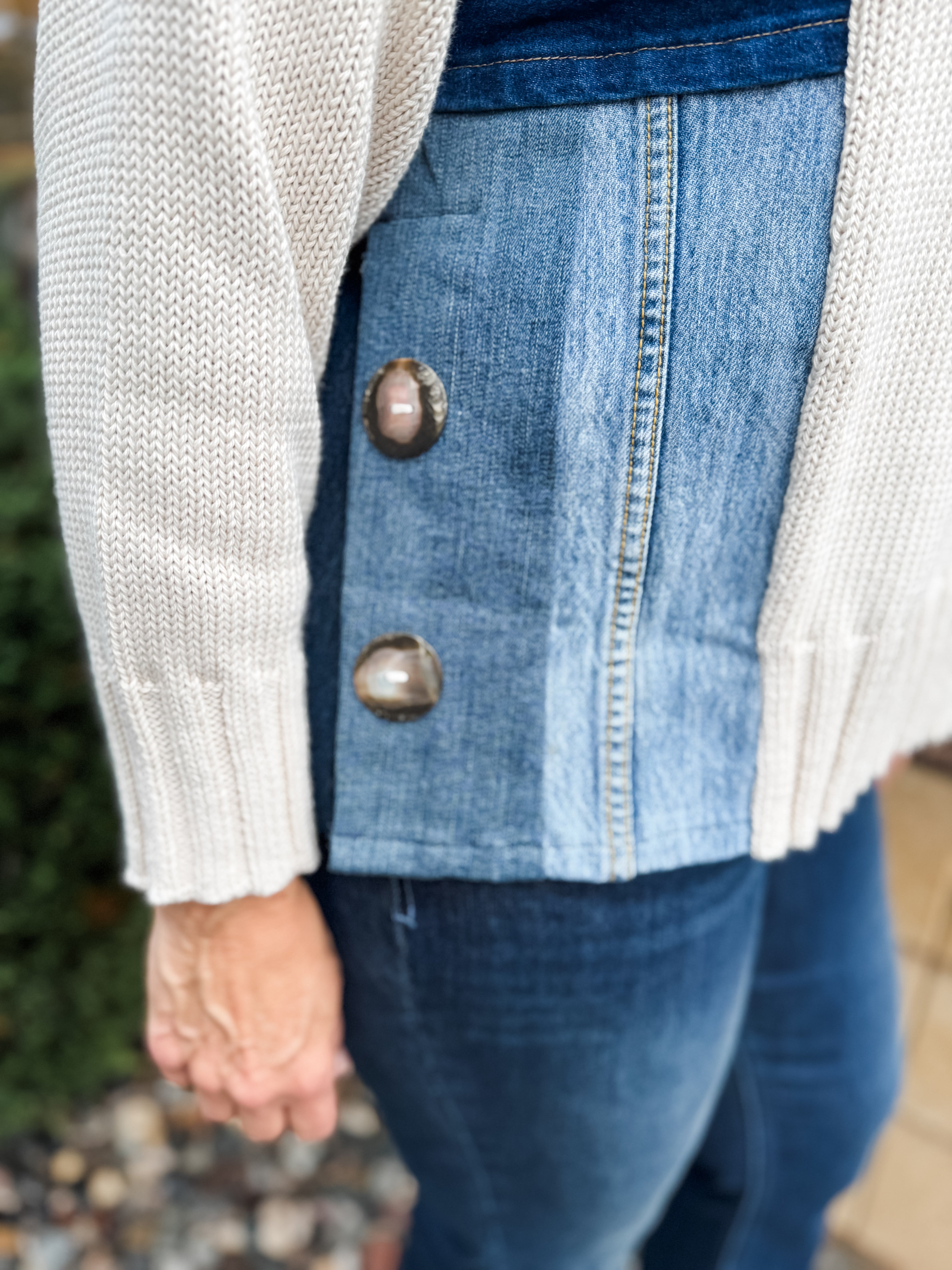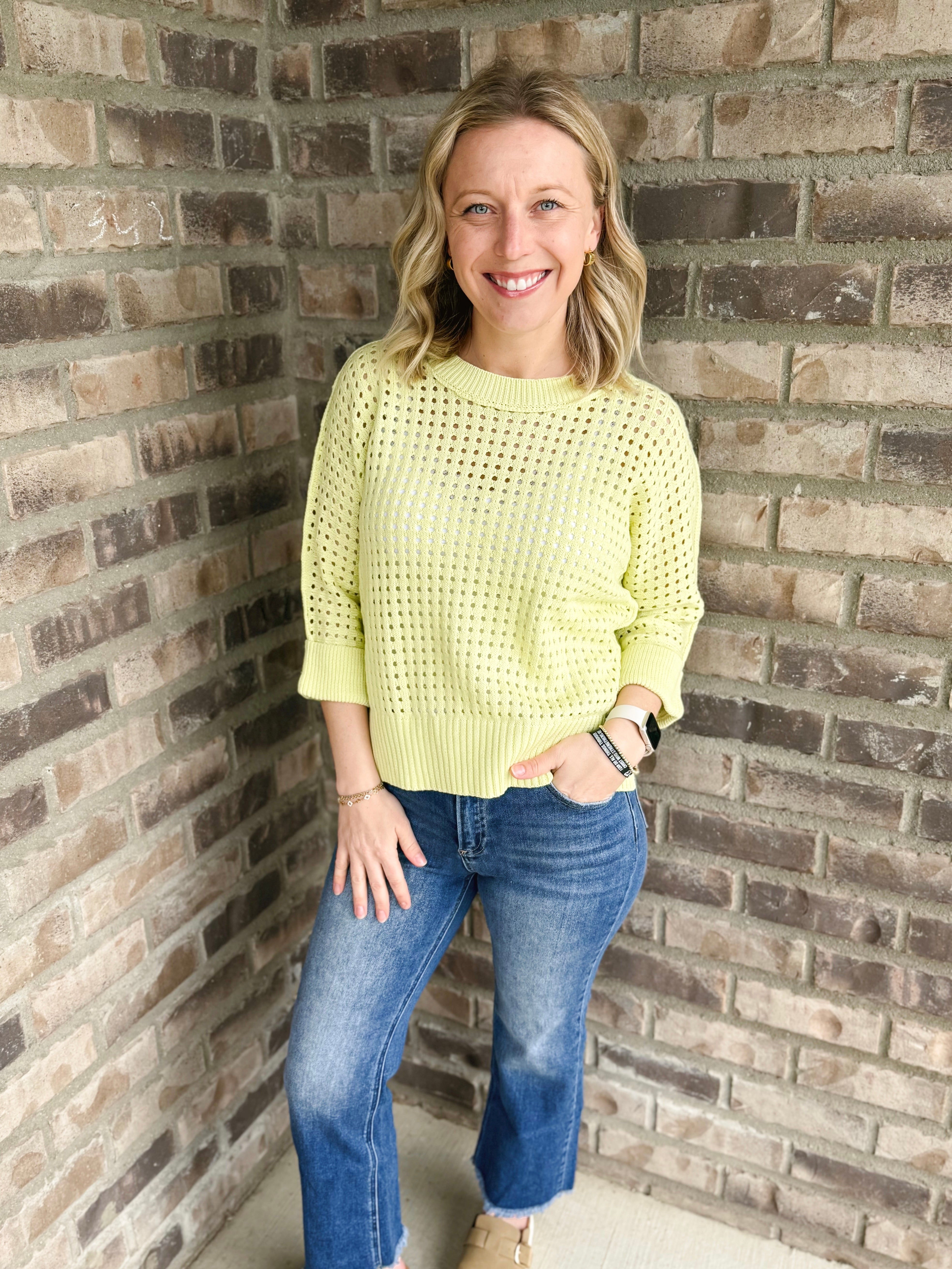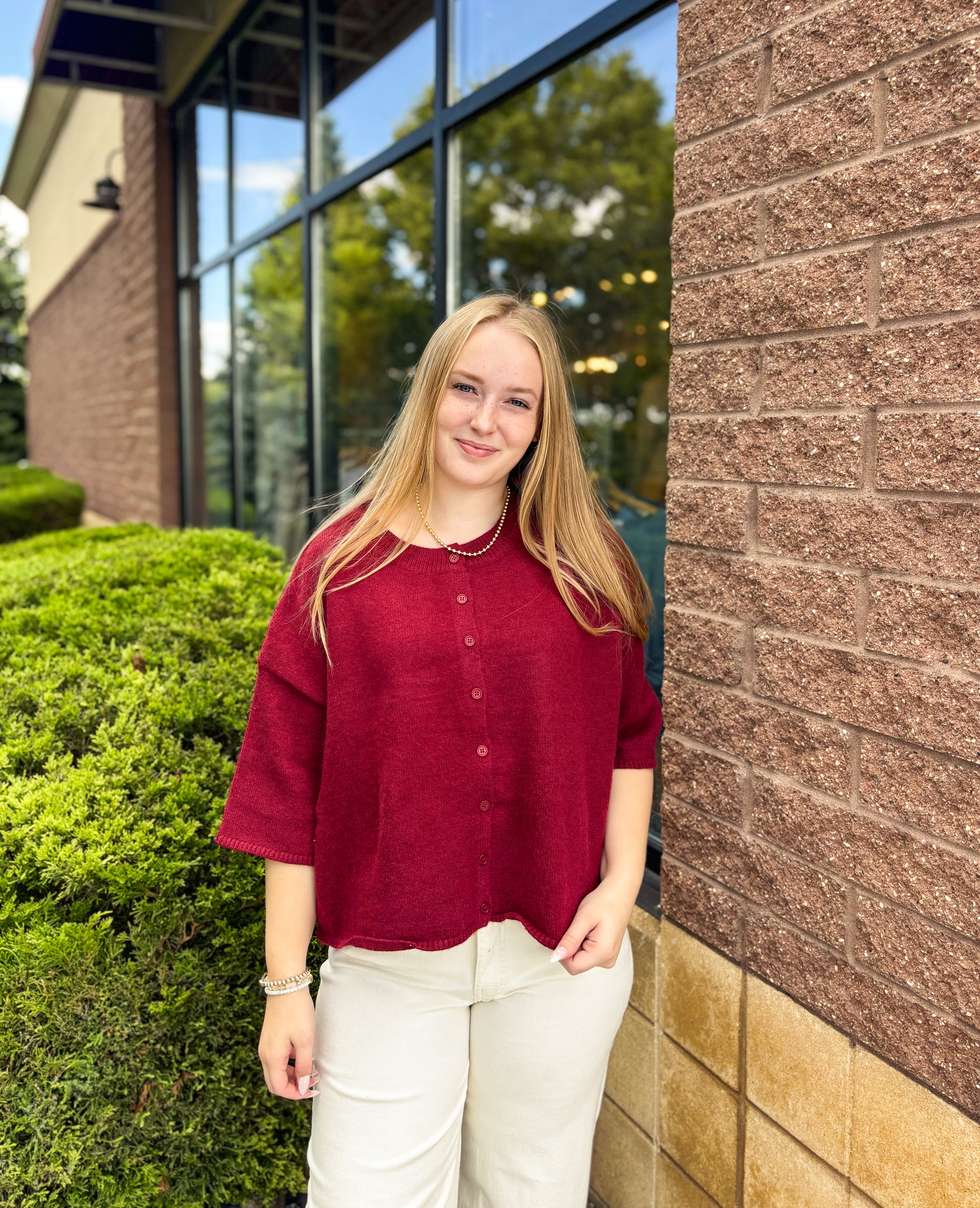 Solid 3/4 Wide Sleeve Knit Button Sweater