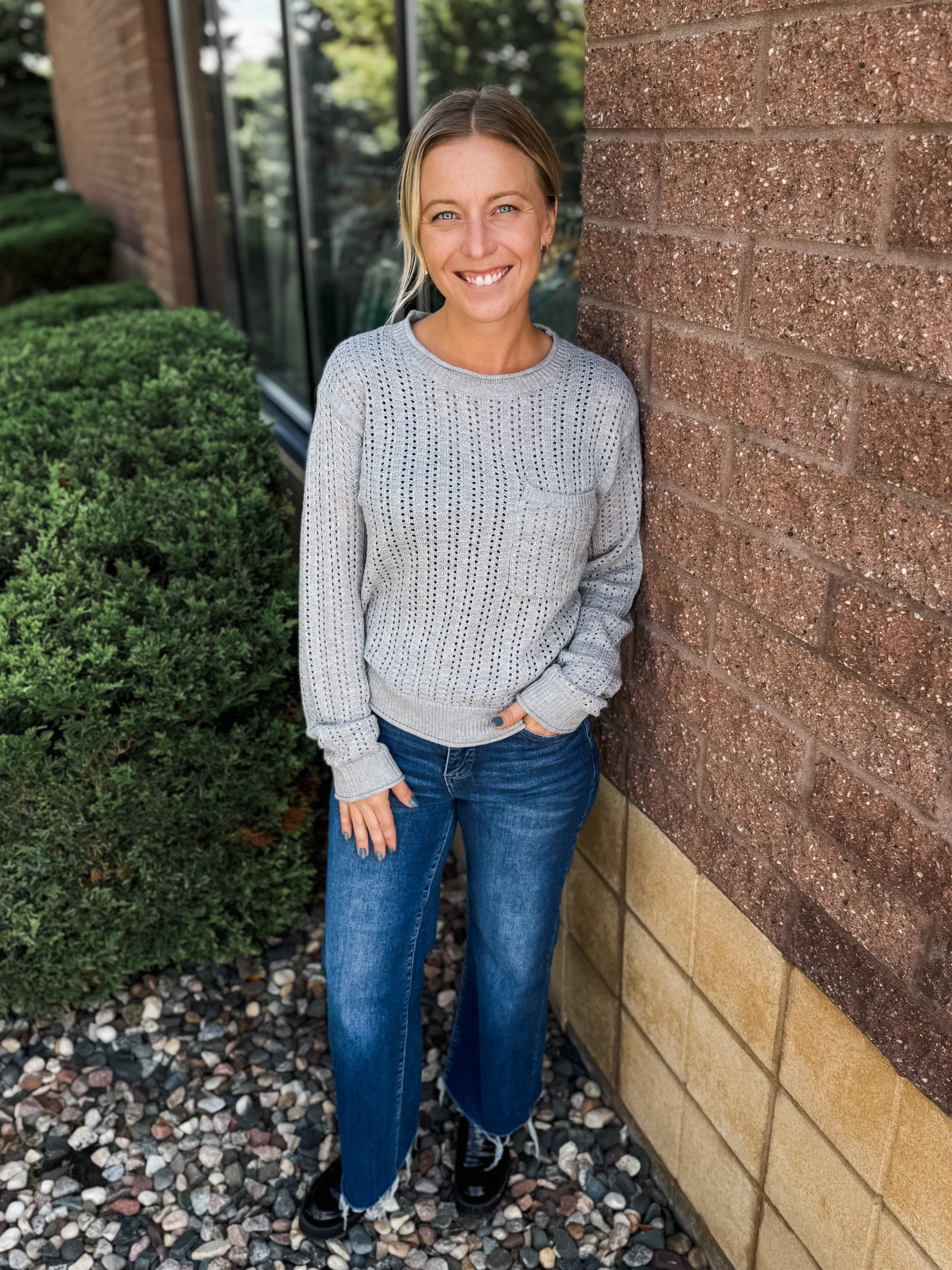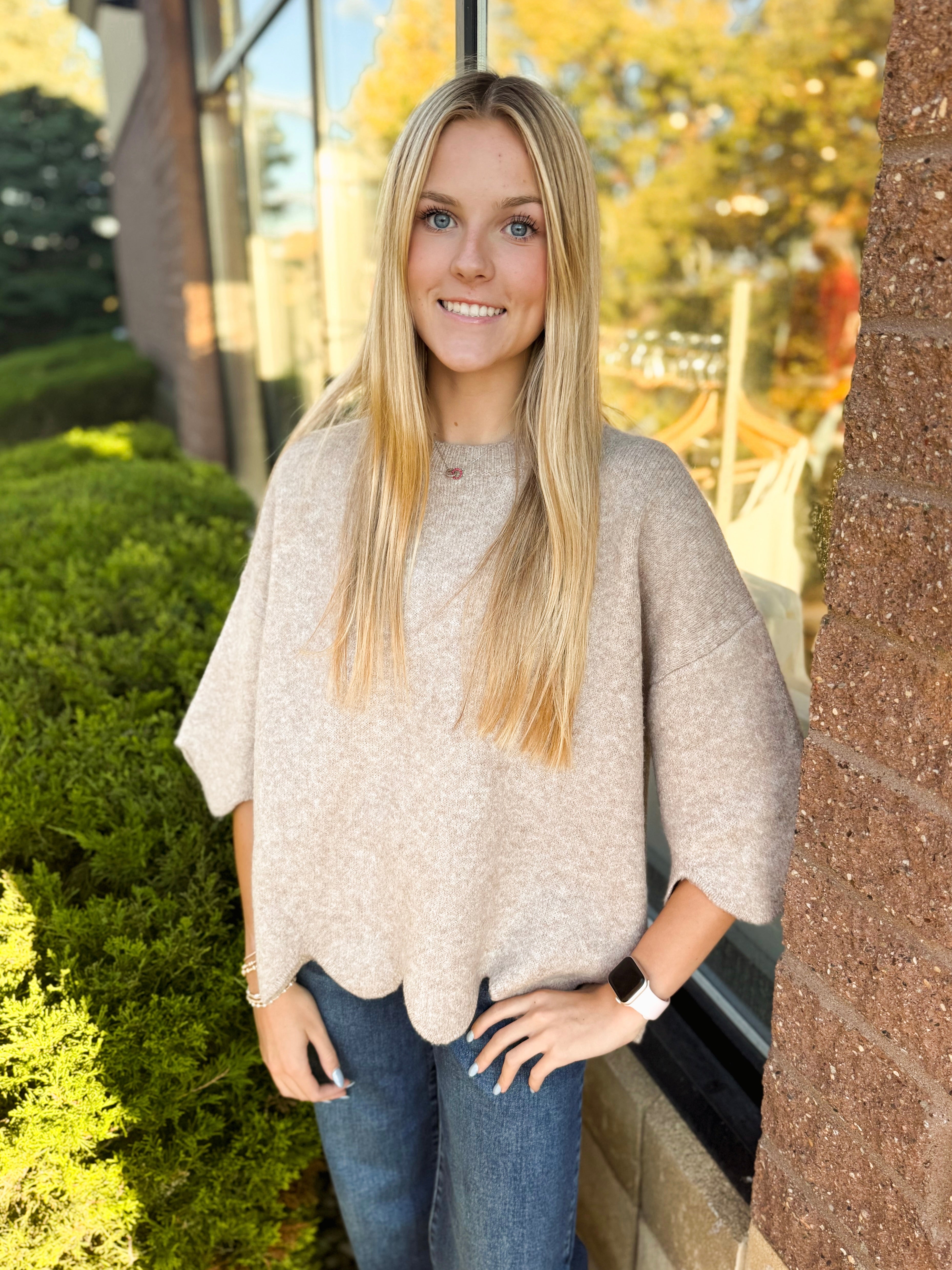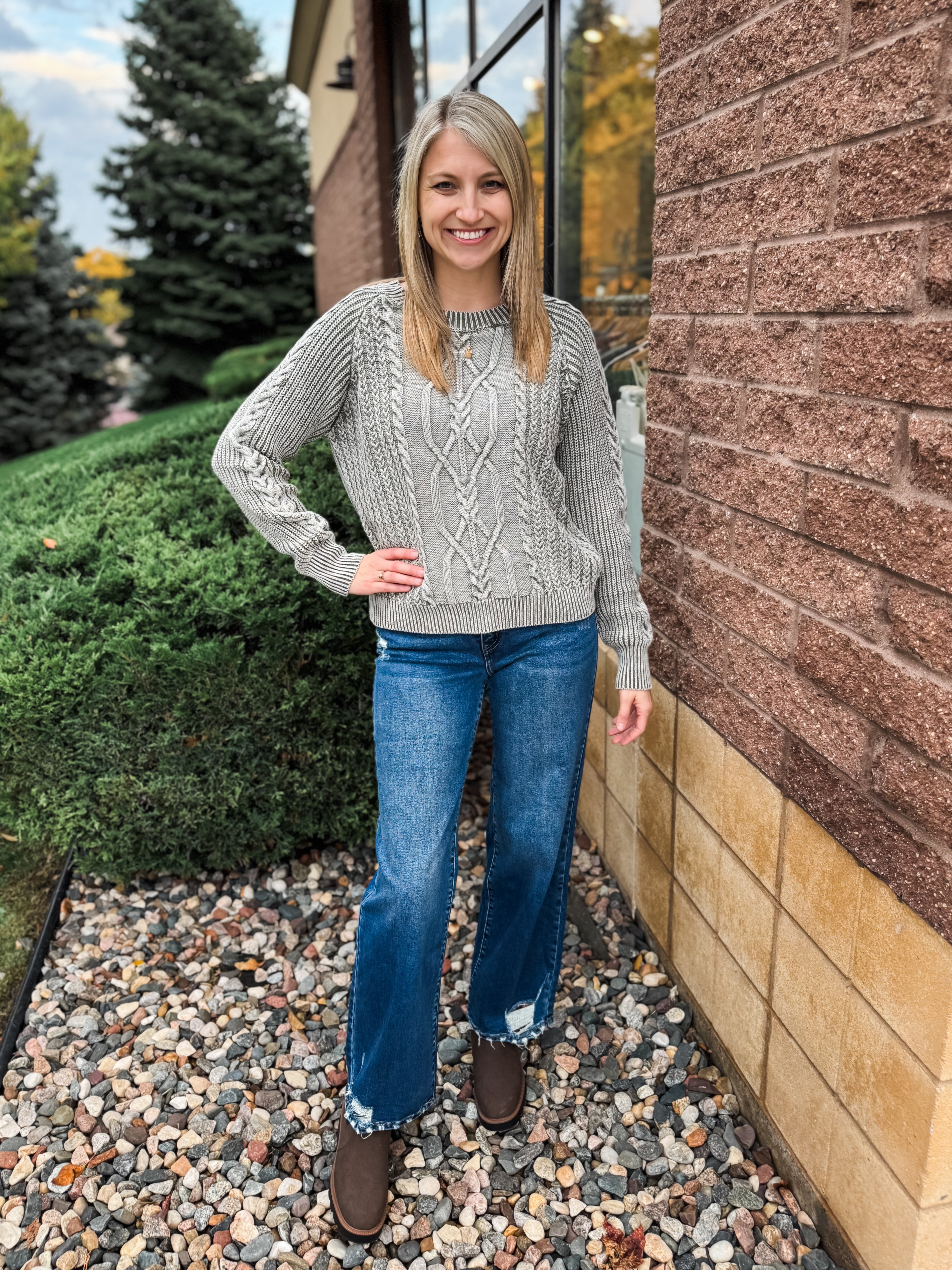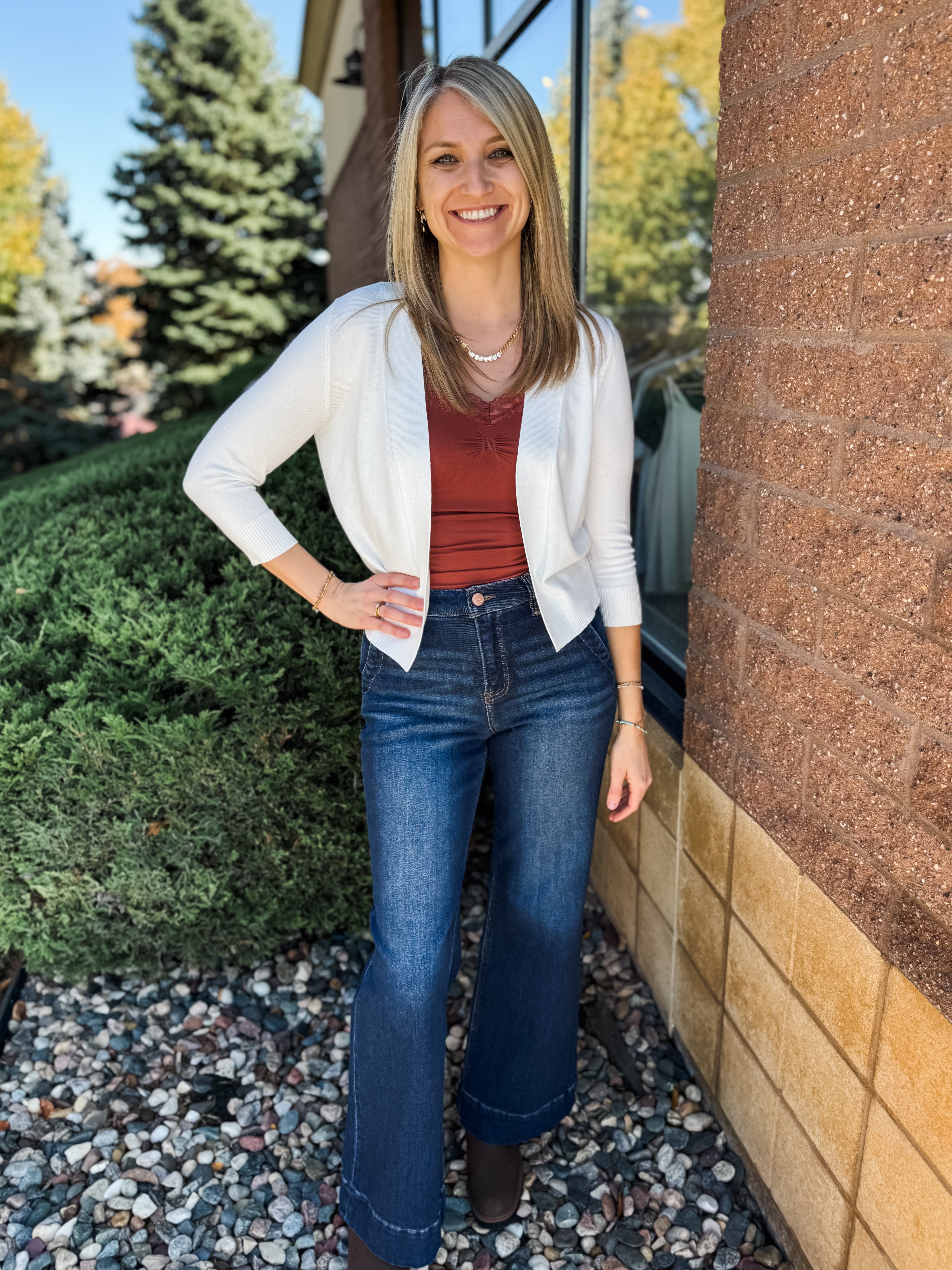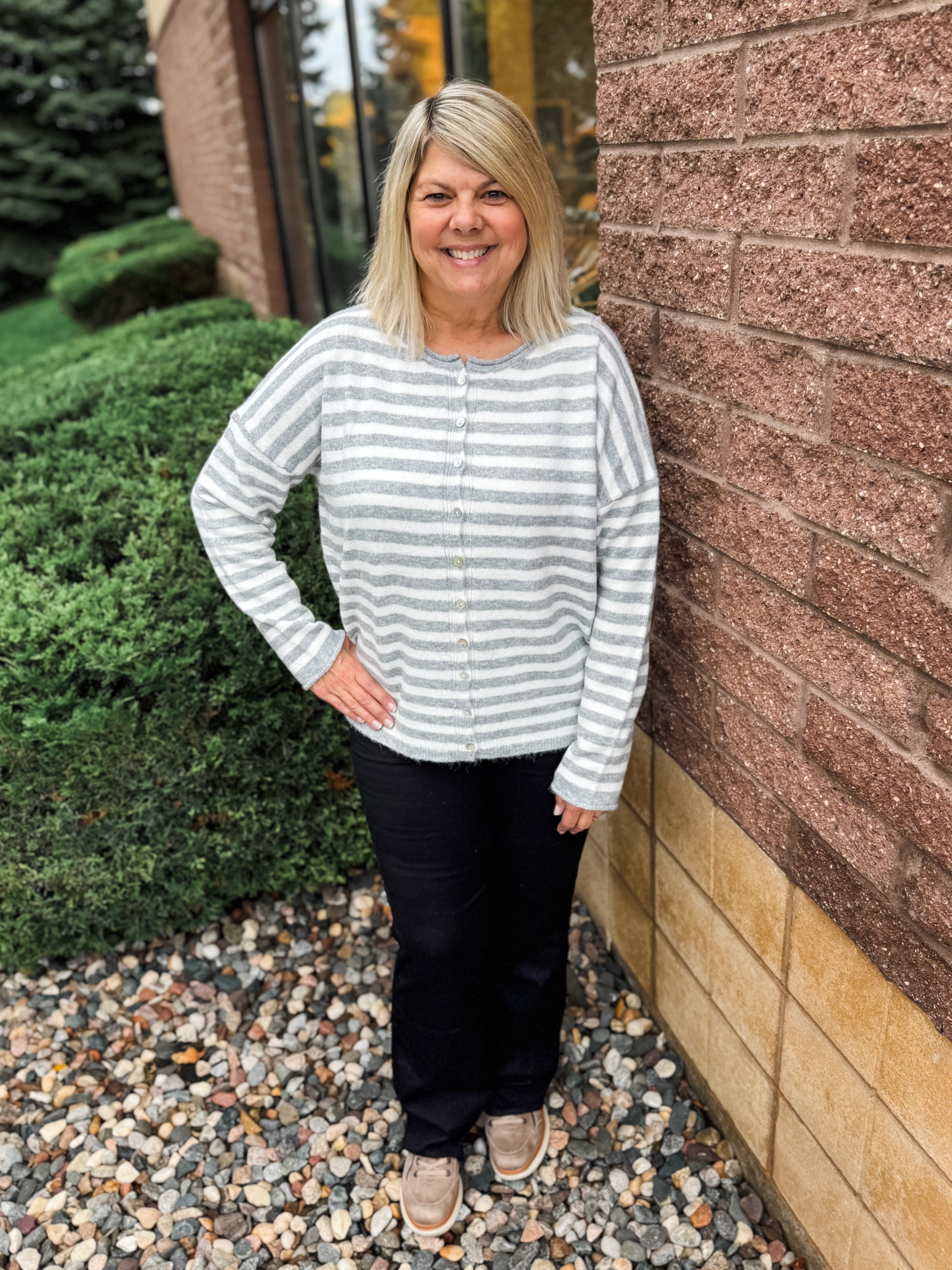 Solid 3/4 Wide Sleeve Knit Button Sweater