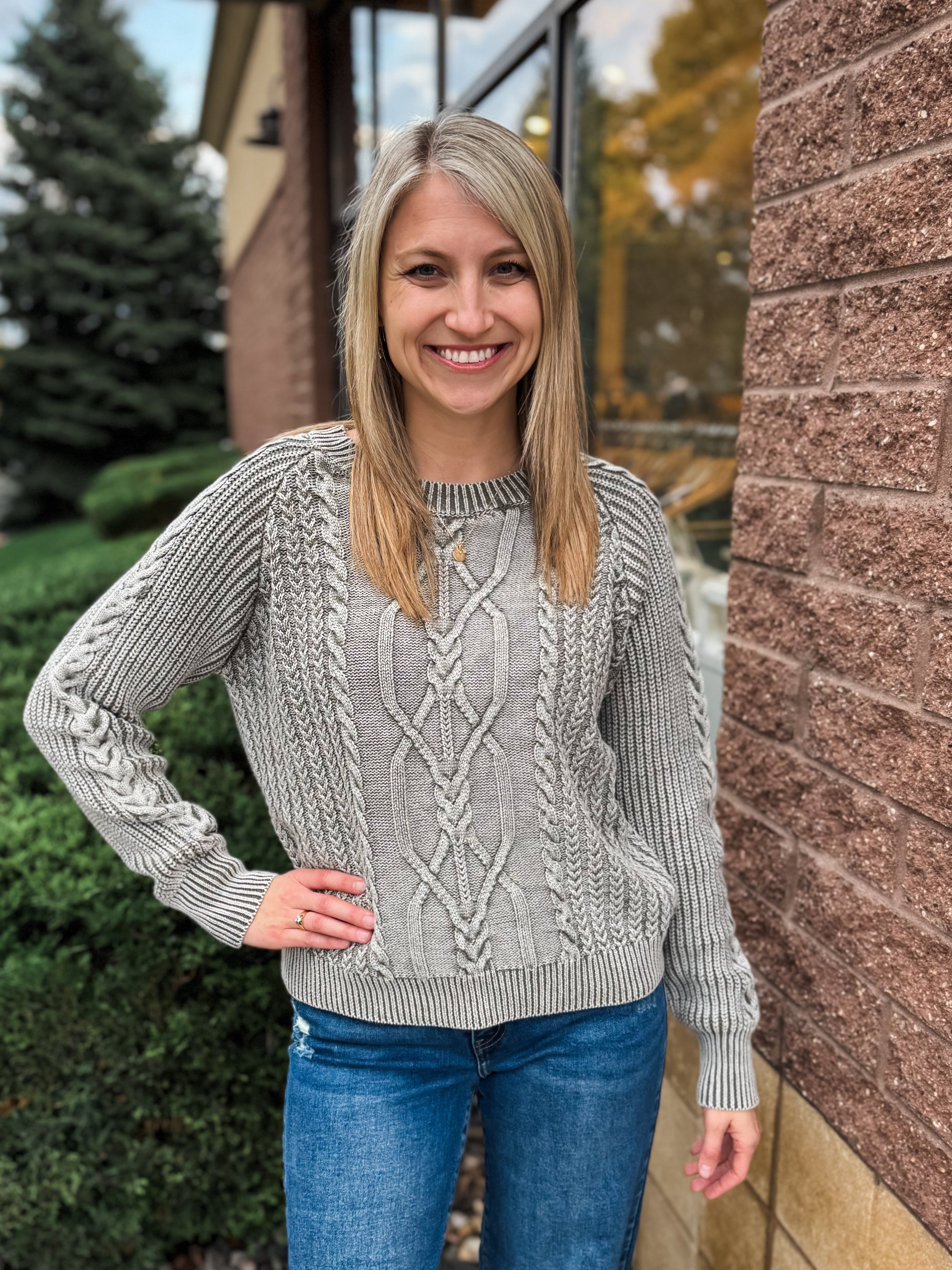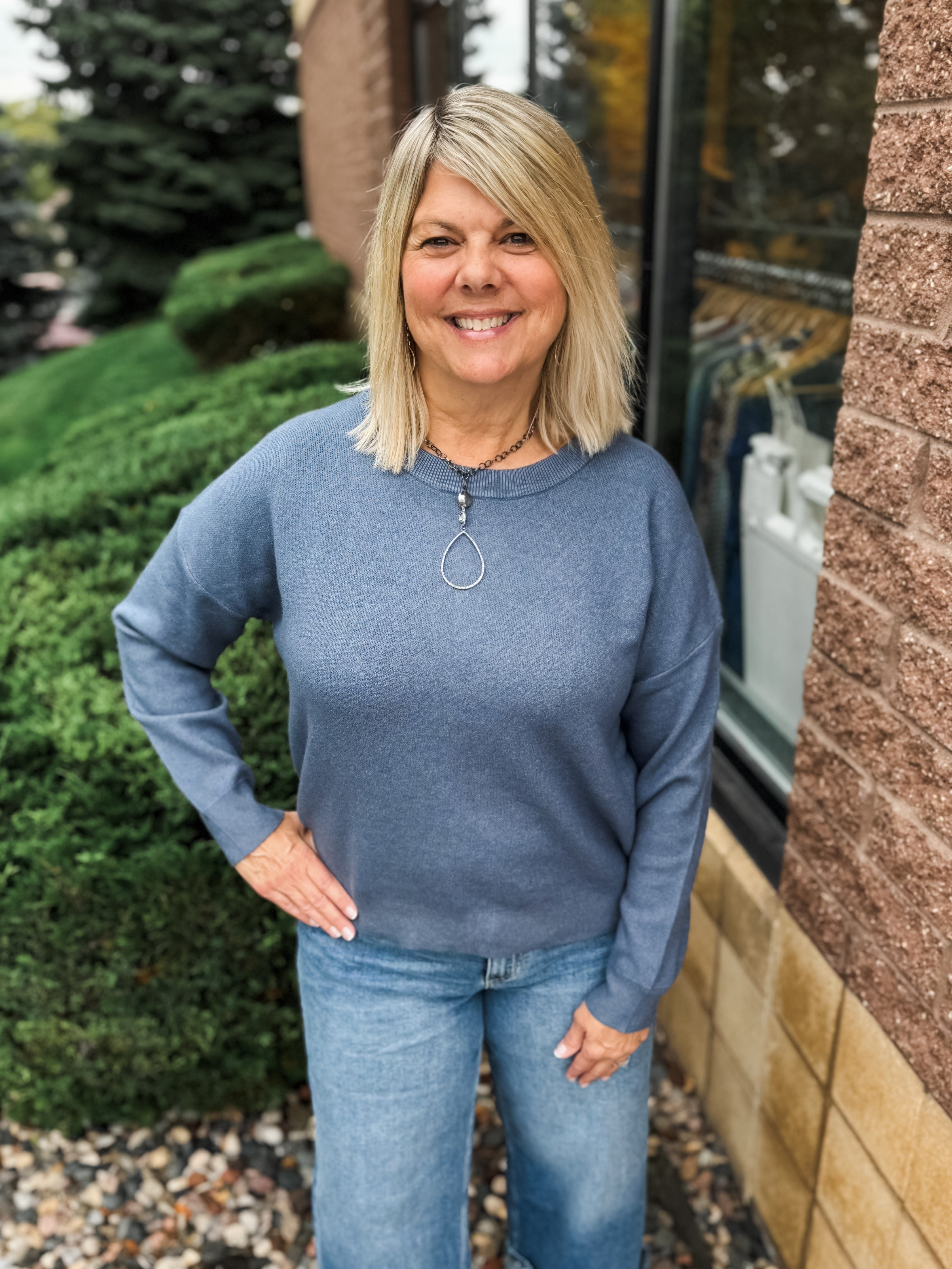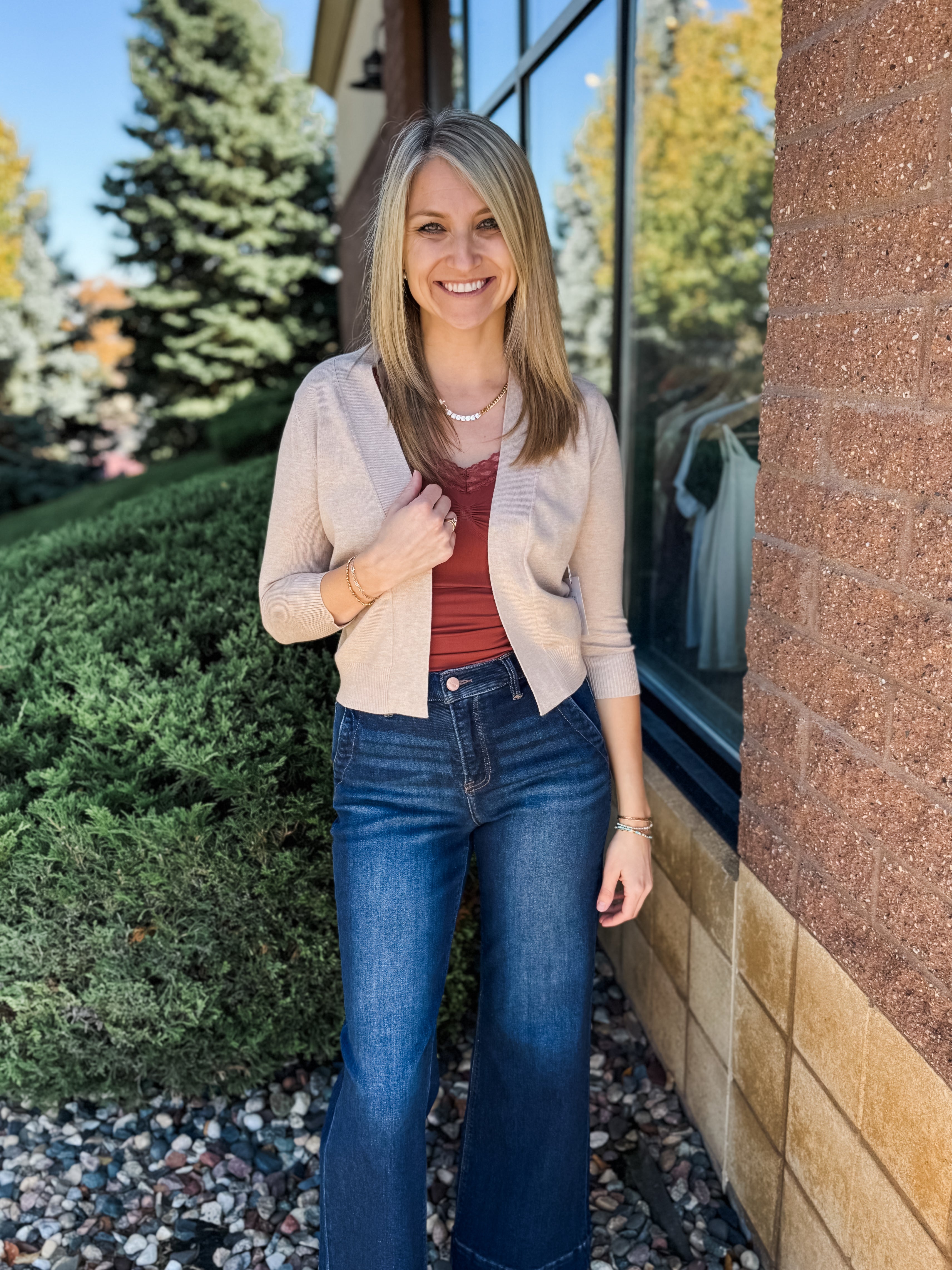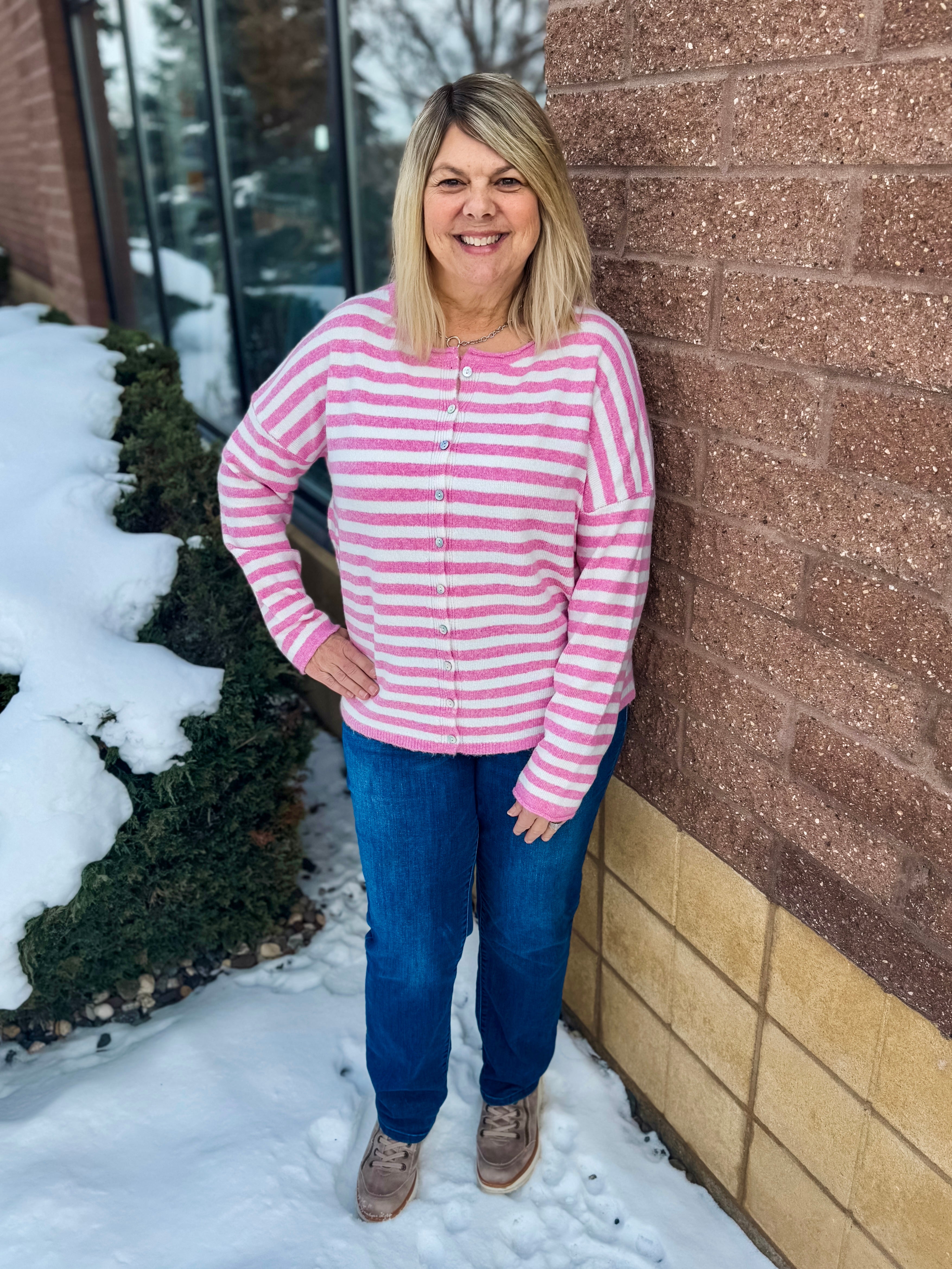 Solid 3/4 Wide Sleeve Knit Button Sweater