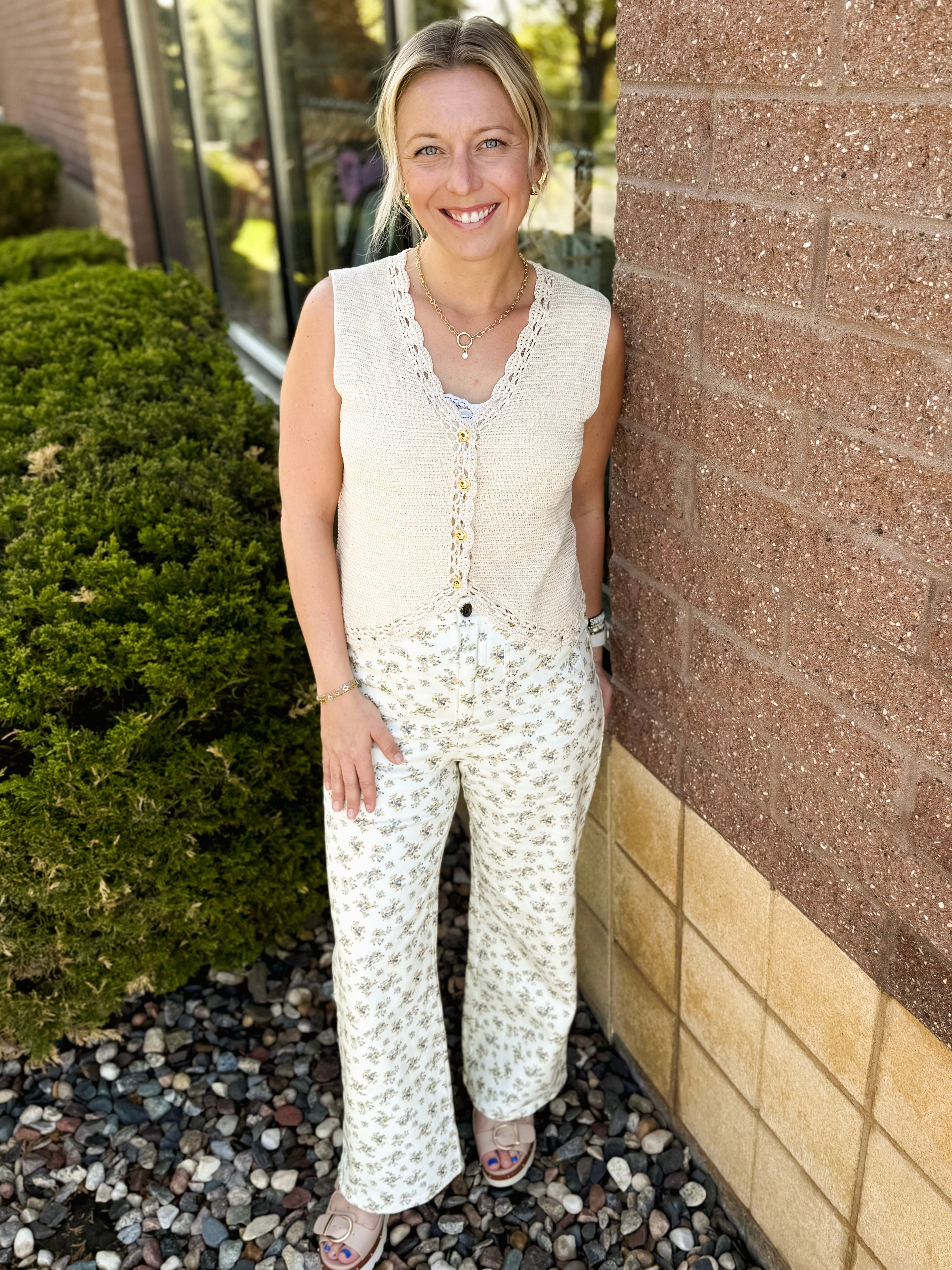 Crochet Trimmed Button Down Sweater Vest