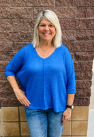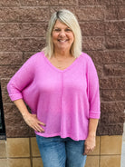 3/4 Sleeve V-Neck Hi-Low Hem Jacquard Sweater