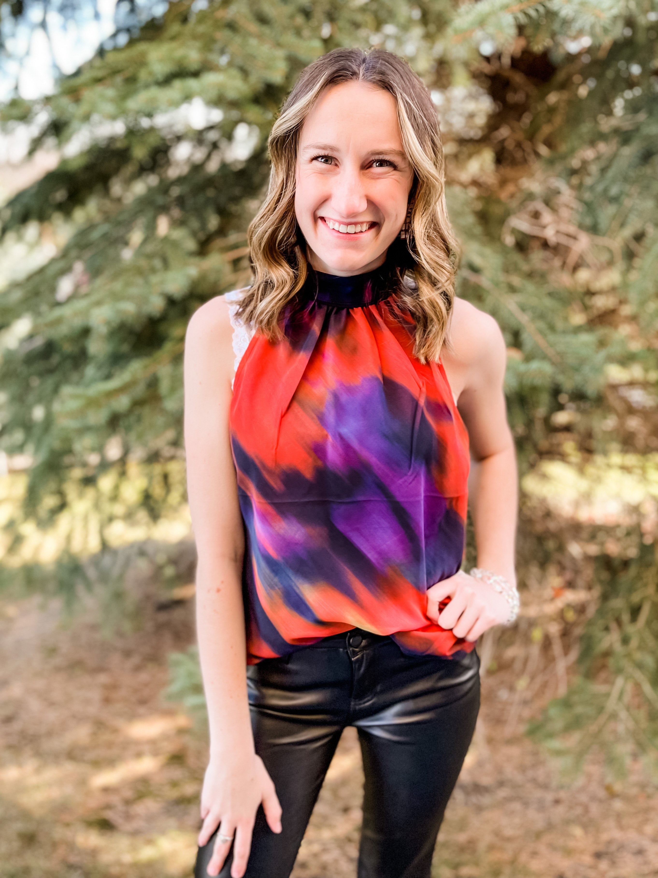 Abstract Brushstroke Double Layer Sleeveless Halter - HQ