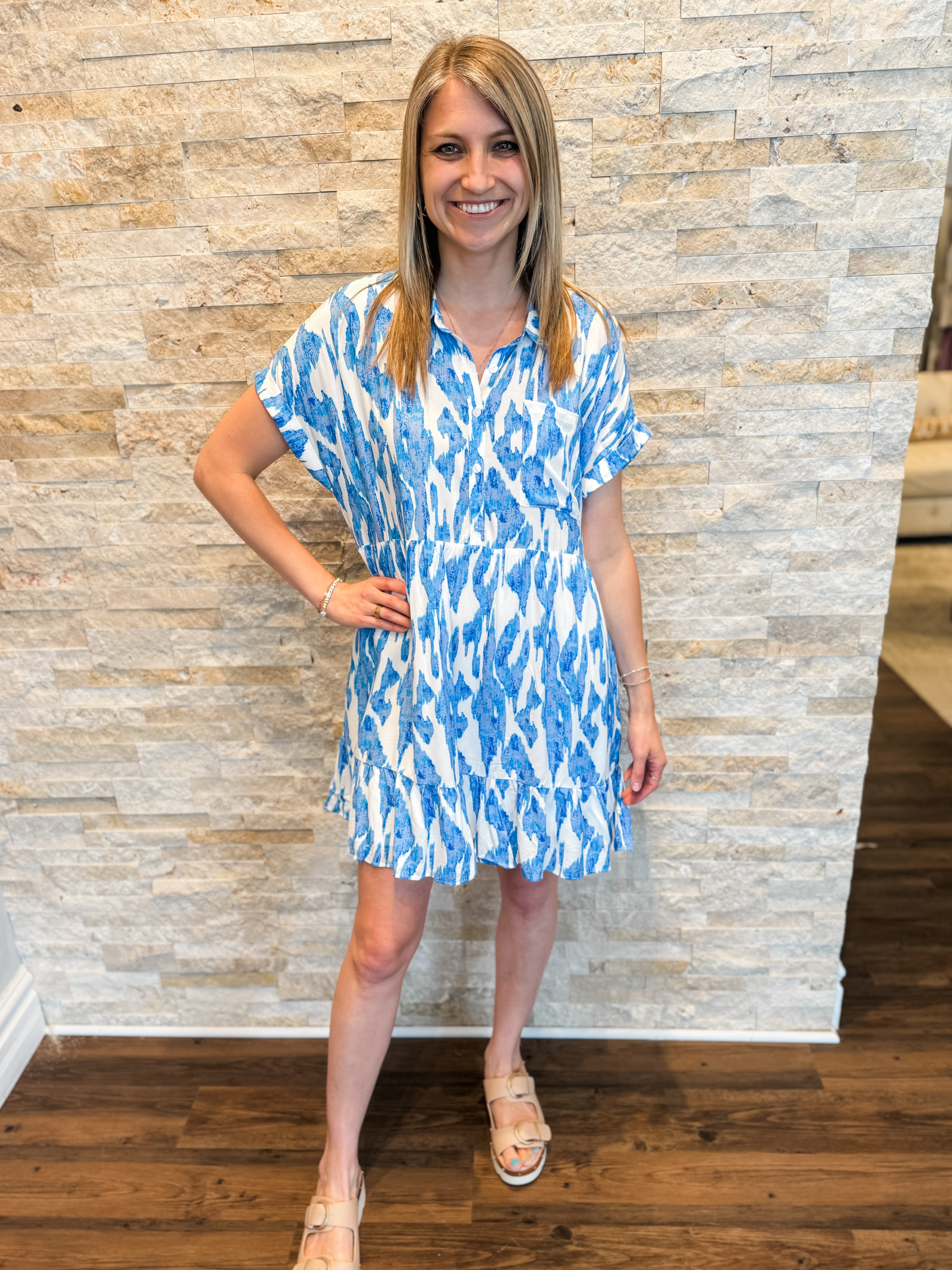 ABSTRACT PRINTED DOLMAN SLEEVE BABYDOLL DRESS