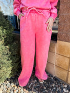 ACID WASH FLEECE PALAZZO SWEATPANTS WITH POCKETS