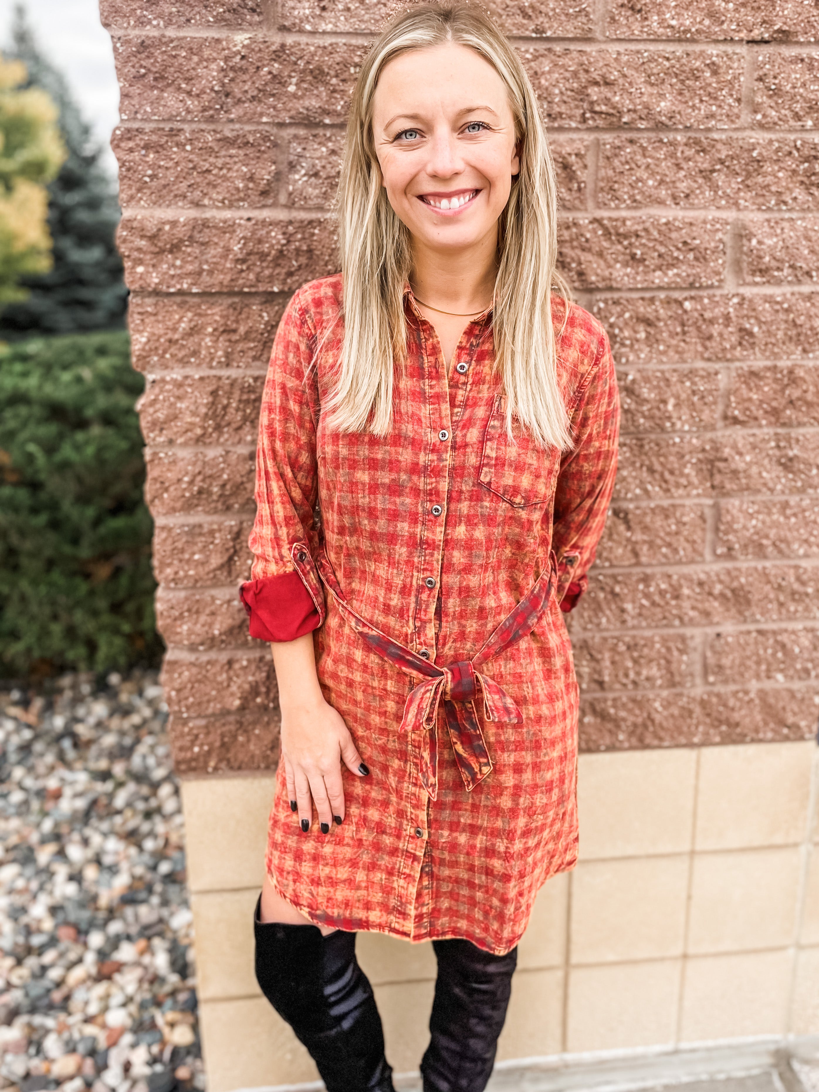 Acid Wash Plaid Dress