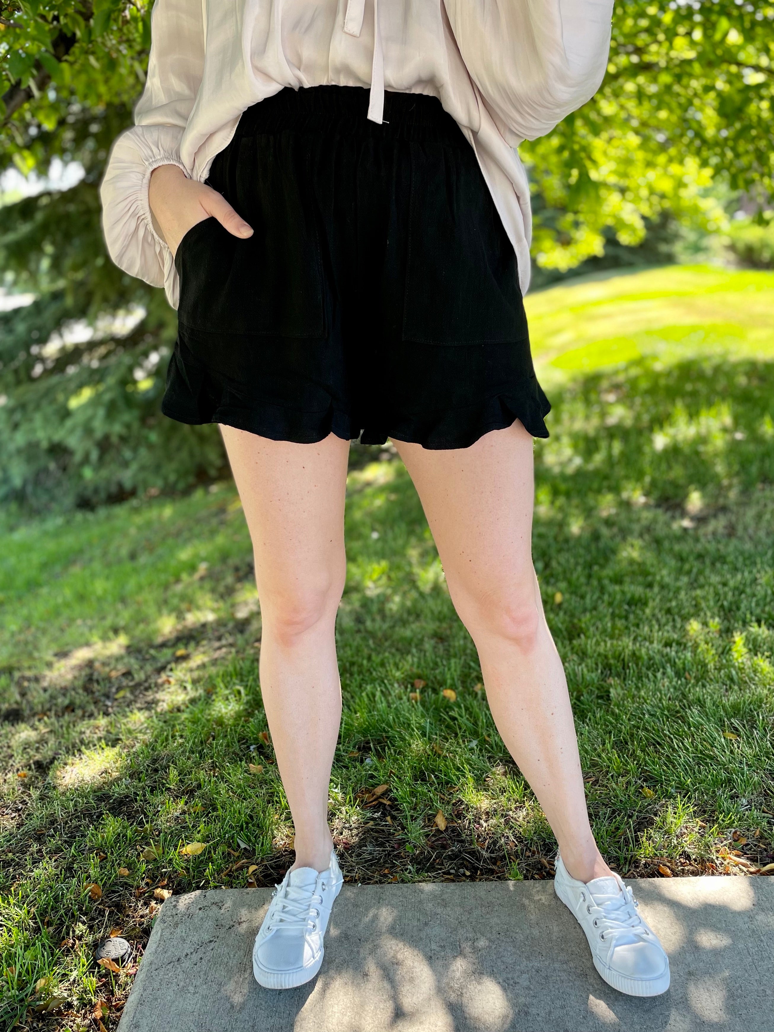 Allie Rose Linen Ruffle Shorts With Elastic Waist