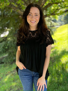 Allie Rose Romantic Crochet Lace Yoke Top
