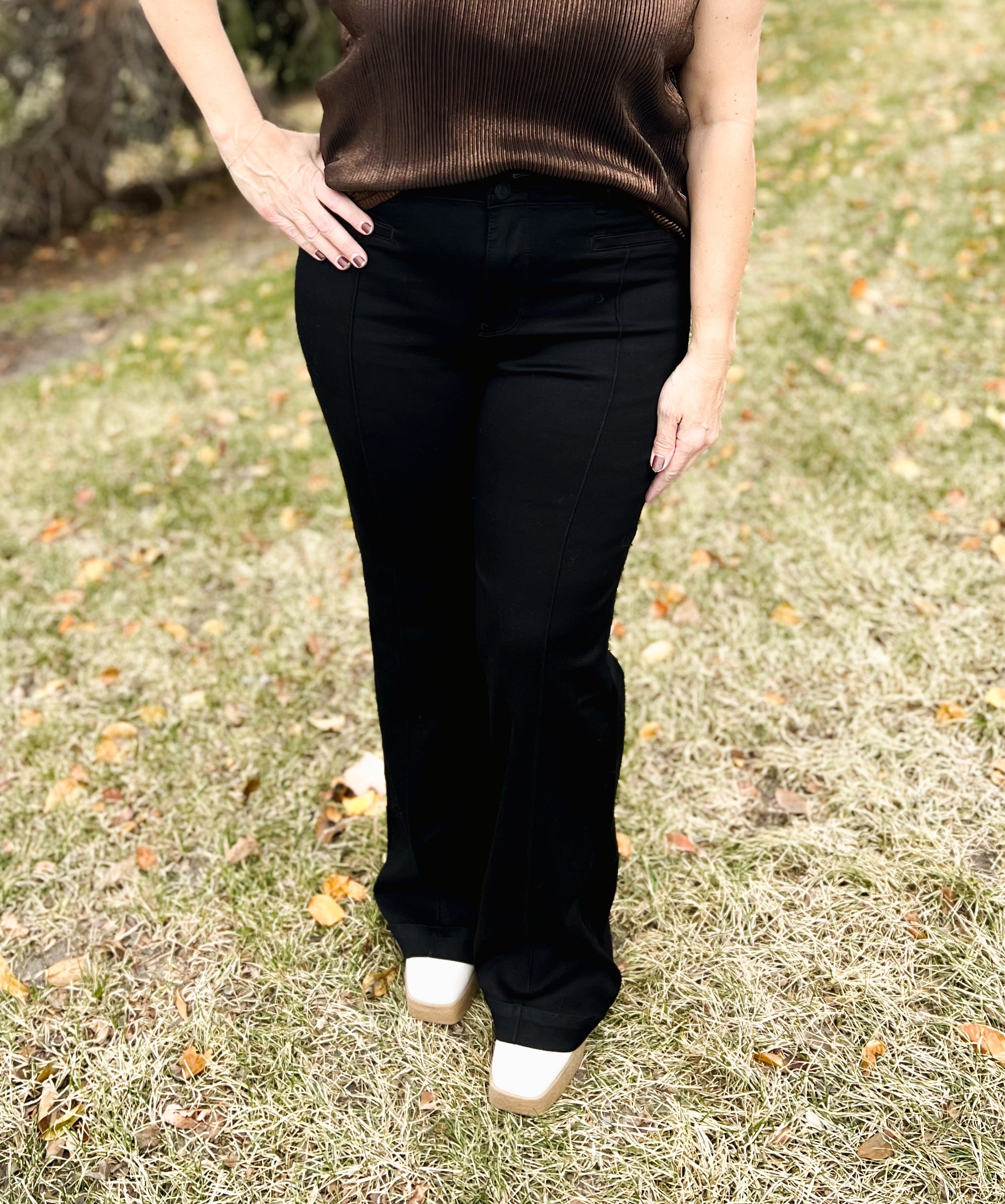 ANA HIGH RISE FLARE FRONT WELT POCKET WITH DOUBLE BUTTON