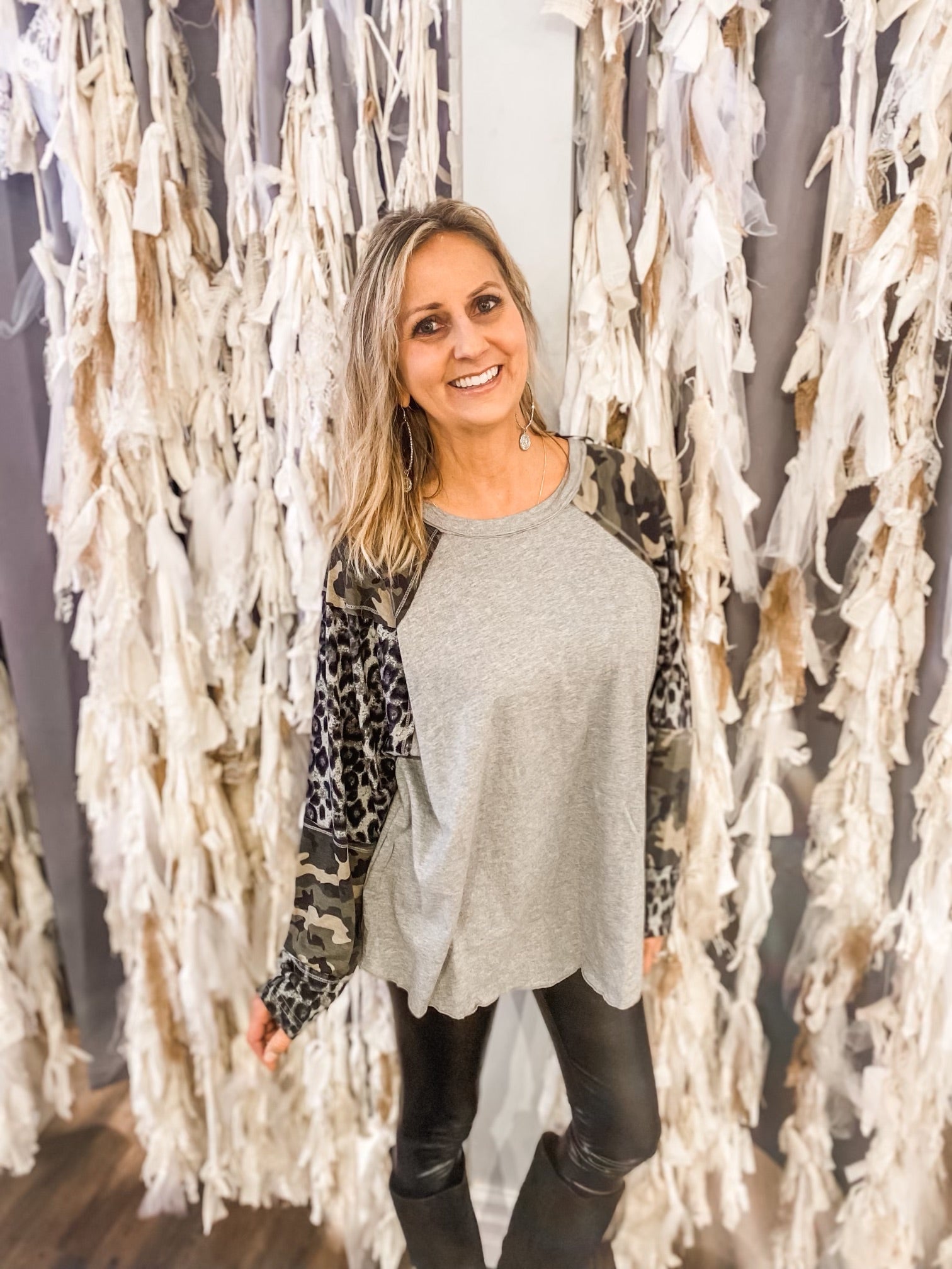 Animal and Camouflage Knit Mixed Top