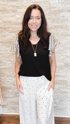 Ariella V Neck Tee W/Printed Flounce Sleeve
