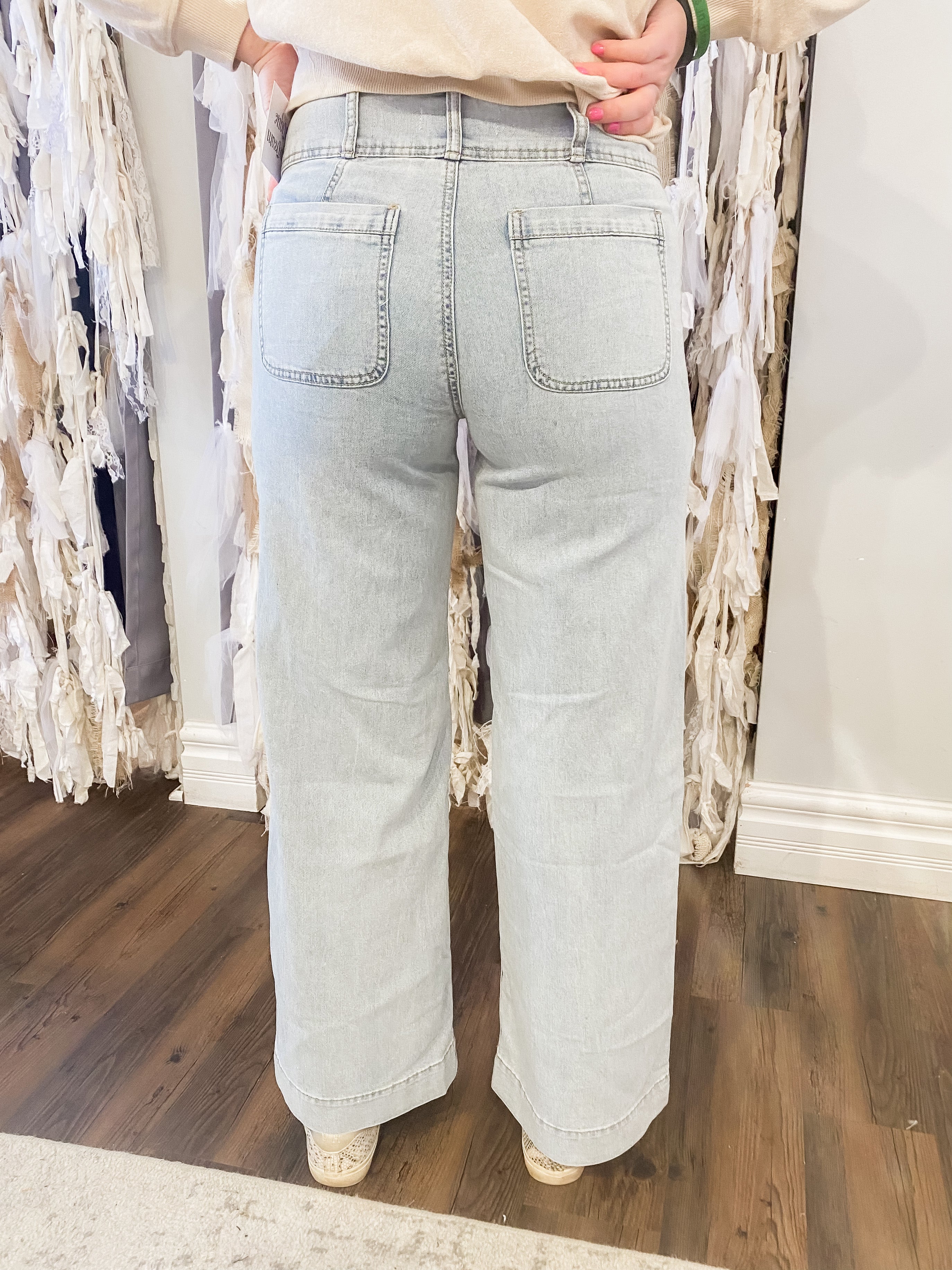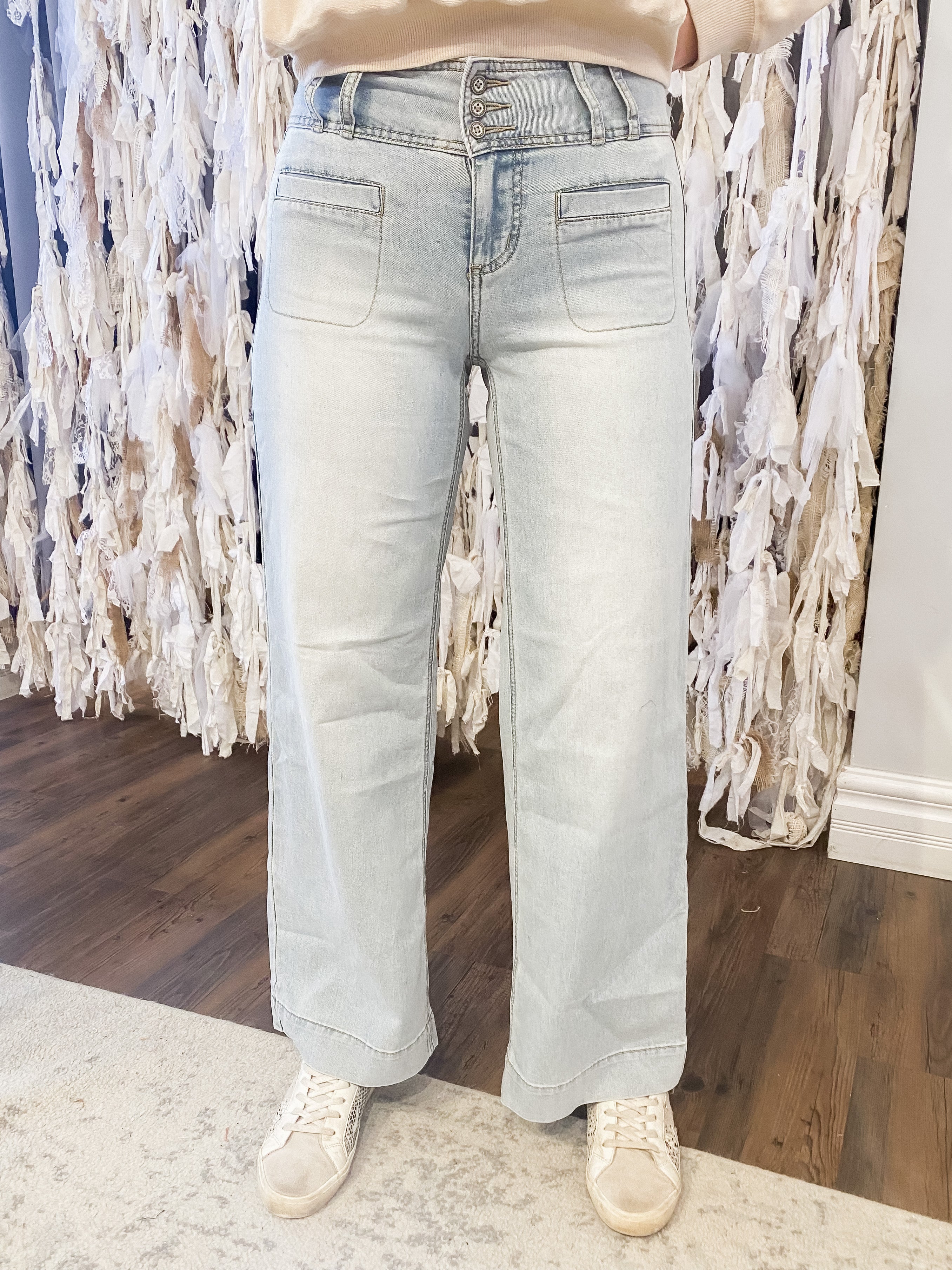 Audrey 5 Pocket Wide Leg Jean with Large Waistband - HQ