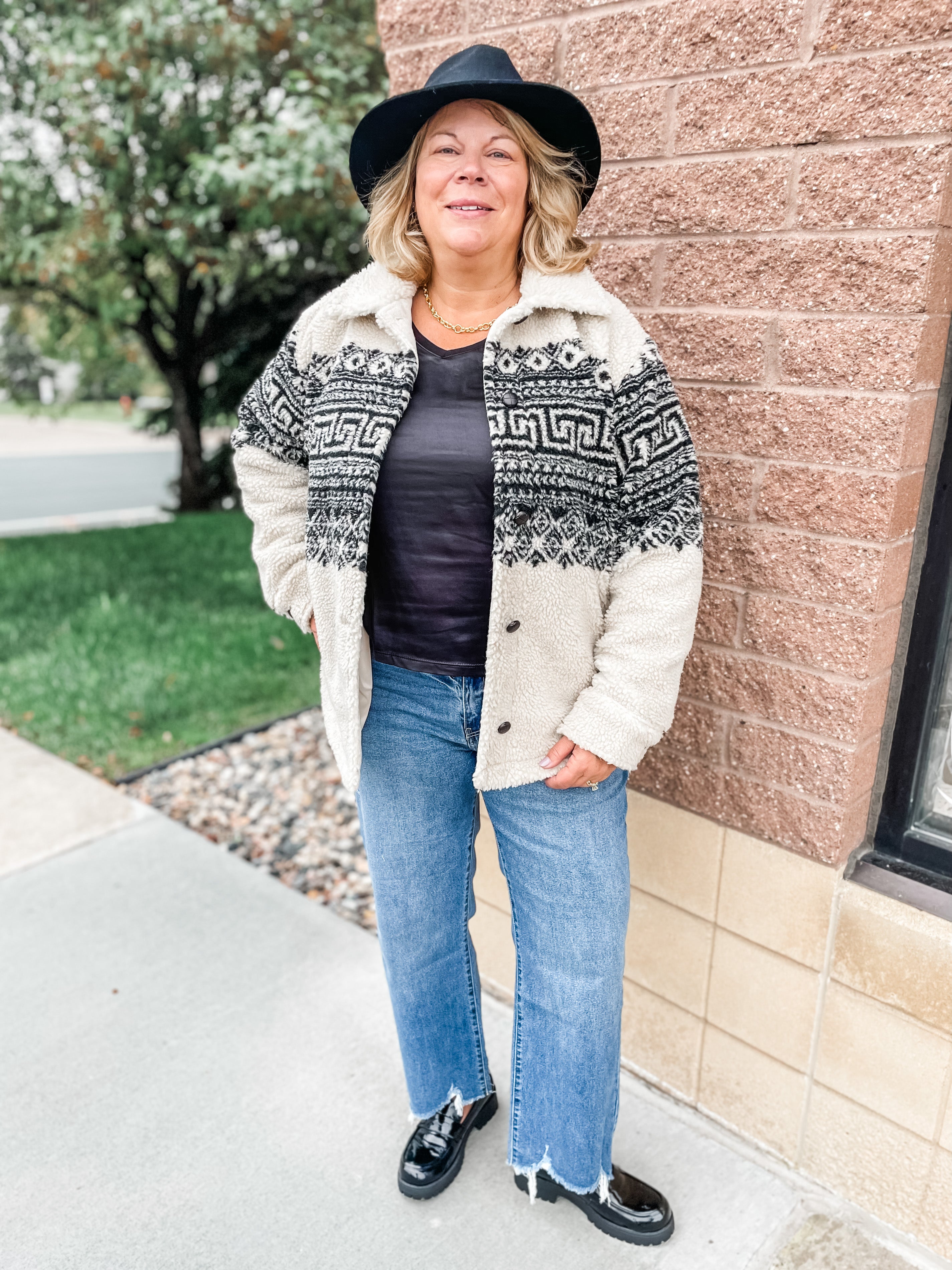 Aztec Print Collared Coat