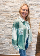 Balloon Long Sleeve Floral Patch Button down Shirt