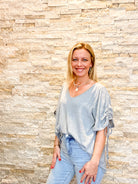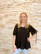 Basic Poly Gauge V Neck W/Sleeve Ties
