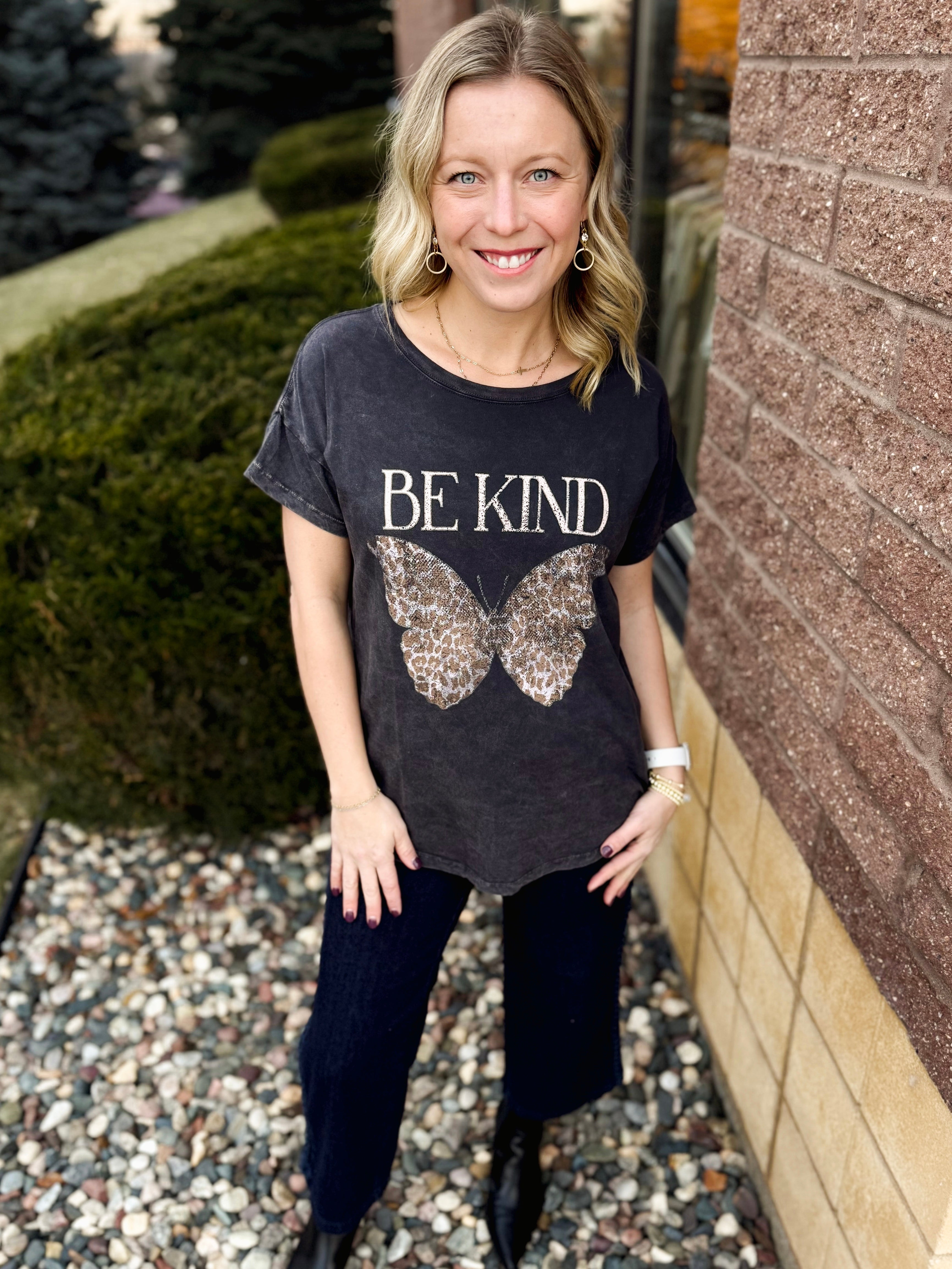 BE KIND Butterfly Mineral Washed Graphic Tee