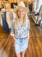 Below Elbow Flounce Slv w/ 1/2 Placket Printed Top - HQ