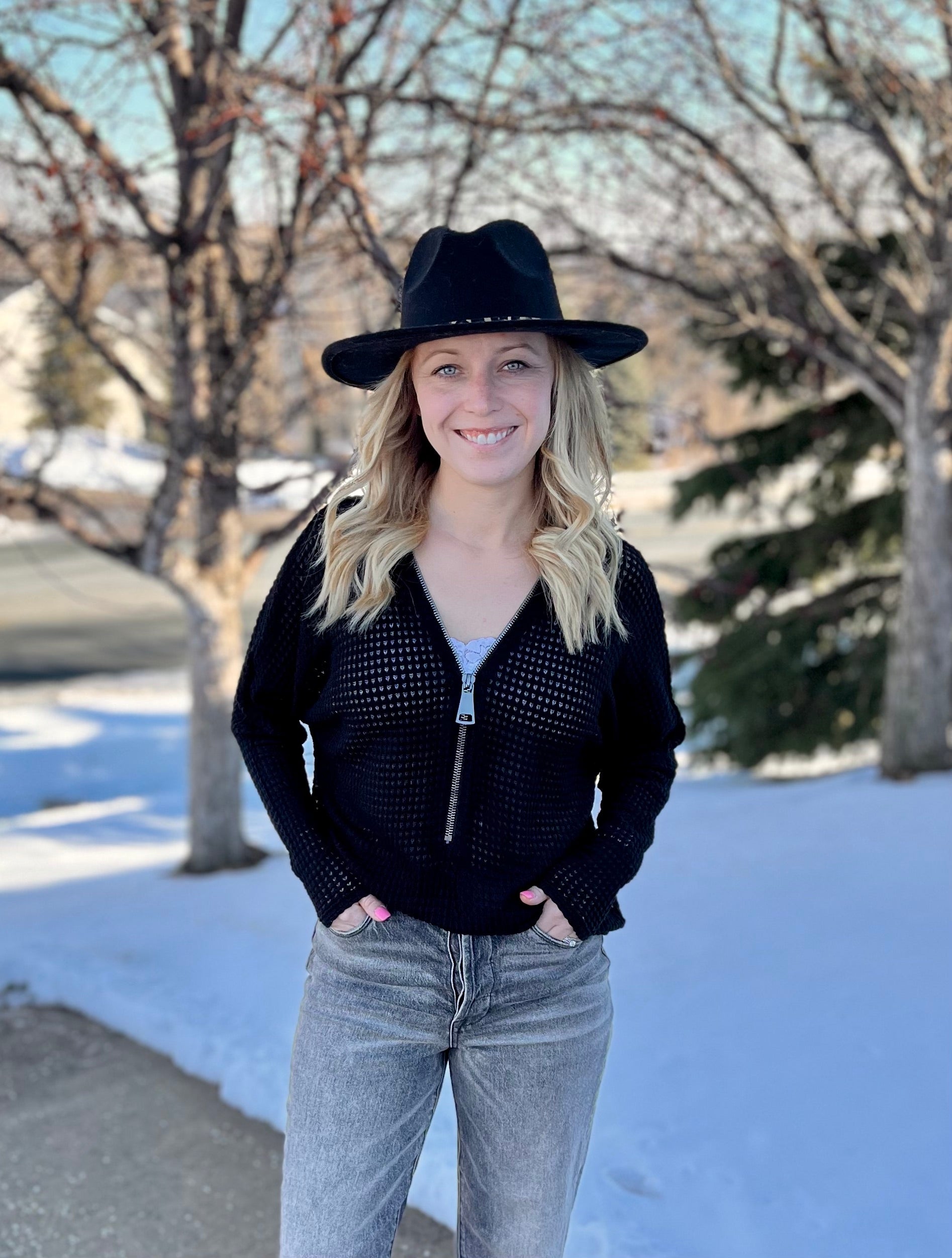Big Zipper Waffle Knit Top