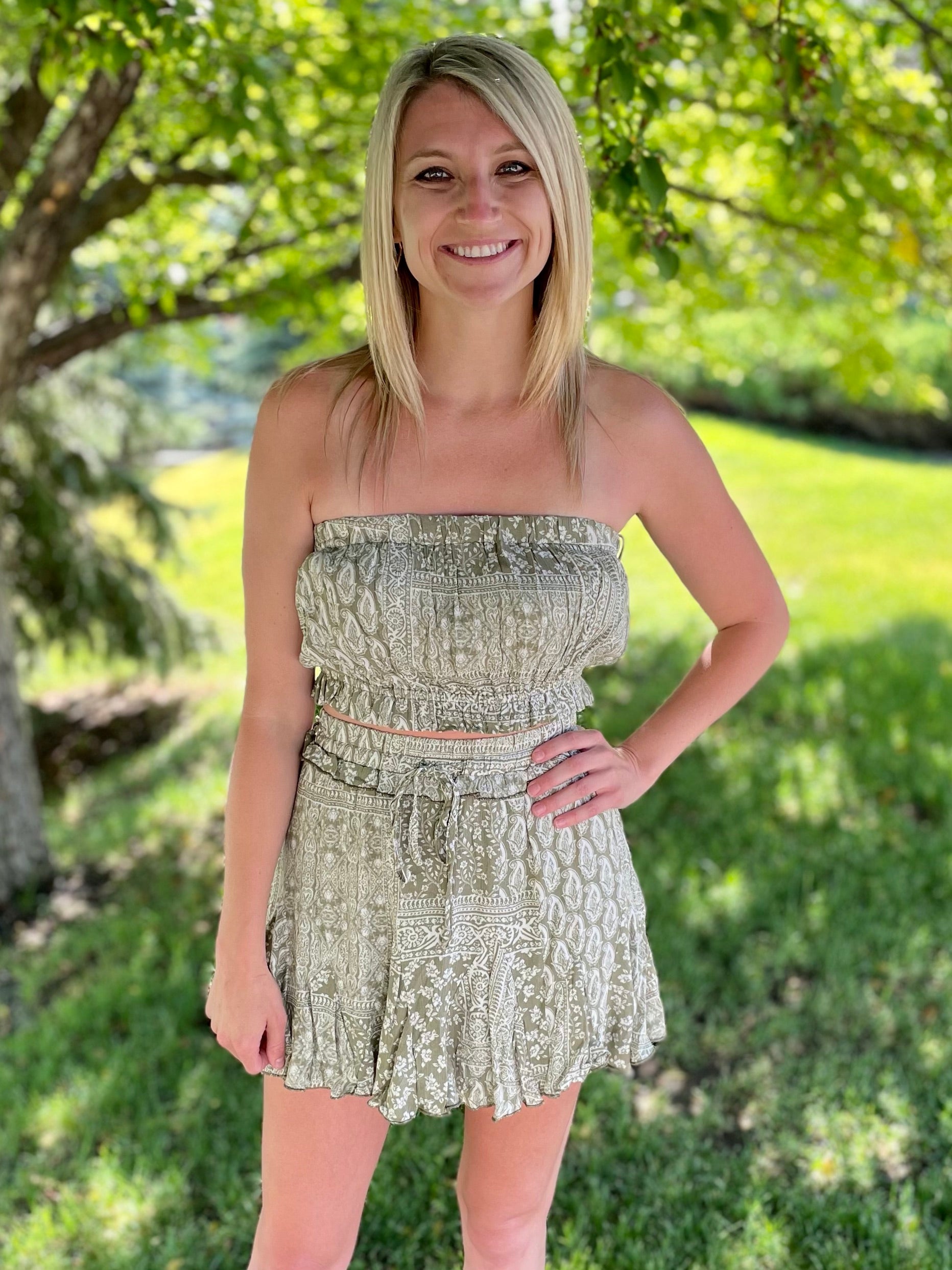 Blue B Paisley Tube Crop Top With Flare Ruffle Skirt