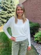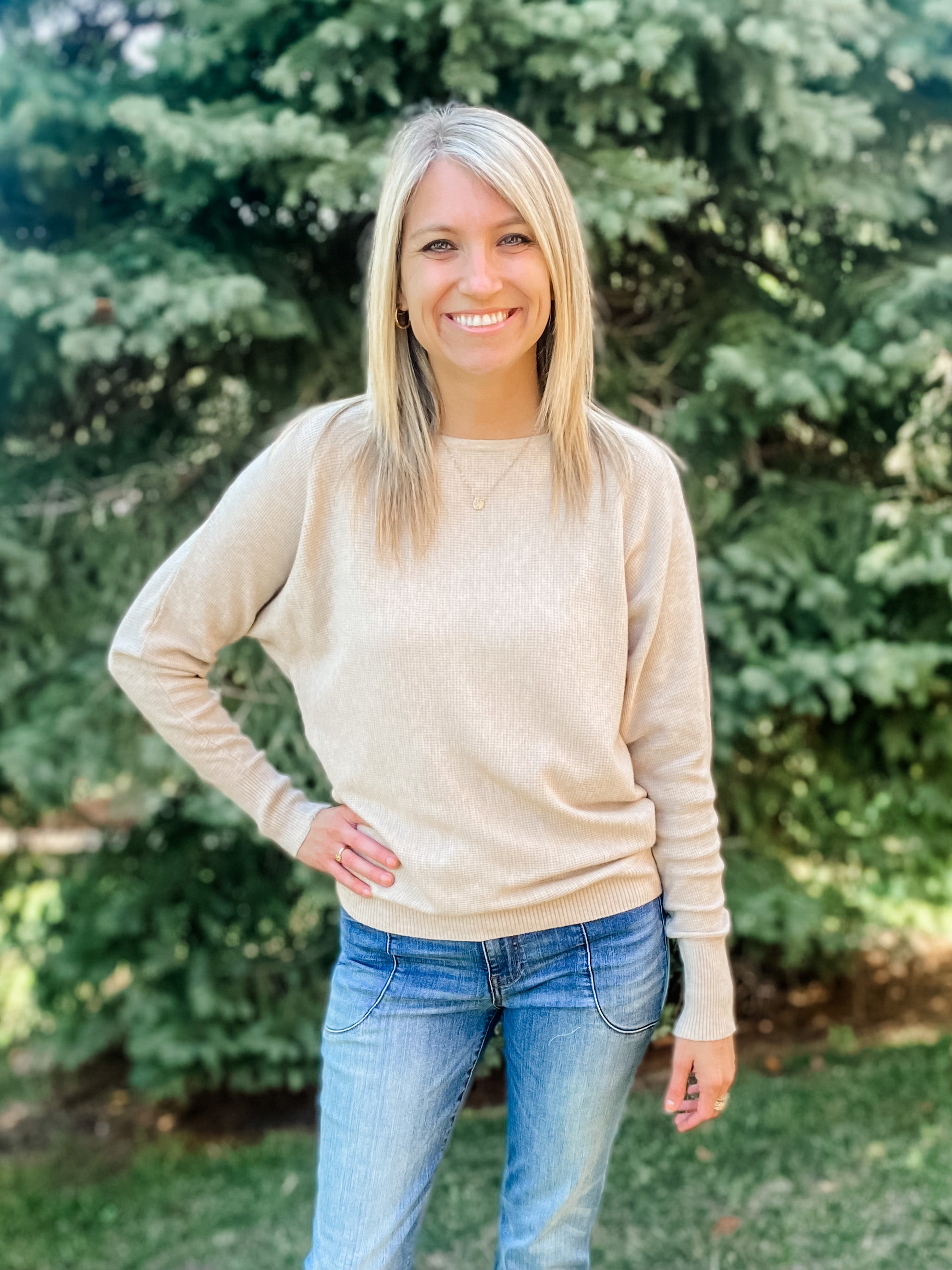 Boat Neck Ribbed Shoulder Side Slit Pullover Sweater