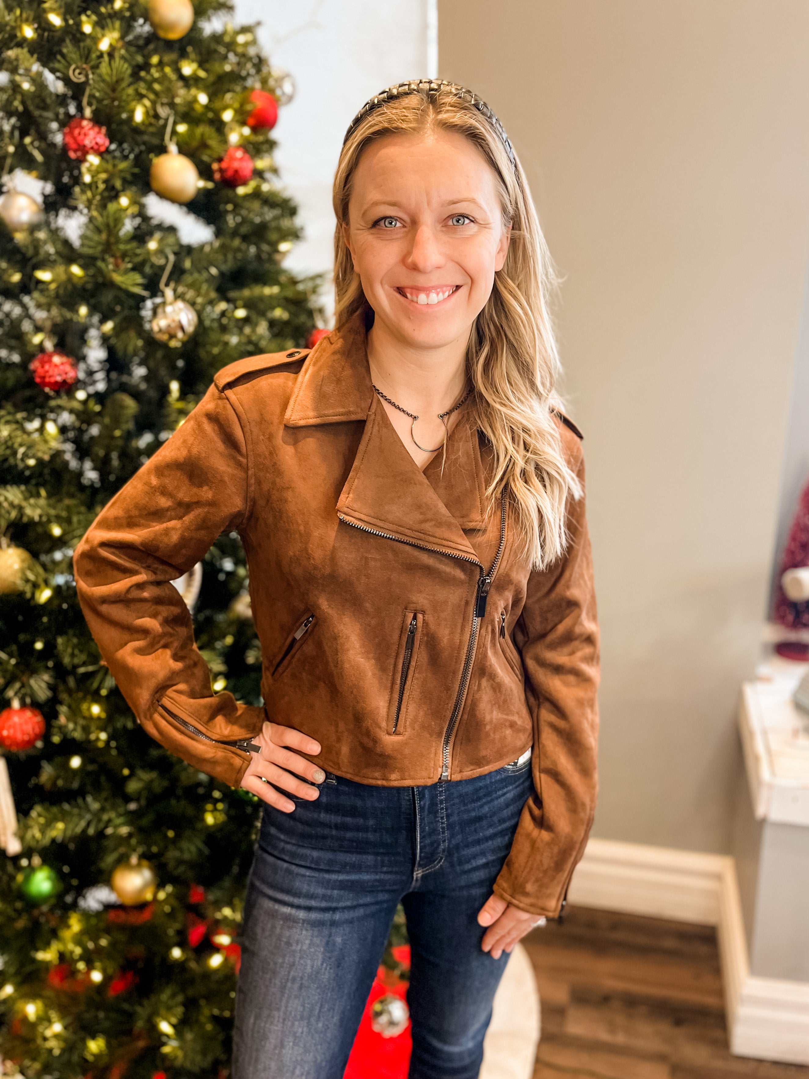 Bonded Faux Suede Moto Jacket