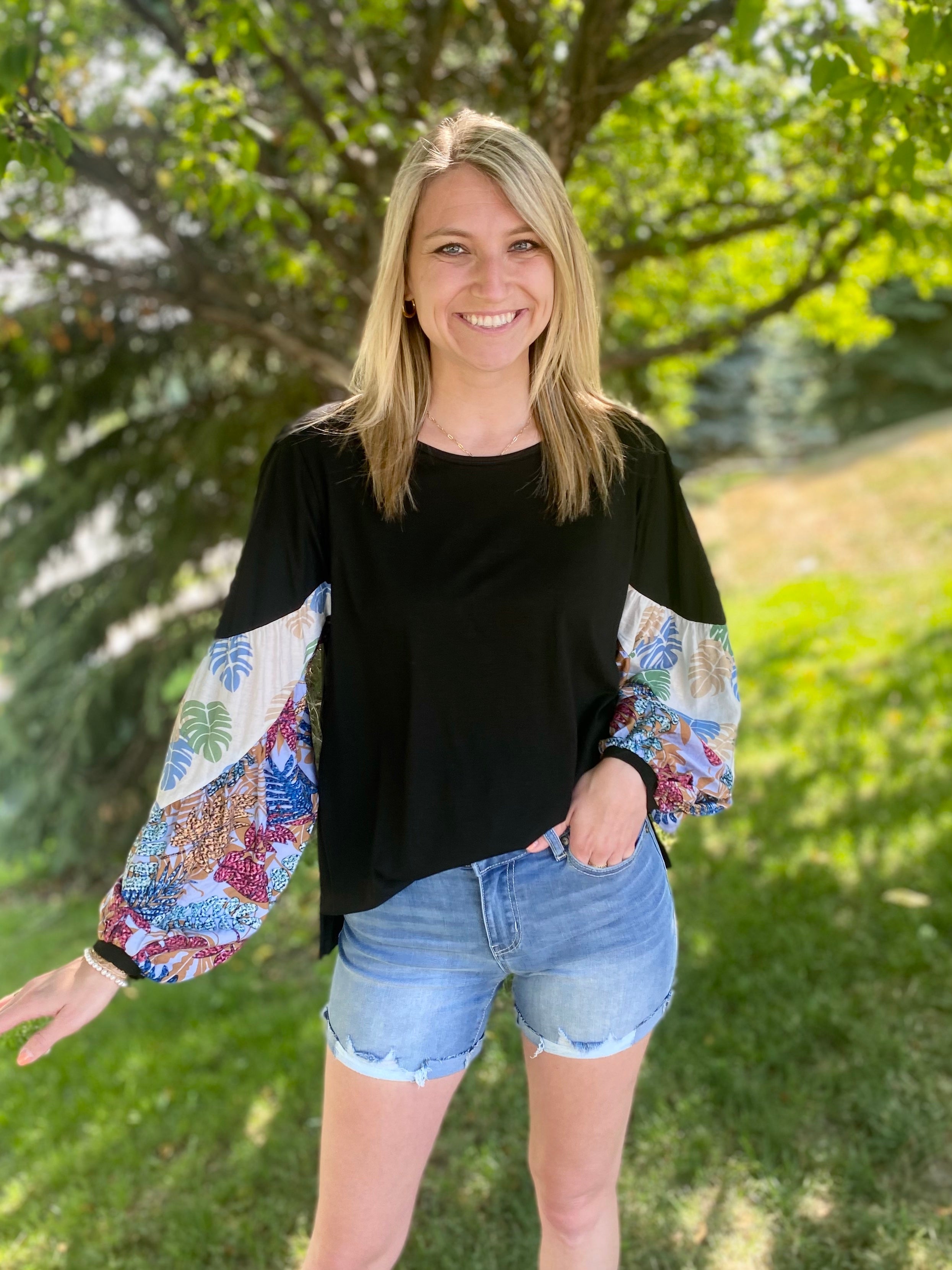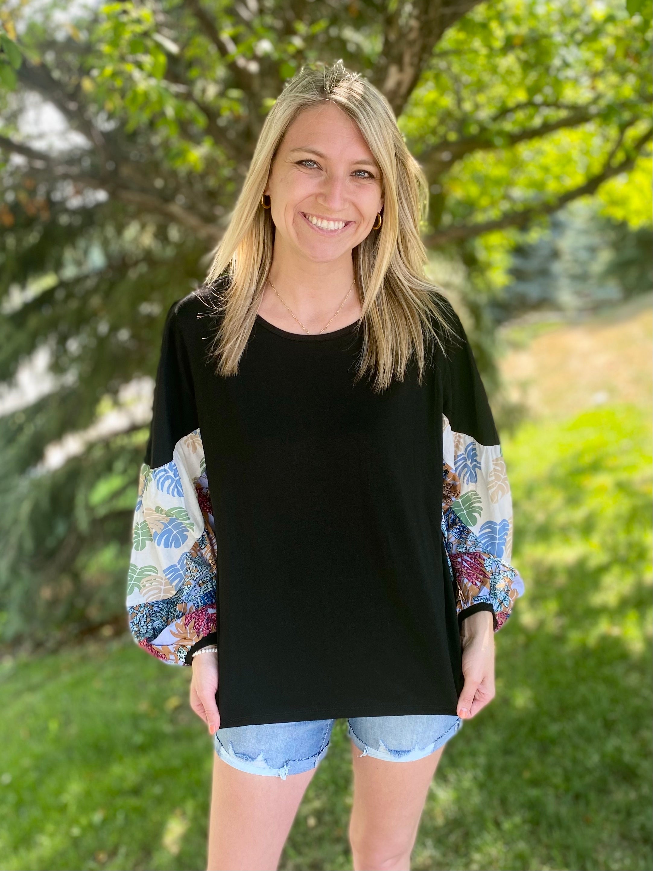 Botanic Color Printed Bishop Sleeves Top
