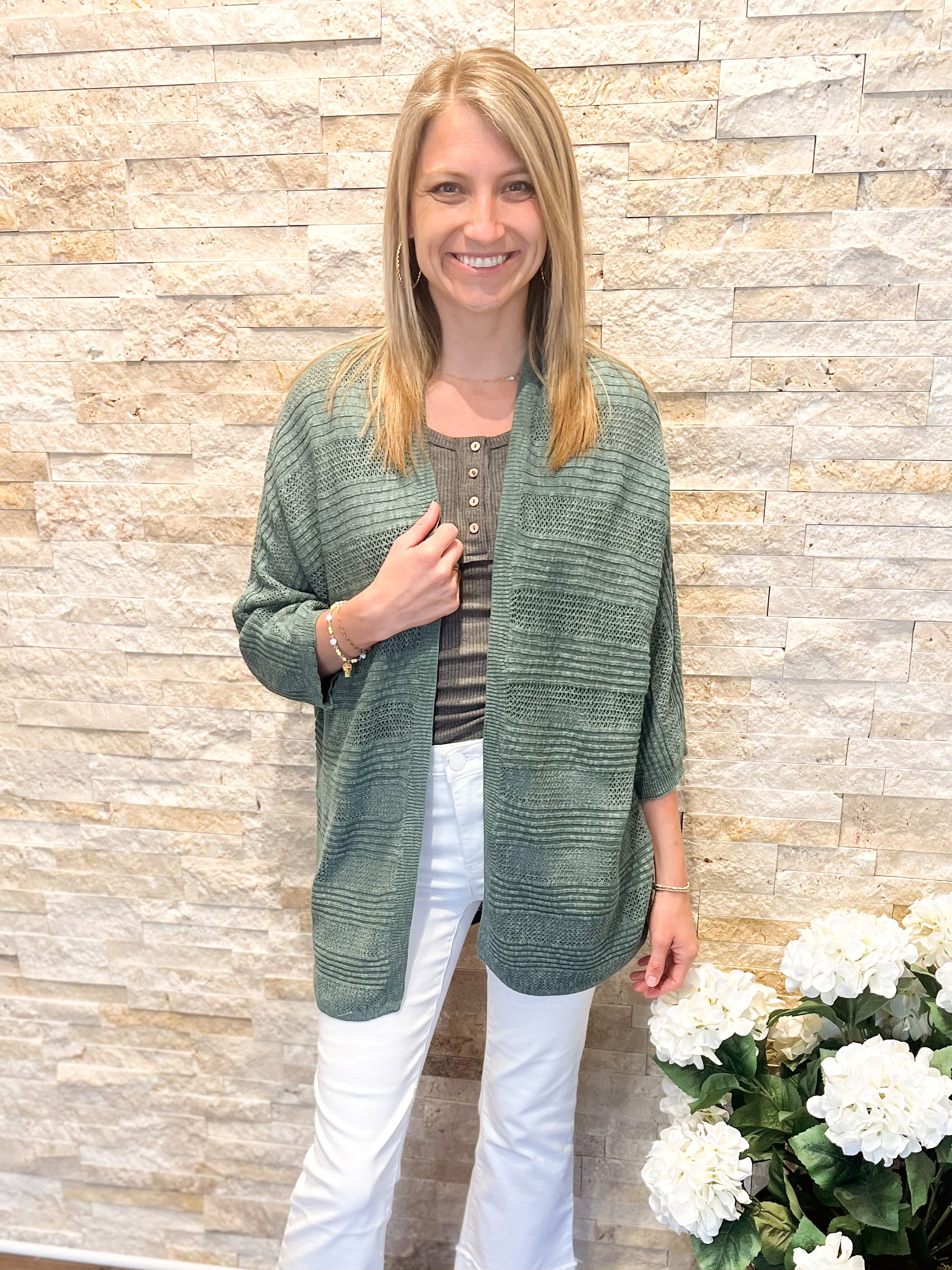BREEZY KNIT STRIPED OPEN FRONT CARDIGAN