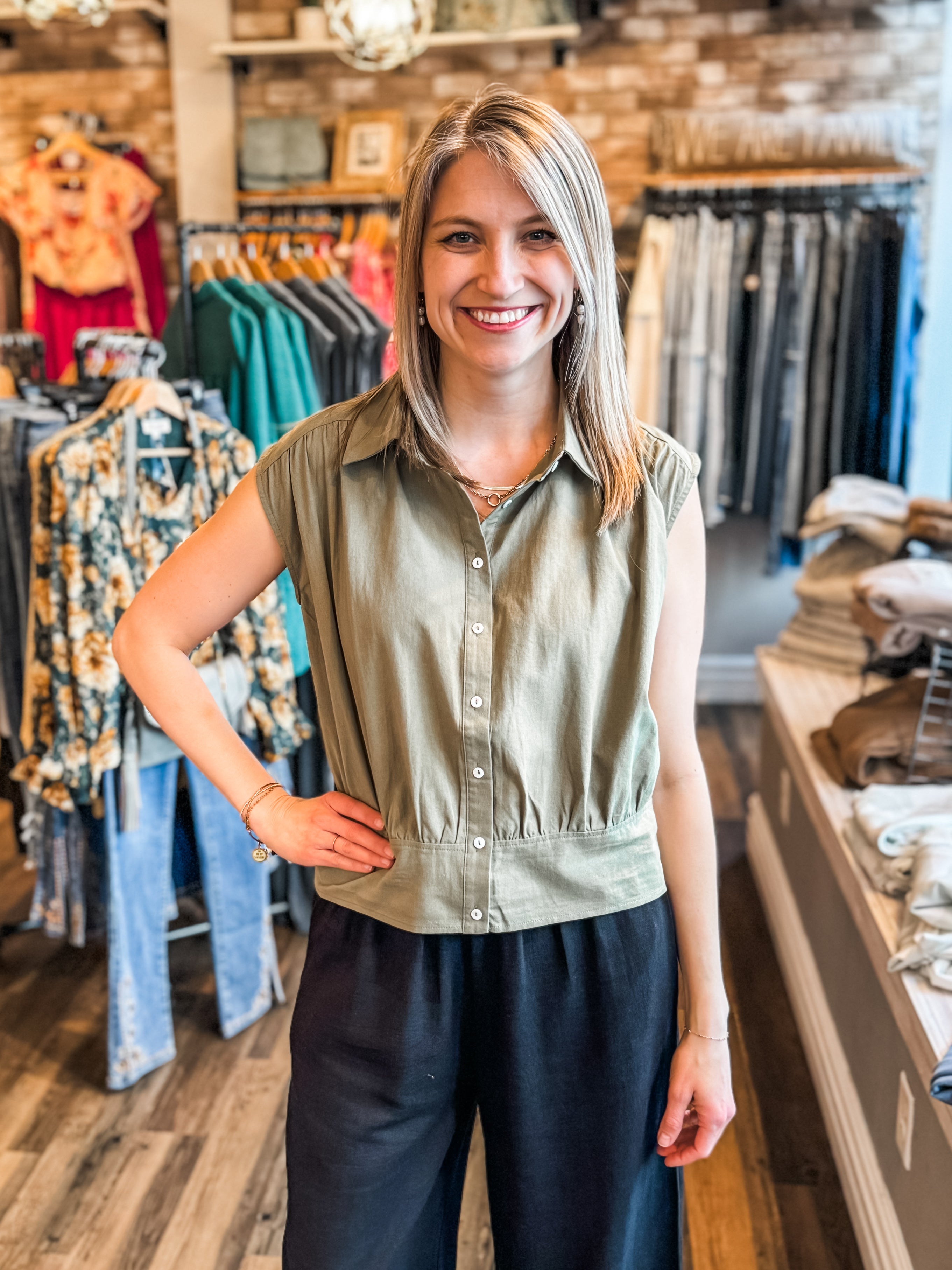 Button Front Blouse with Extended Shoulder S24 - HQ