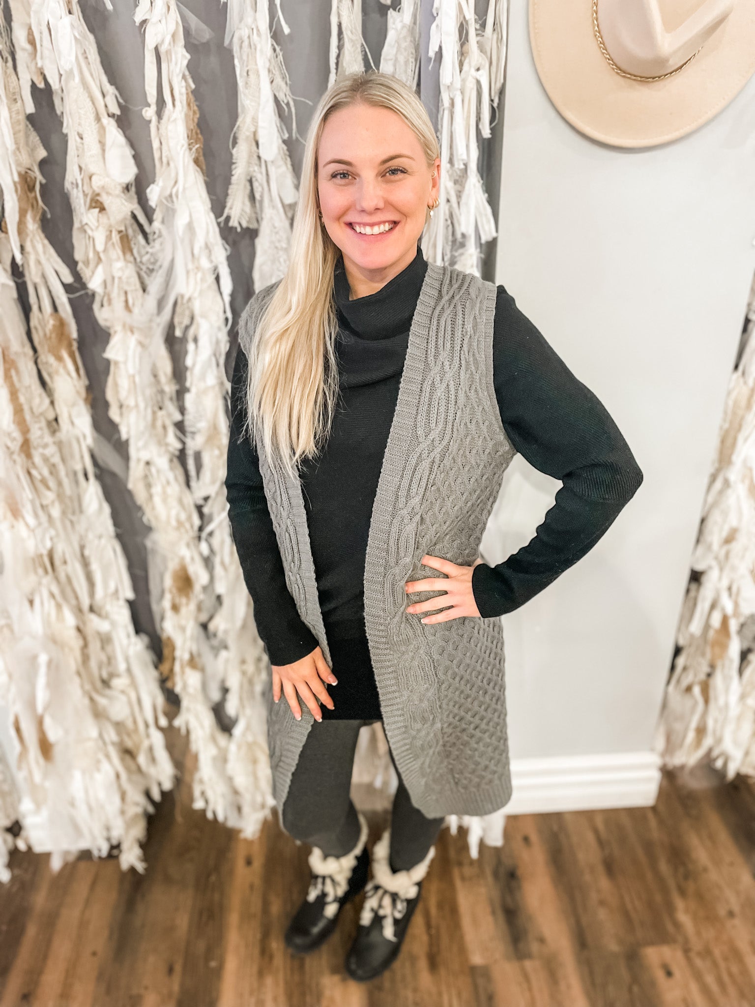 Cable Knit Belted Longline Sweater Vest