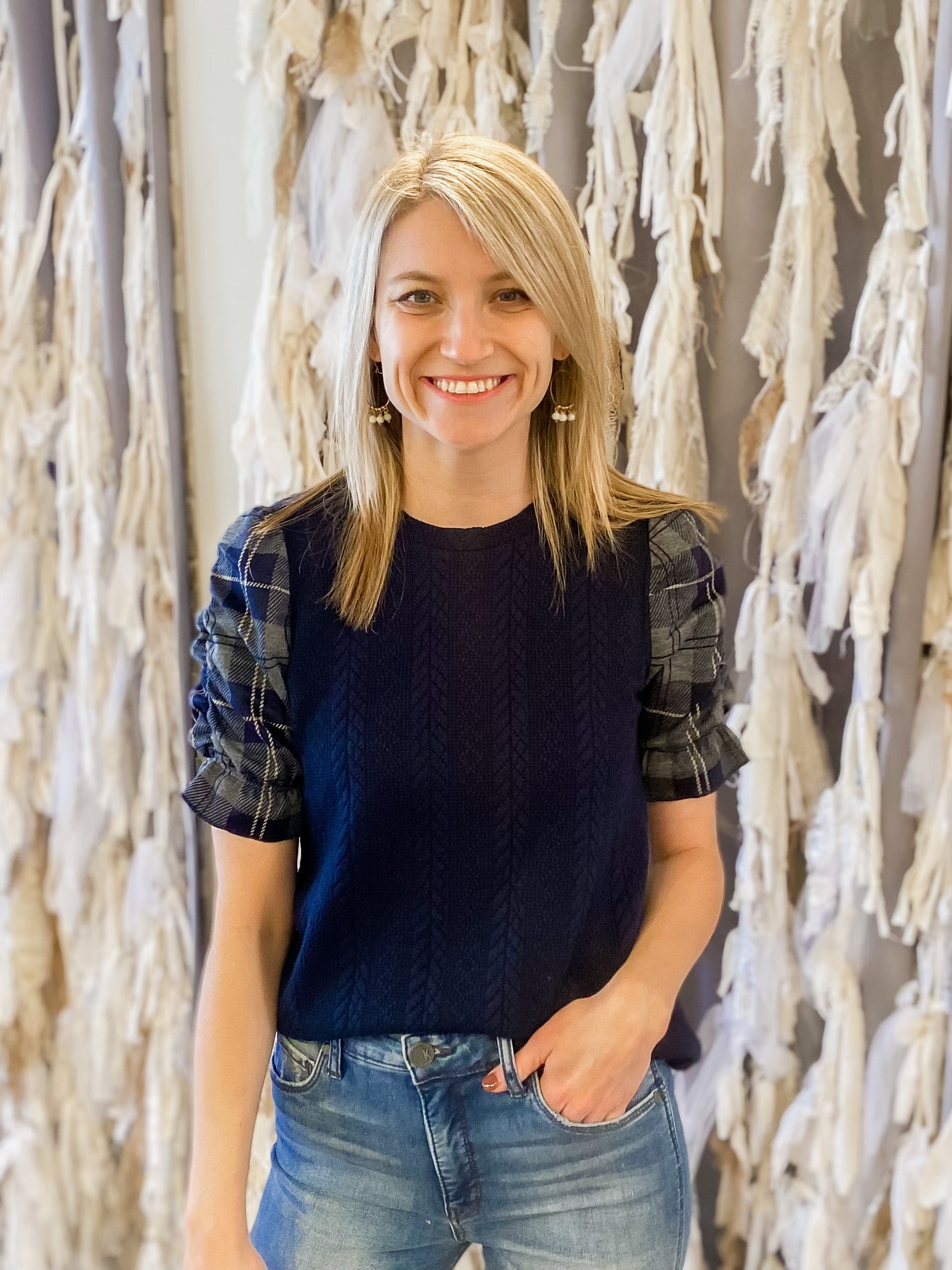Cable Knit Ruched Sleeve Top
