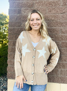 CAMEL/IVORY STAR JACQUARD CARDIGAN