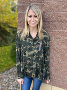 Camo Print Ruffle Bottom Shirt